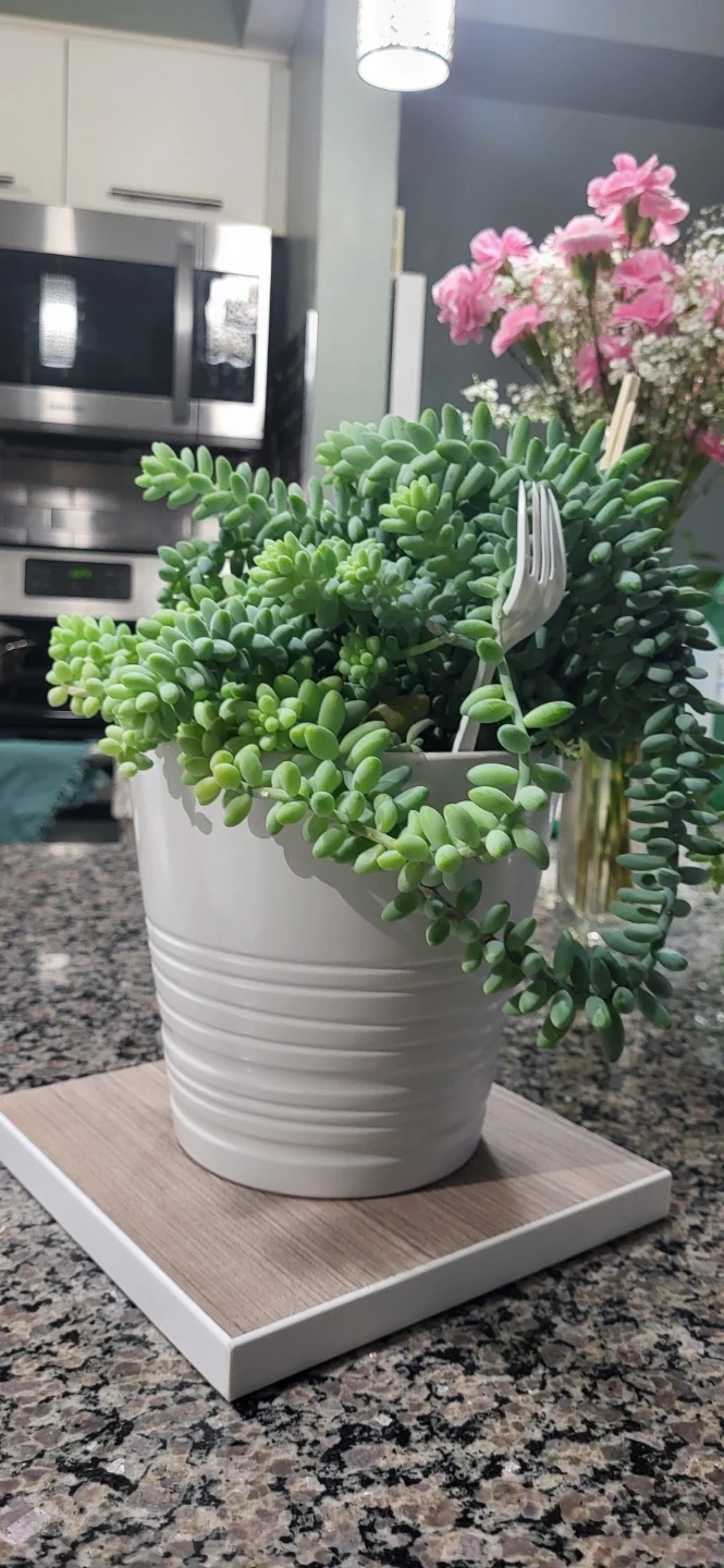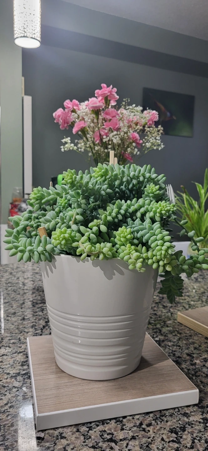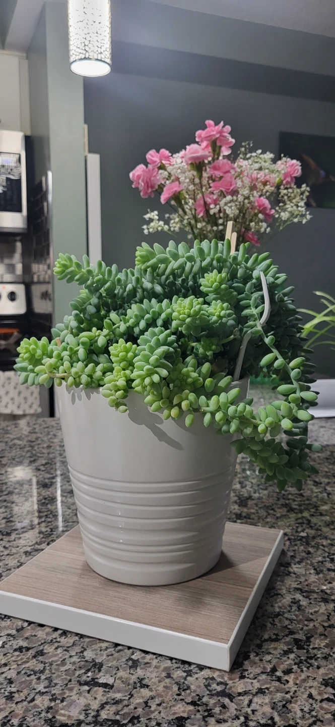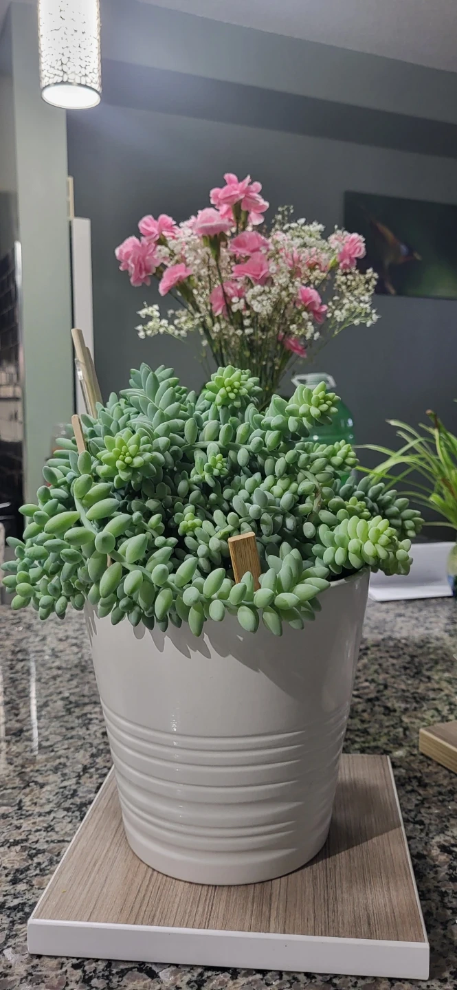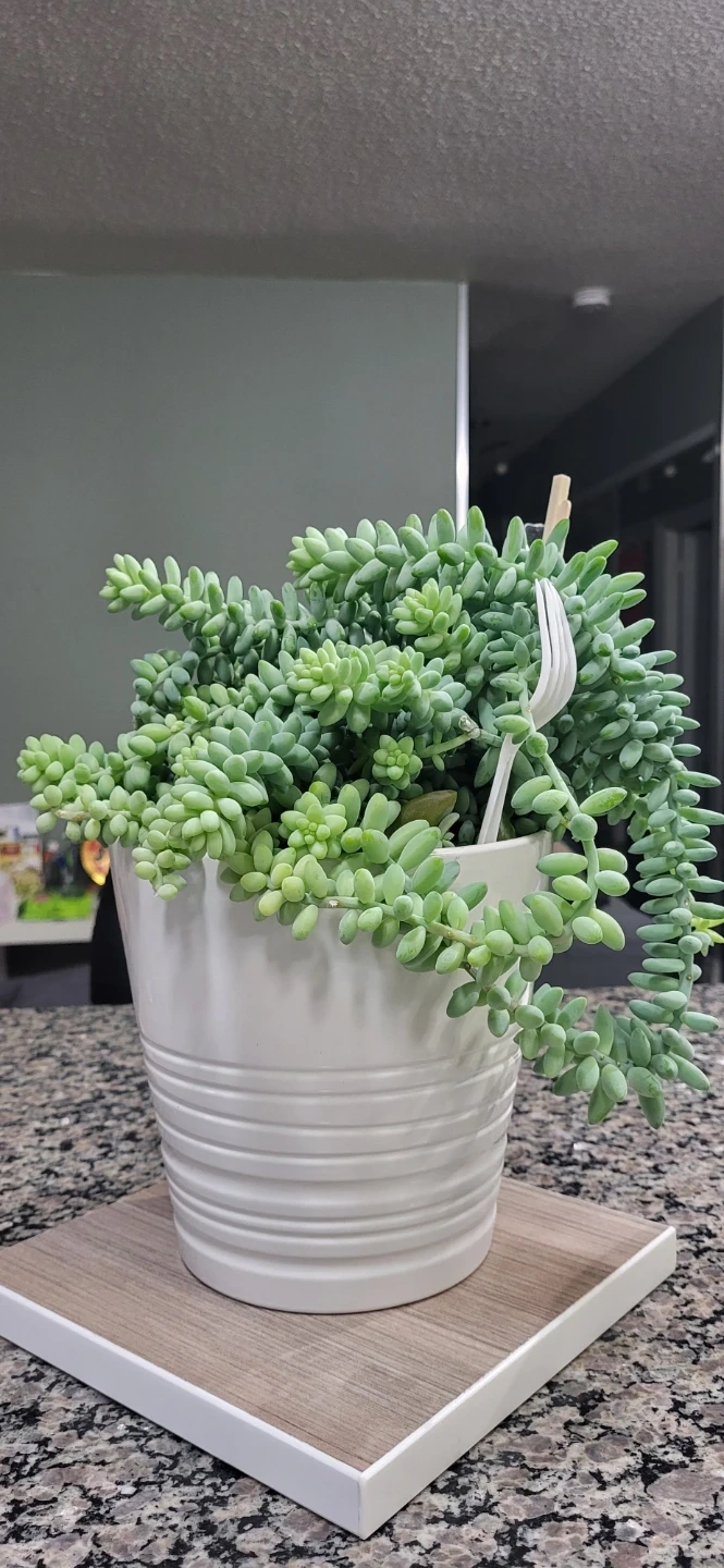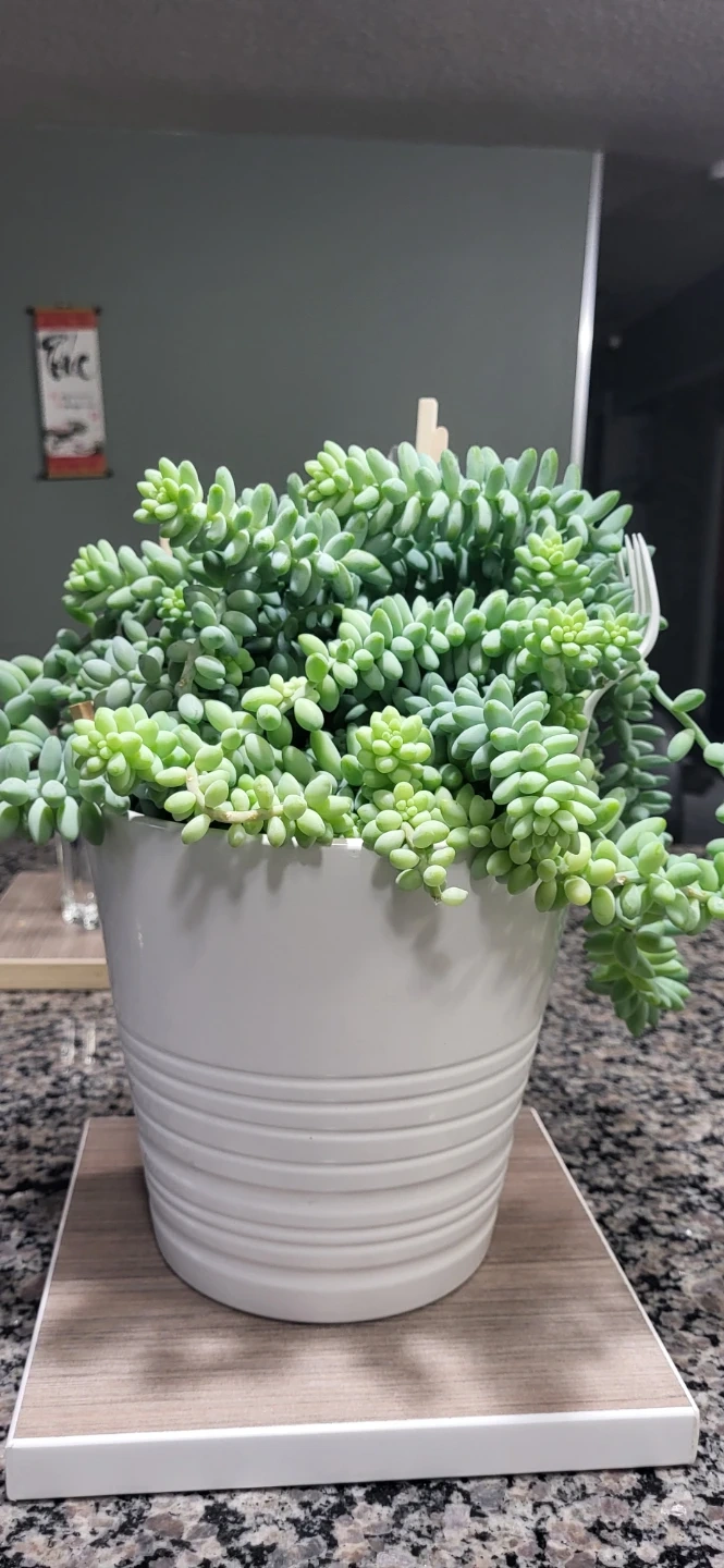 The reason the price is higher than my other listing because it has lot of Burro's Tails branches in the pot (~20 branches), plus it's in an Ikea ceramic pot.
