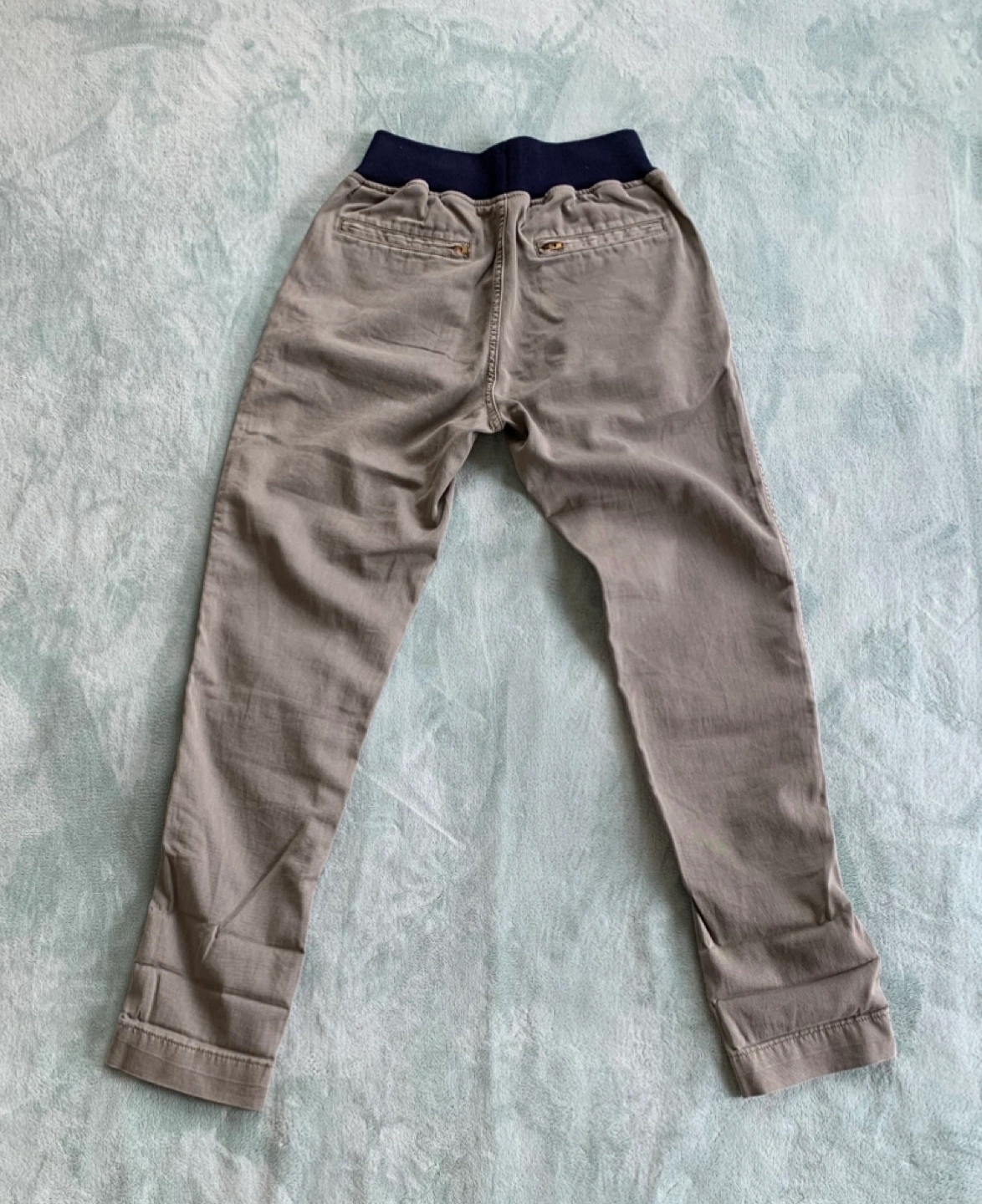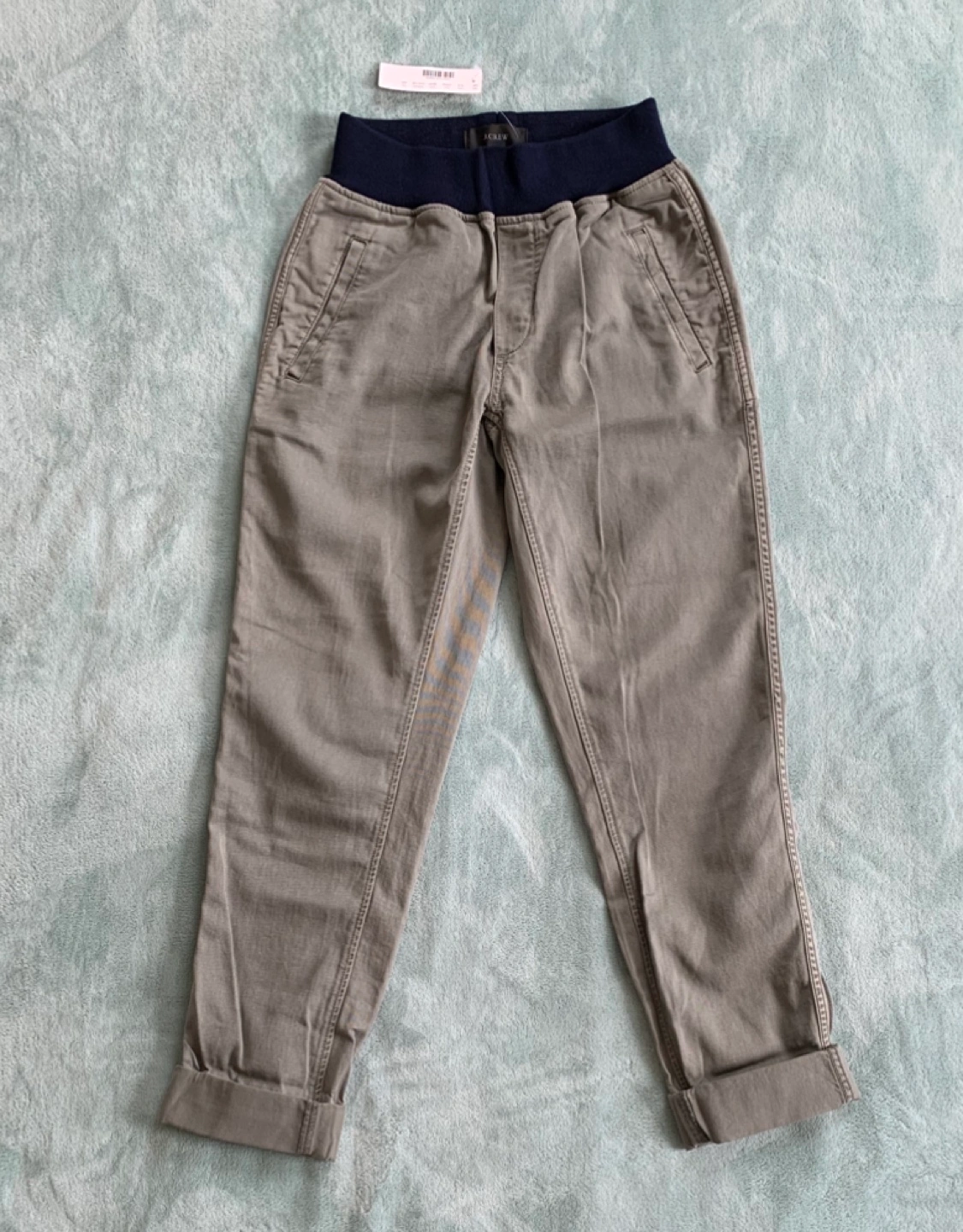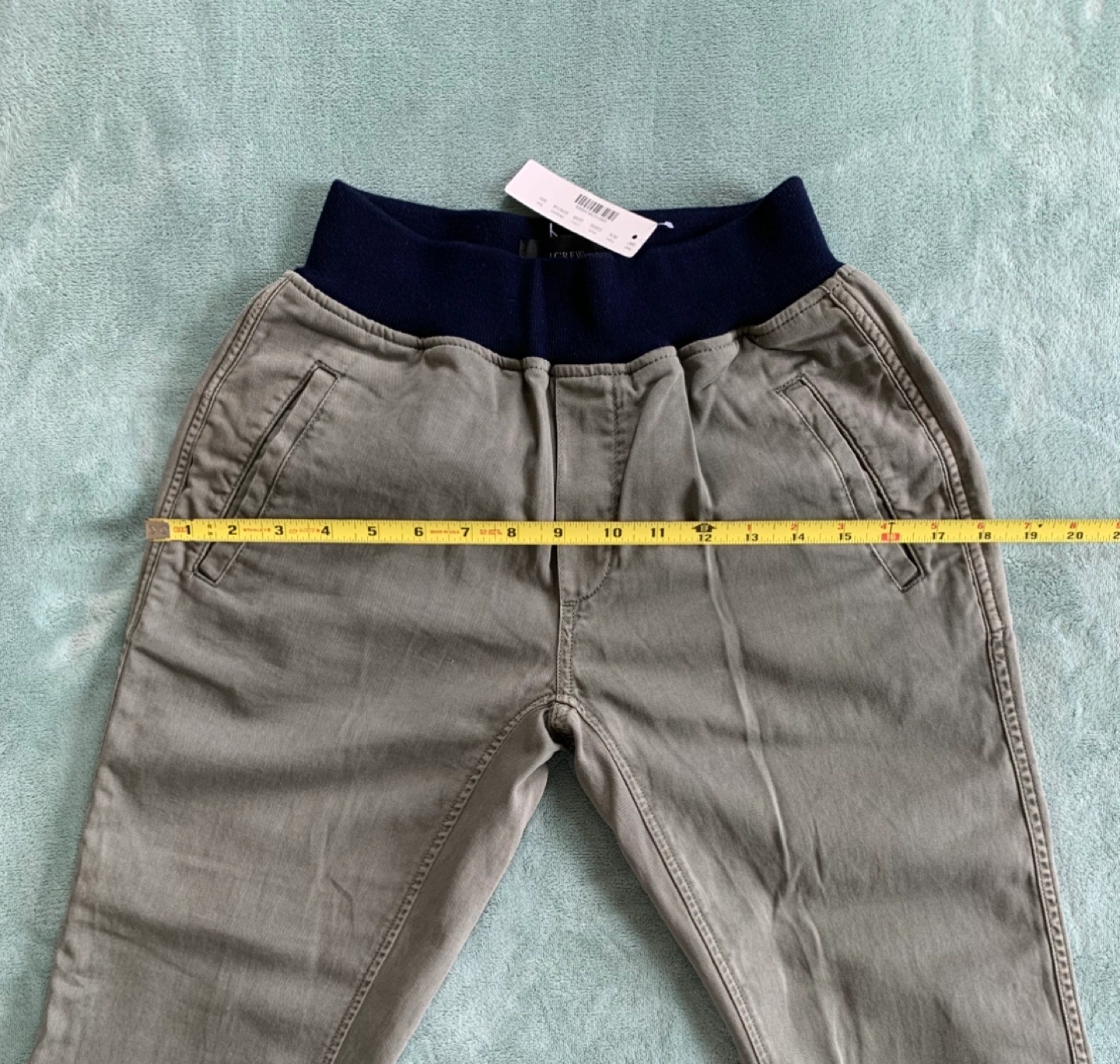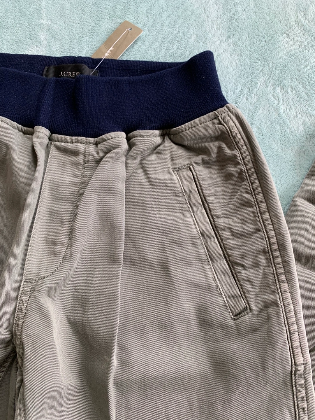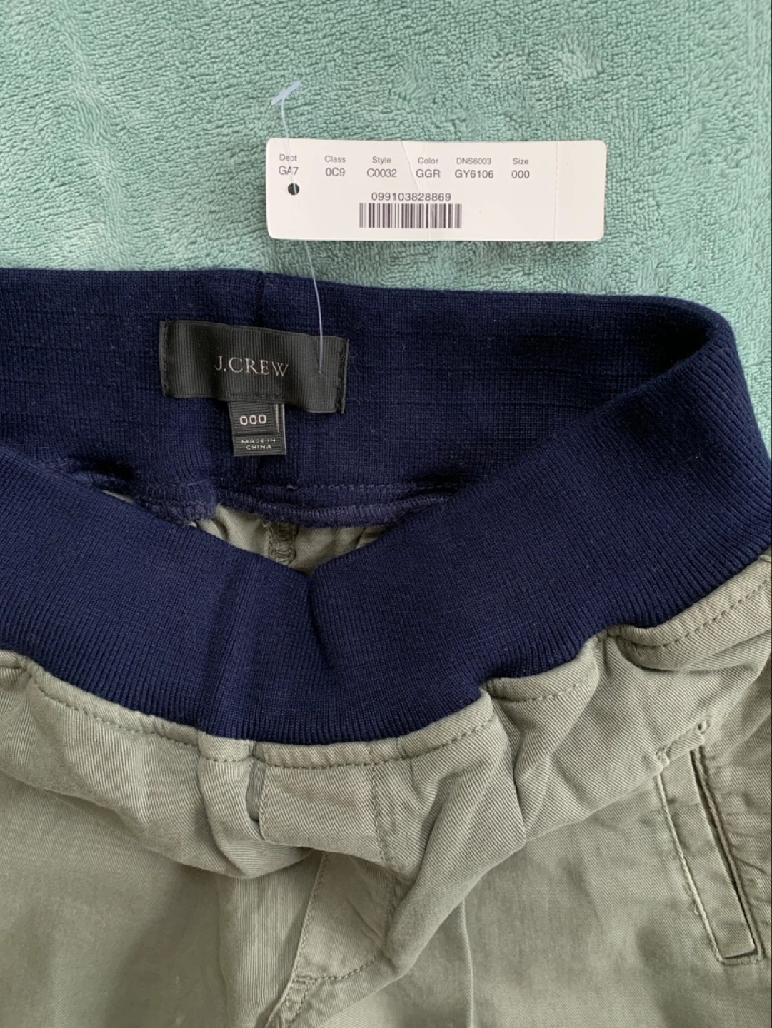 395Olive green pull-on pants. Size 000. Elastic waistband with navy blue trim. Pockets. Excellent condition. New with tags.