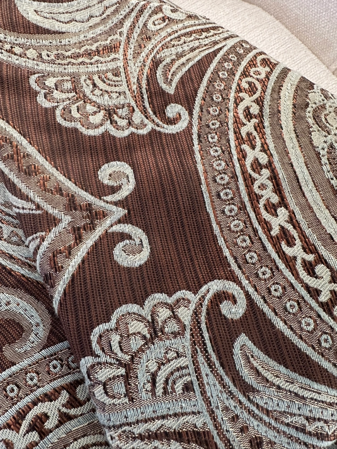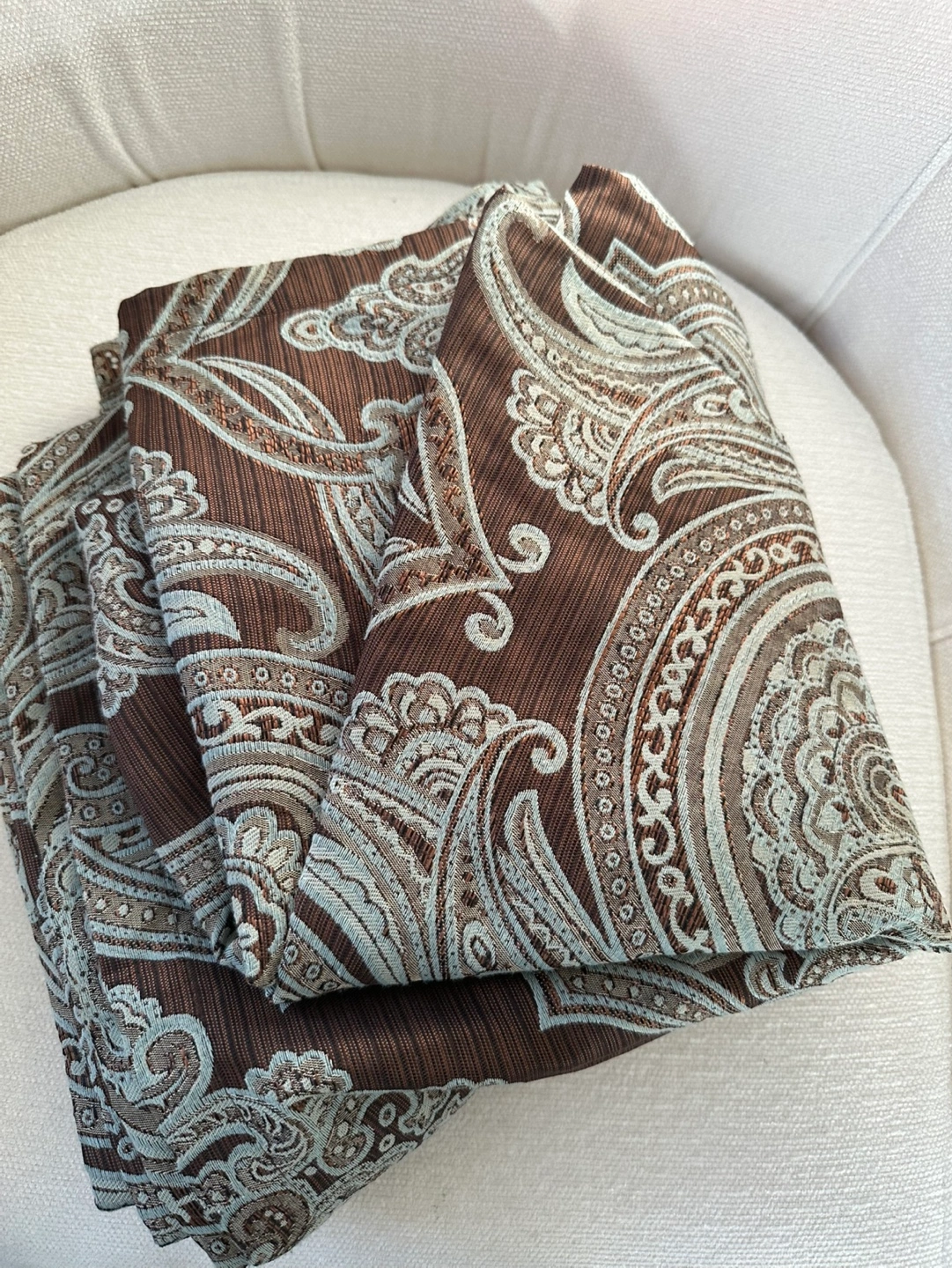 Beautiful fabric shower curtain . Brown and beige paisley pattern. Rich texture. Original price $25