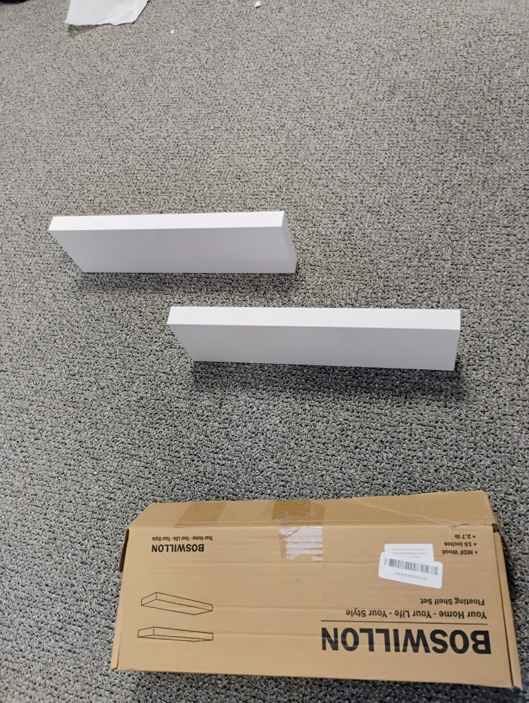 72Two white floating shelves. Modern and minimalist design. Perfect for any room. Easy to install. New in box. π