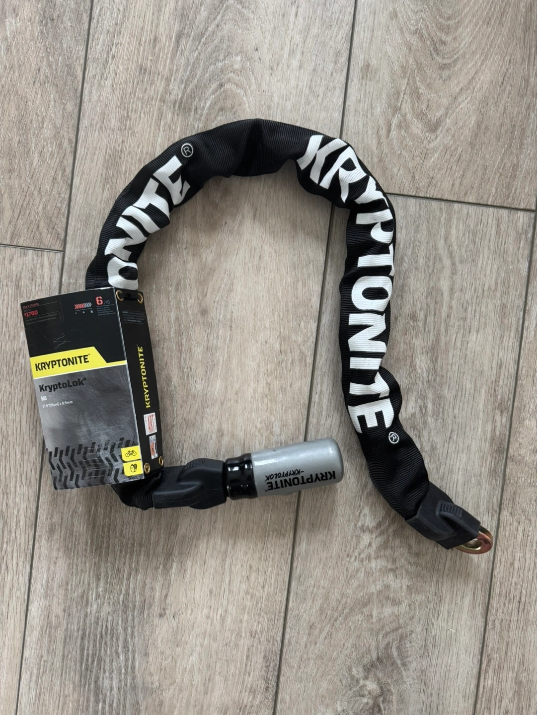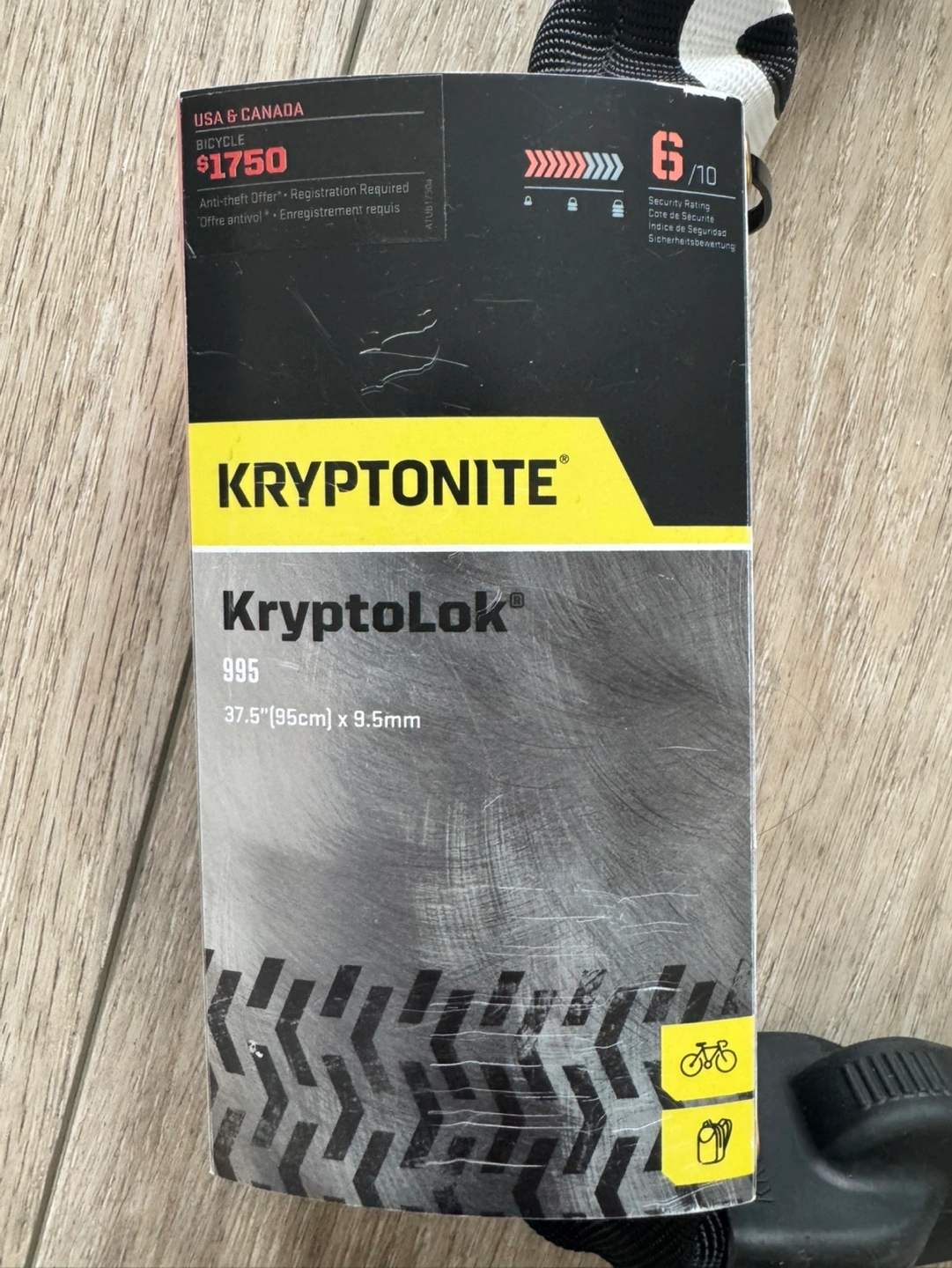 Black KryptoLok 995 bicycle chain lock. 37.5" (95cm) x 9.5mm. Security rating 6/10. Includes Kryptonite chain lubricant. New, never used.