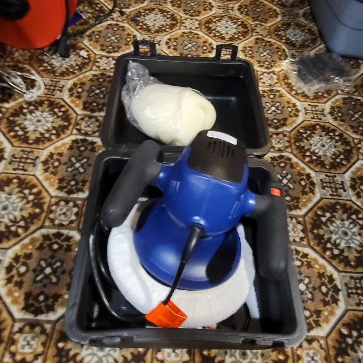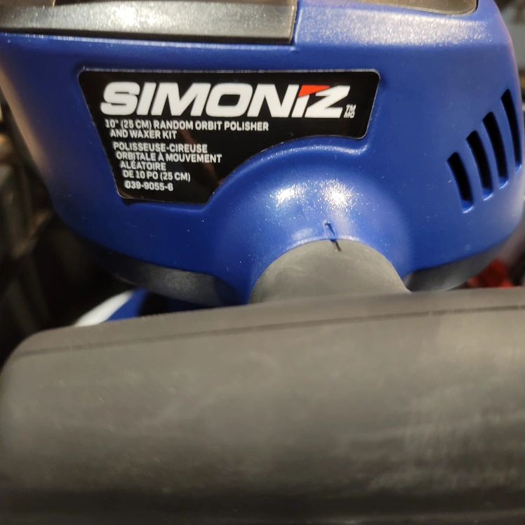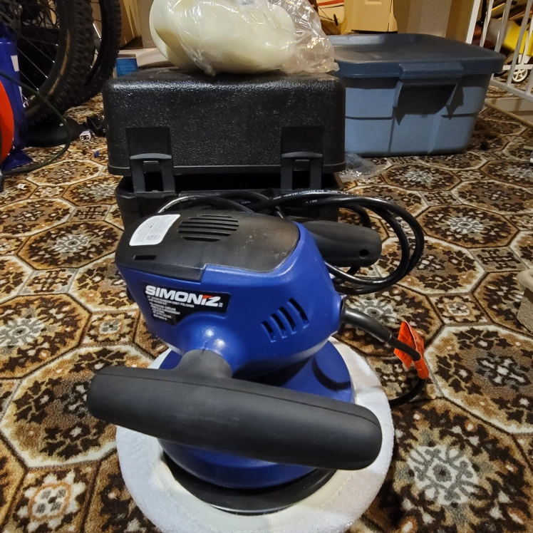Simoniz orbit polisher and waxer kit. Blue housing. Includes carrying case and polishing pad. 10 inch polishing surface. plus a back up cover. only been used once!!! no damages or electrical problems of any kind