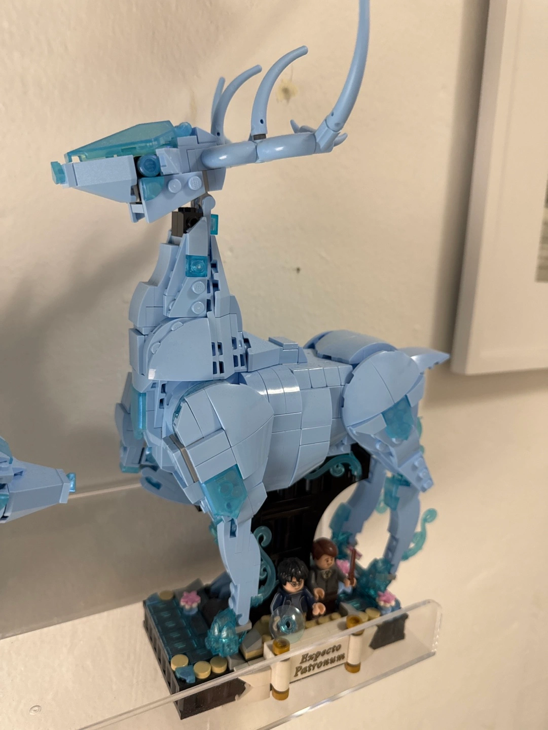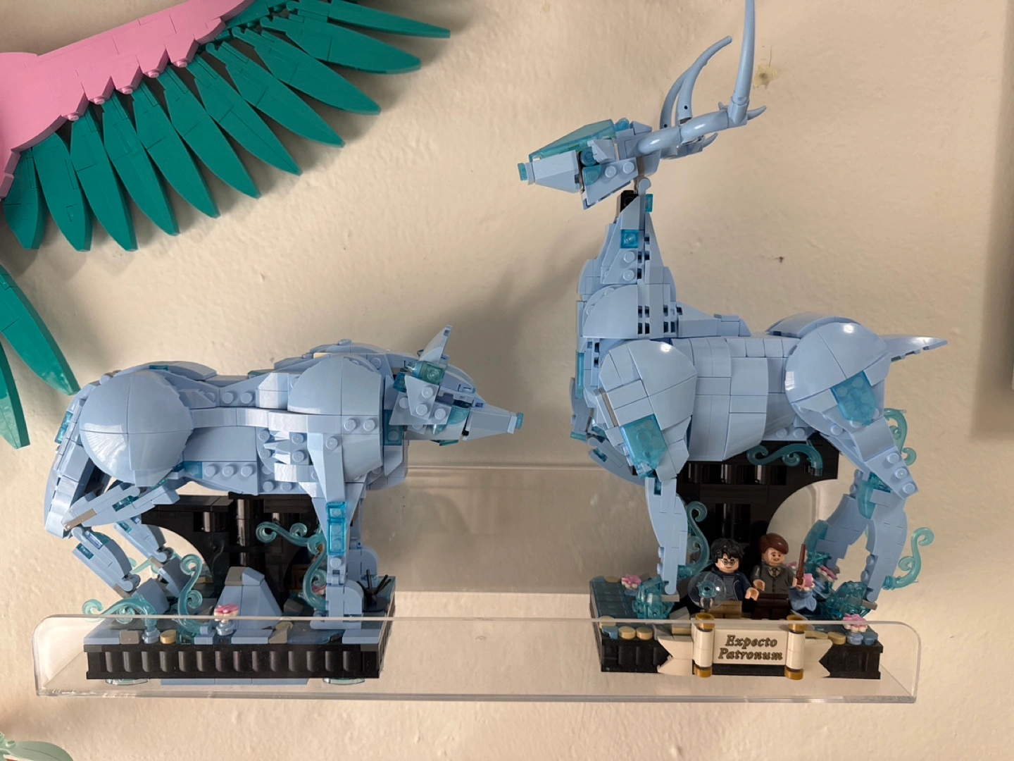 PICK UP ONLY ALREADY BUILT LEGO LEGO builds of a wolf and stag Patronuses. Light blue color scheme. Includes minifigures and bases. Excellent condition.