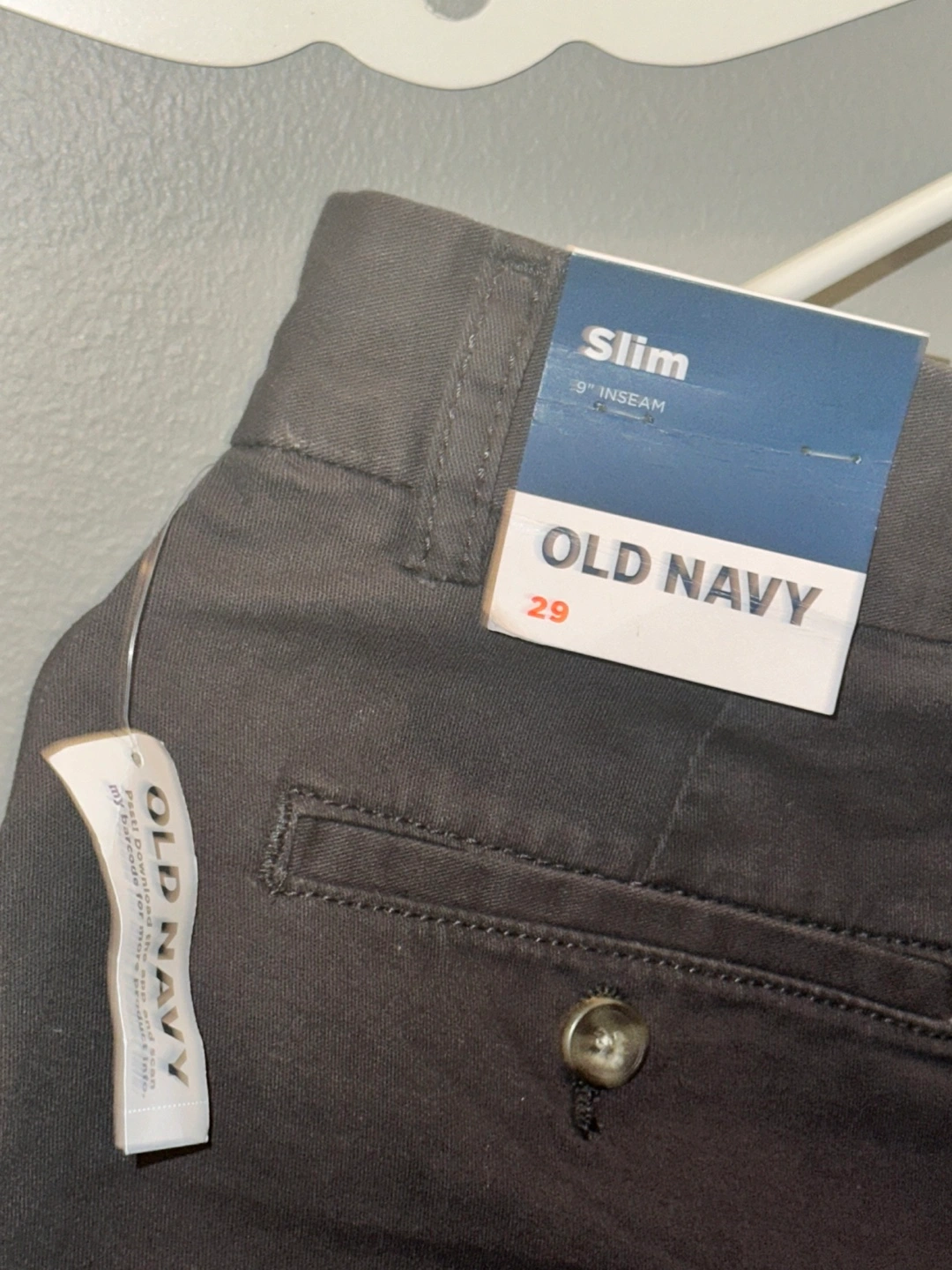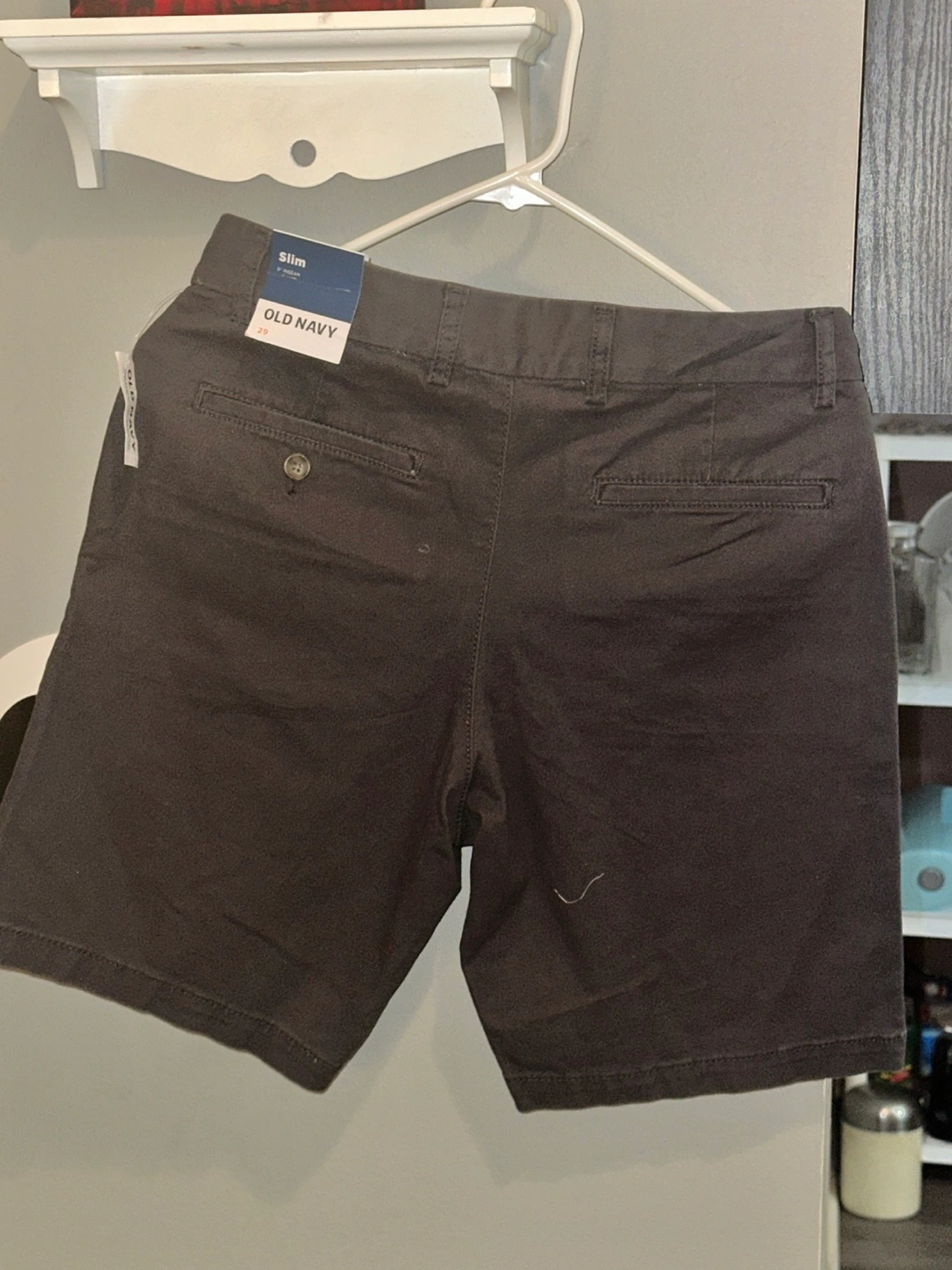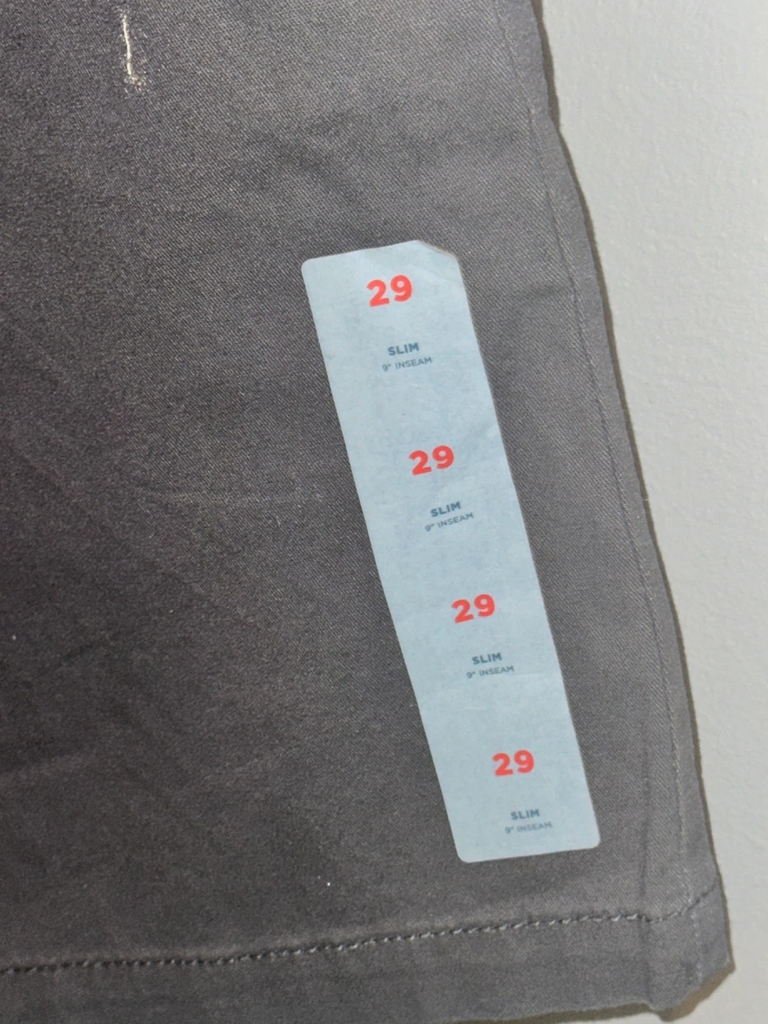 103Men's dark gray shorts. Size 29. Slim fit. 9" inseam. Built-in flex. New with tags. Available for local pickup by Schaumburg and Barrington Road in Schaumburg IL 60194 or shipping to your doorstep for one low price with tracking included for free. Comes from a virus free, smoke free and pet free home.
