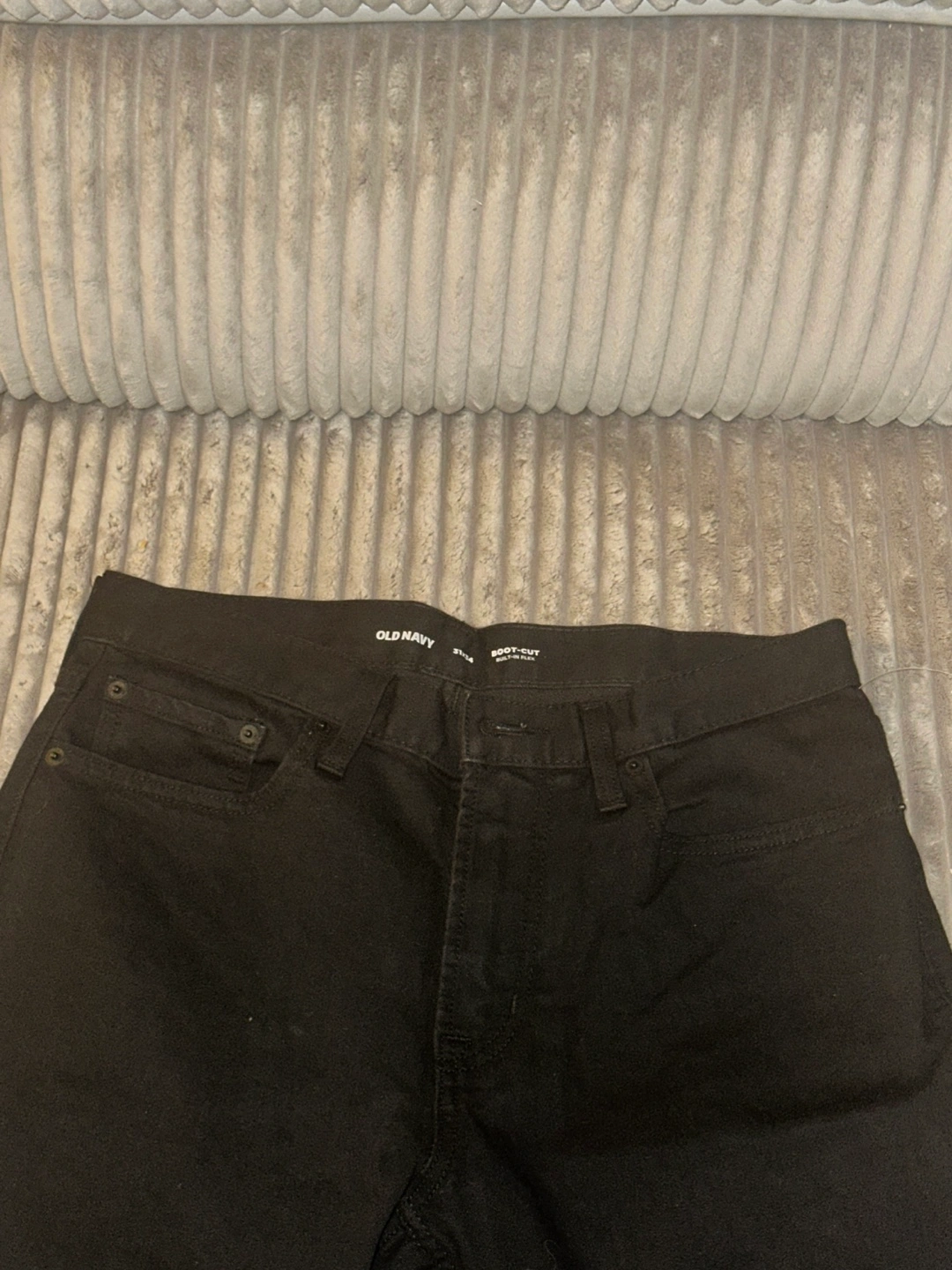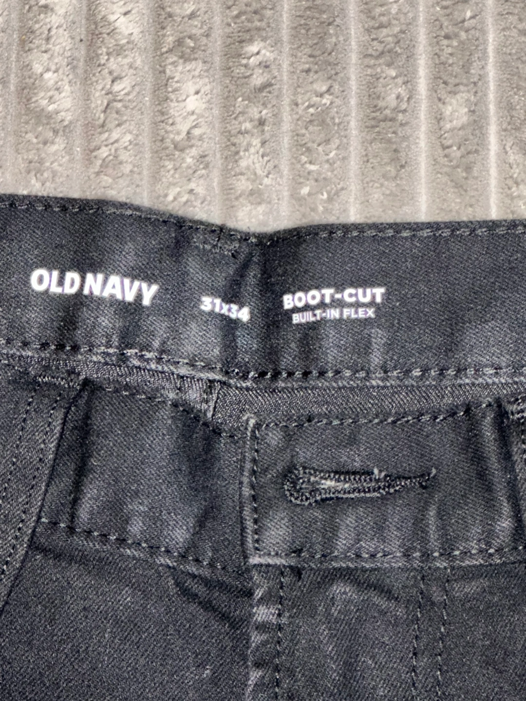 103Old Navy men's black boot-cut jeans. Size 31x34. Built-in flex. Excellent condition. Machine wash cold. Available for local pickup by Schaumburg and Barrington Road in Schaumburg IL 60194 or shipping to your doorstep for one low price with tracking included for free. Comes from a virus free, smoke free and pet free home.