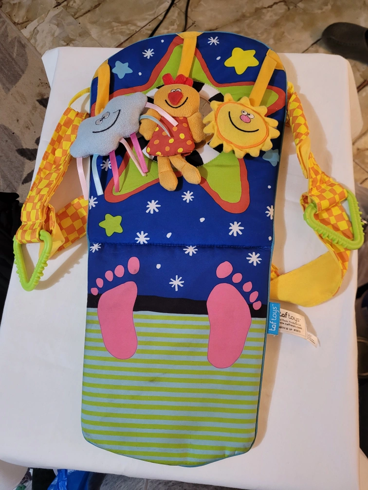 Adorable baby activity gym. Features bright colors and fun characters. Includes hanging toys. Perfect for tummy time or playtime. Slight stains on activity set (as seen in pics)- little toes on mat light up when pressed! Comes from smoke/pet free home. Cash only