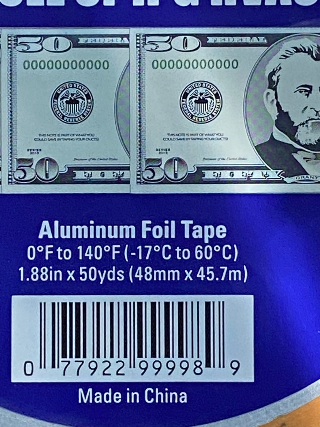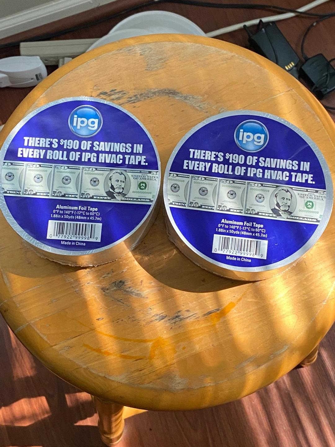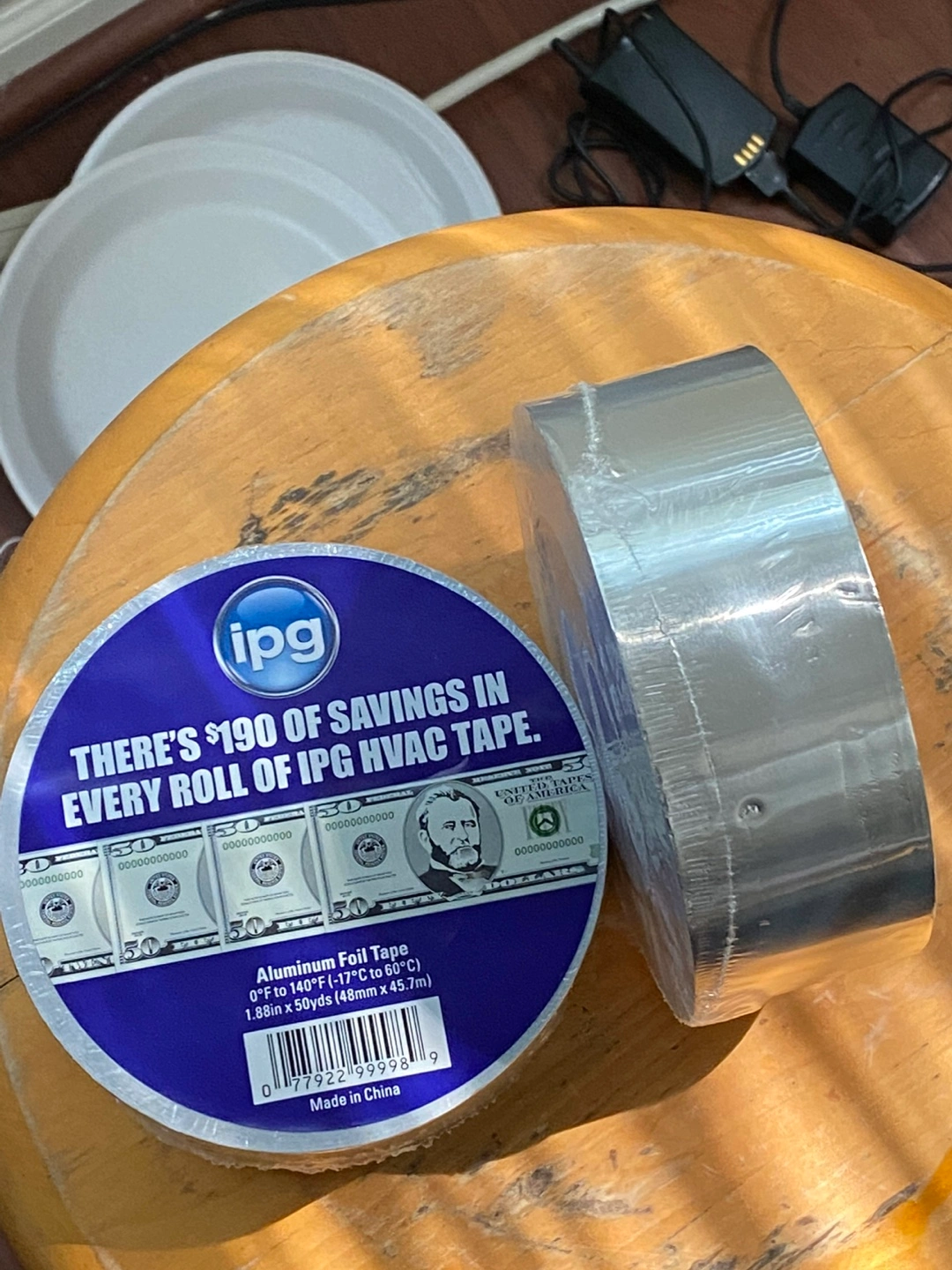 103One roll of IPG aluminum foil tape. HVAC tape. Made in China. Measures 1.88in x 50yds (48mm x 45.7m). Temperature range 0°F to 140°F (-17°C to 60°C). Available for local pickup by Schaumburg and Barrington Road in Schaumburg IL 60194 or shipping to your doorstep for one low price with tracking included for free. Comes from a virus free, smoke free and pet free home.