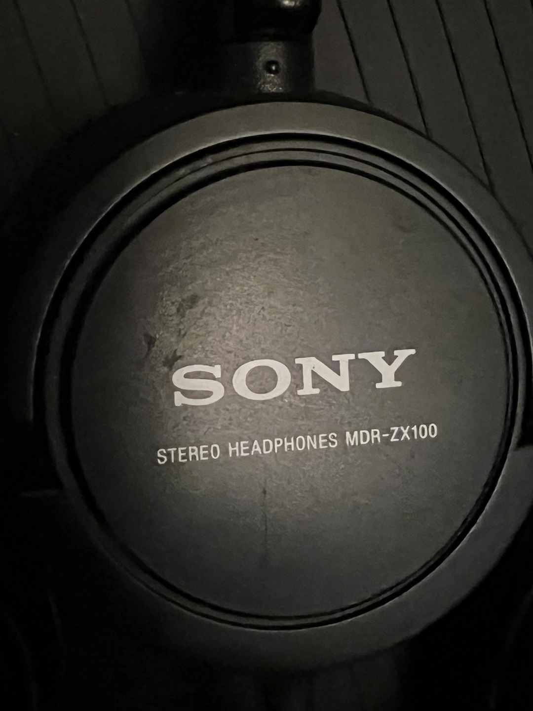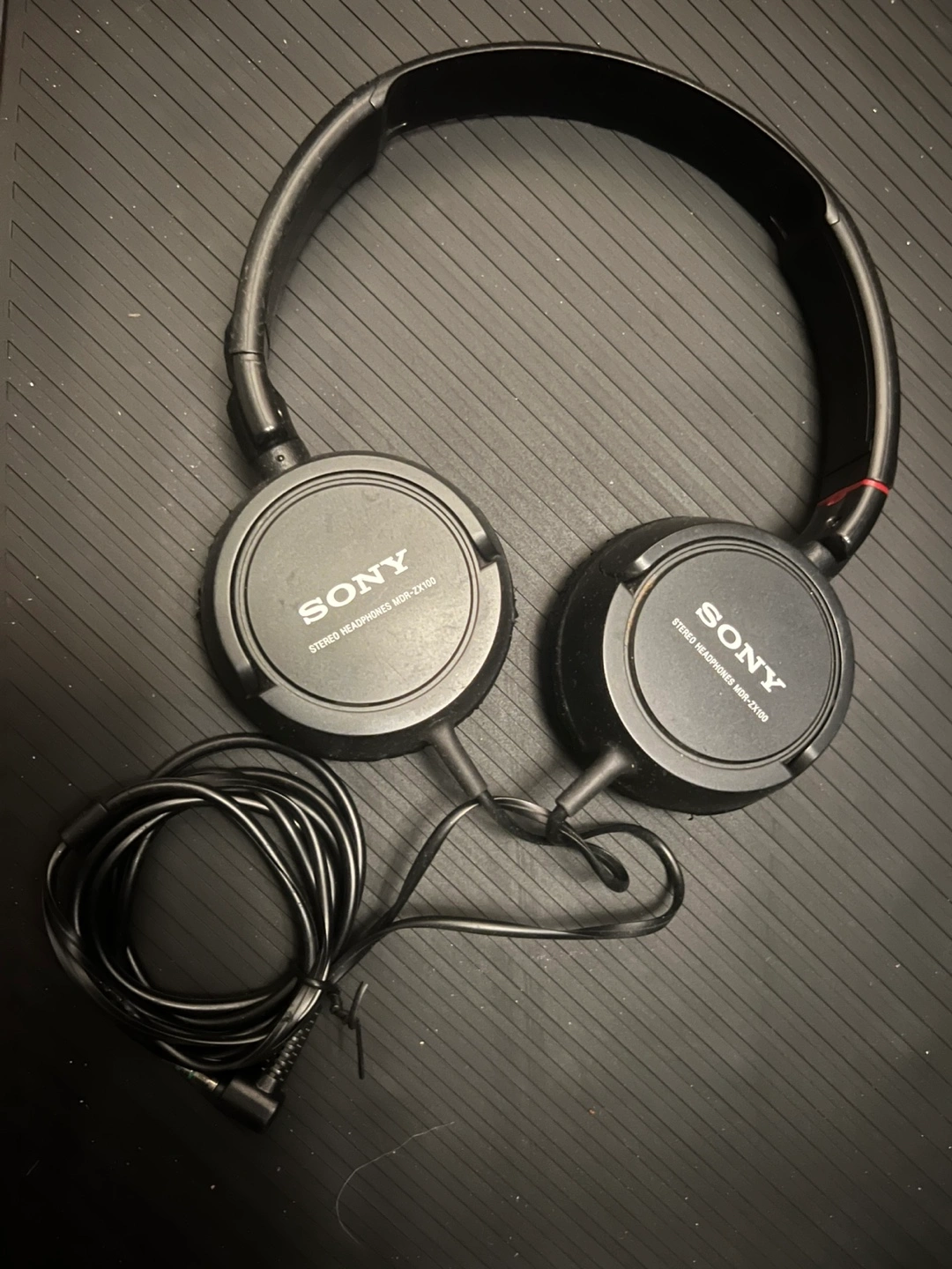 Black stereo headphones. Used condition. Includes cord. Model MDR-ZX100.