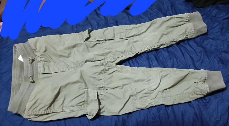 1000+Olive green cargo pants. Multiple pockets. Elastic waistband and cuffs. Good used condition. #freecycle