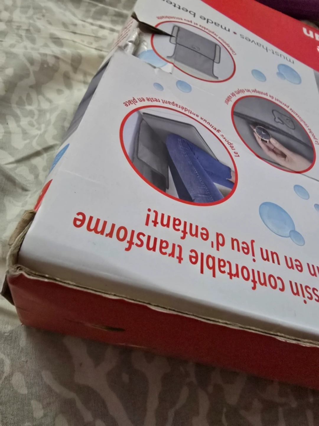 Grey bath kneeler with a pocket on the side. Comfortable cushion that transforms bath time into playtime. #ThriftyPicks