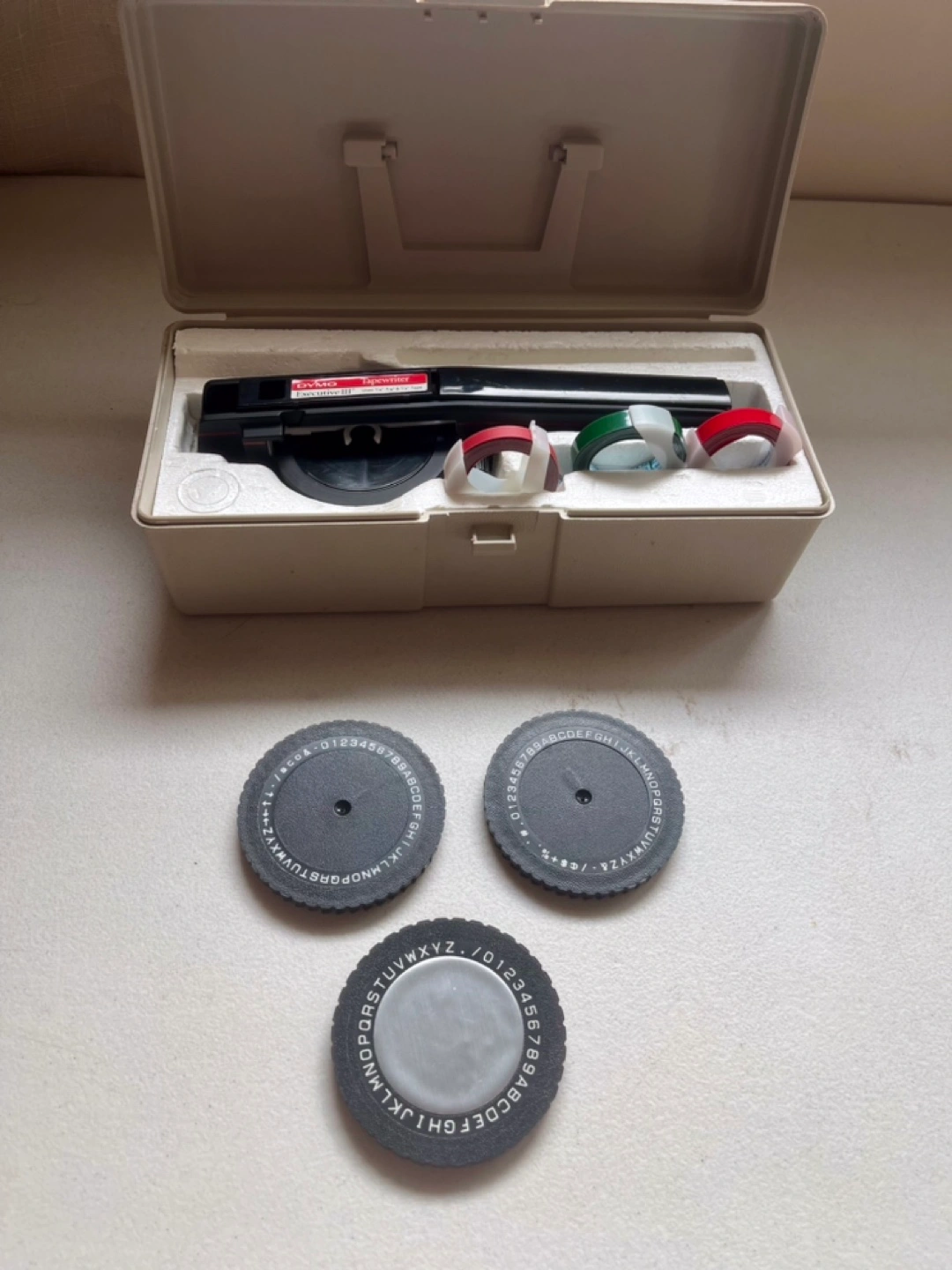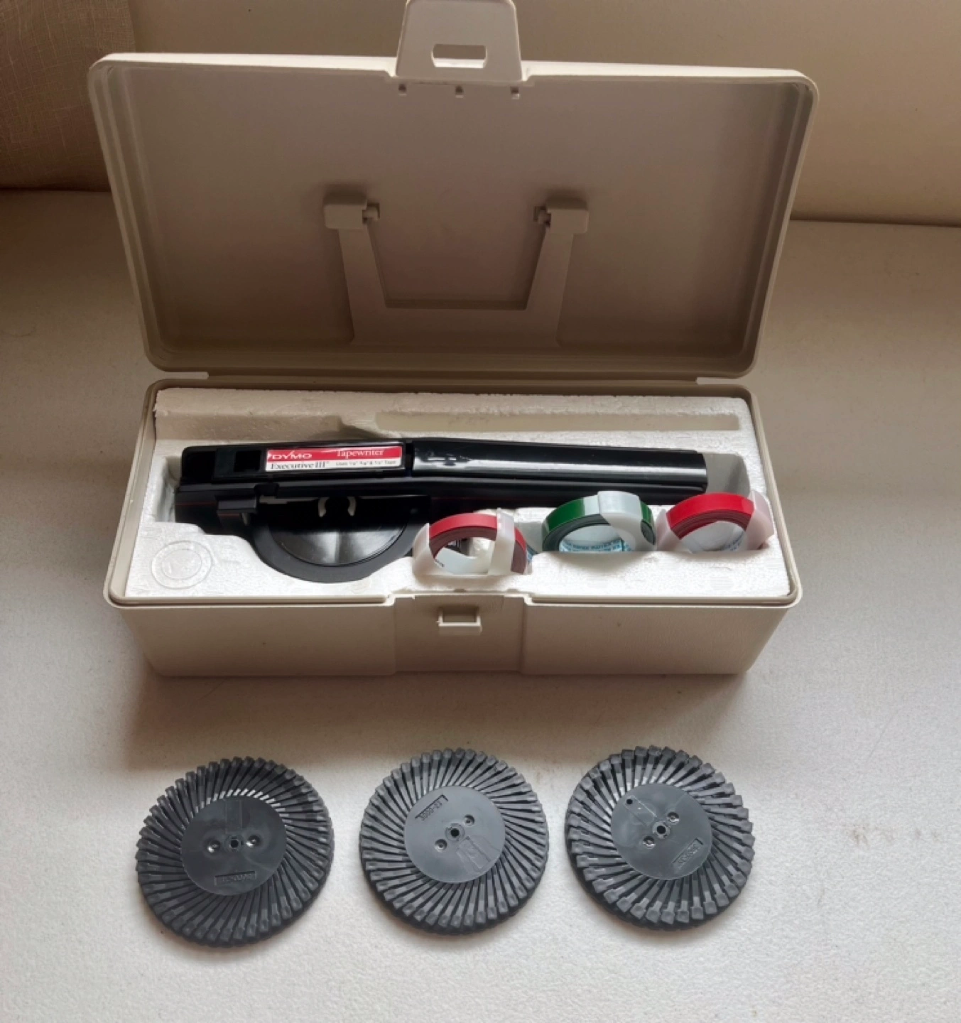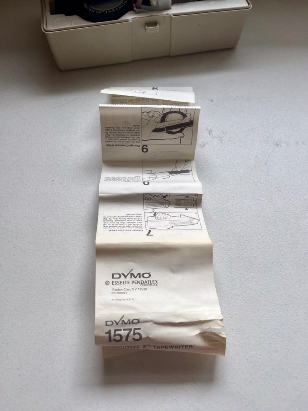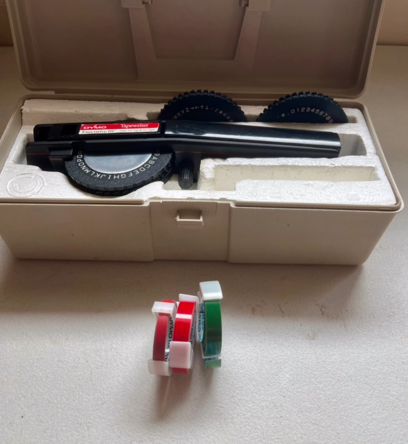 75Dymo 1575 Executive III Tapewriter. Includes carrying case and extra tape. Vintage label maker in great condition. Uses 1/4" & 1/2" tape.