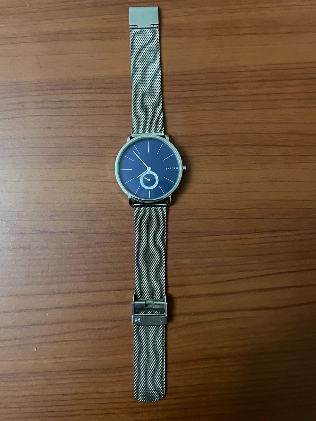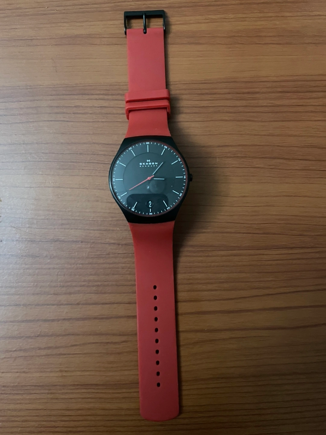 Two Skagen watches. One has a blue face and silver mesh band. The other has a black face and red silicone band. Minimalist design. Pre-owned. Really enjoyed to use this watches and its condition are great. You could just change the battery. Each price $90 But $160 if you take both of them. Very Good Condition First come, first serve. pick up and by cash