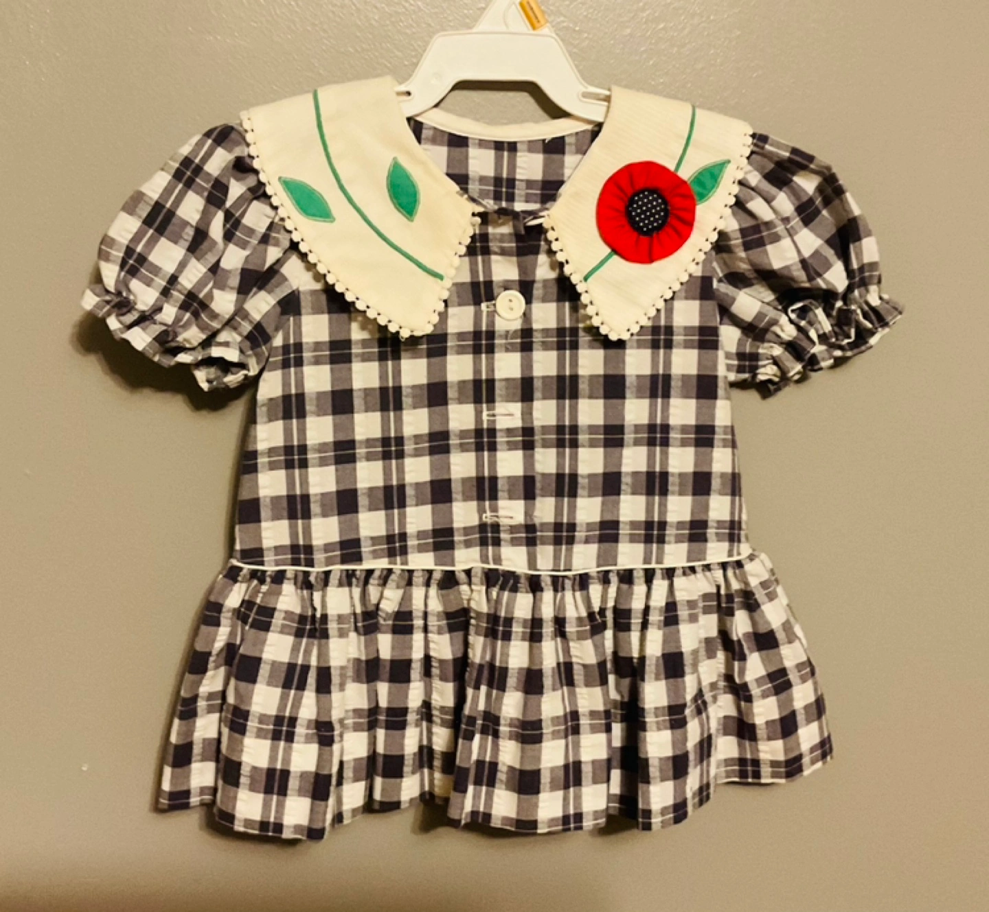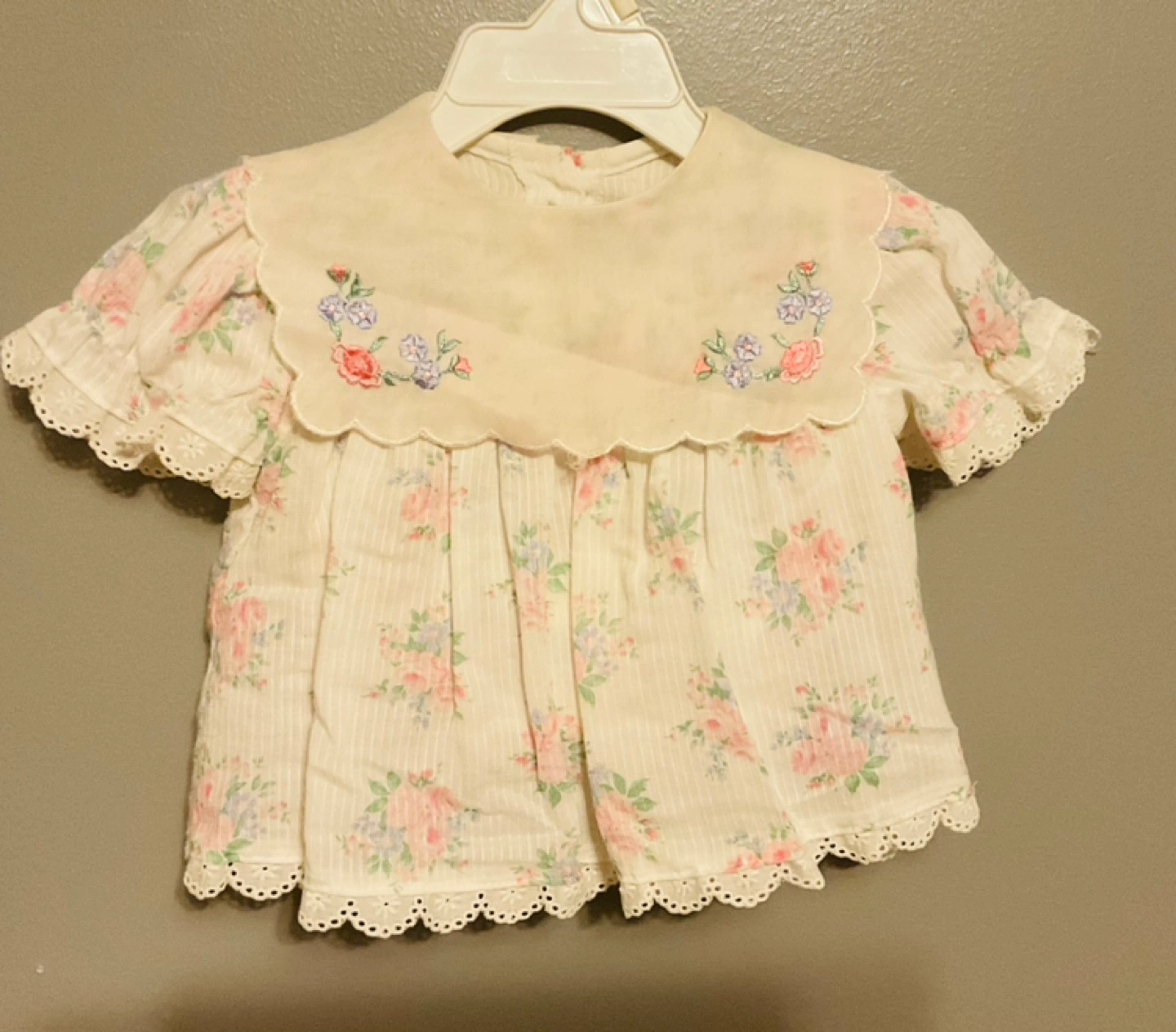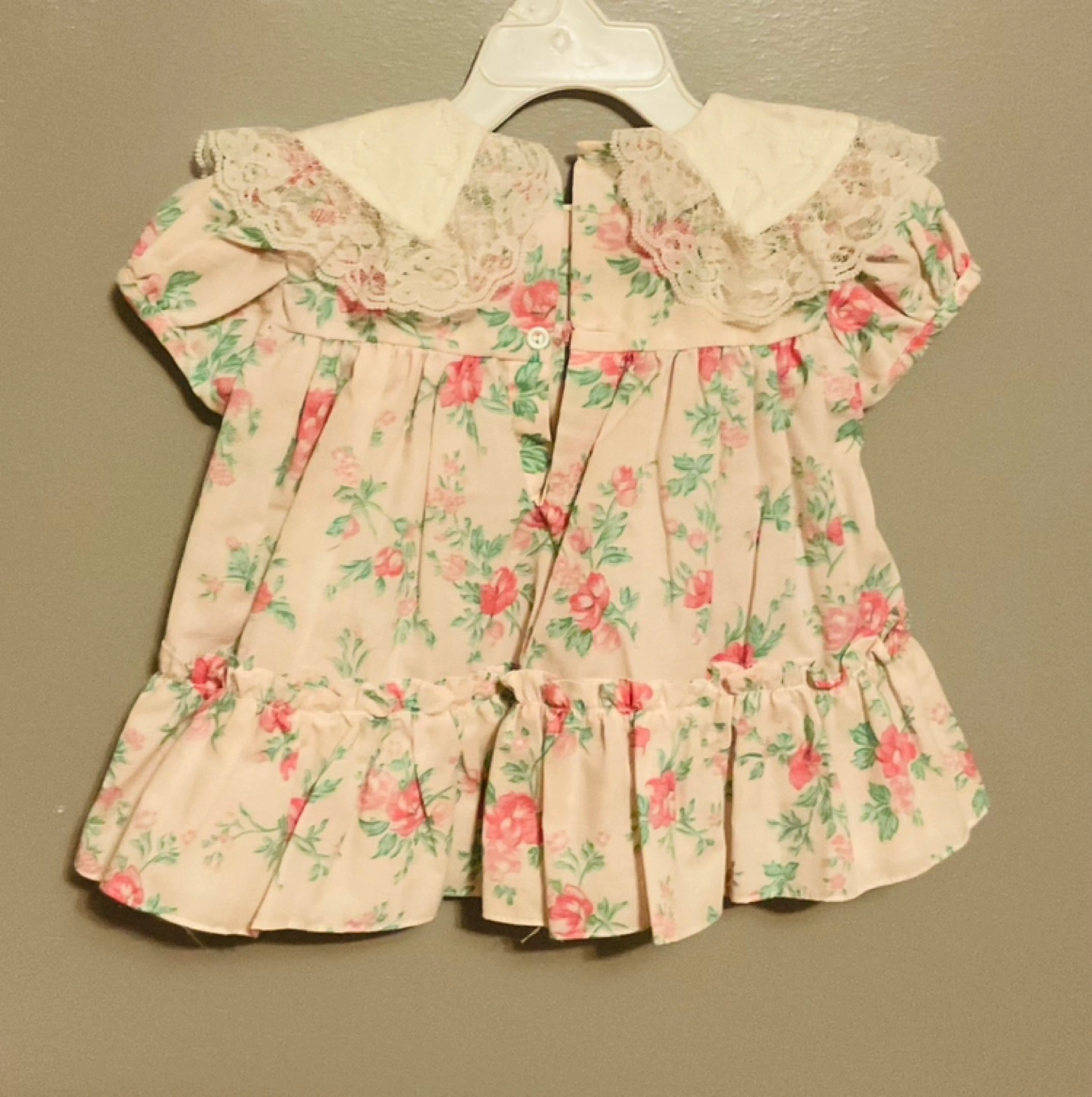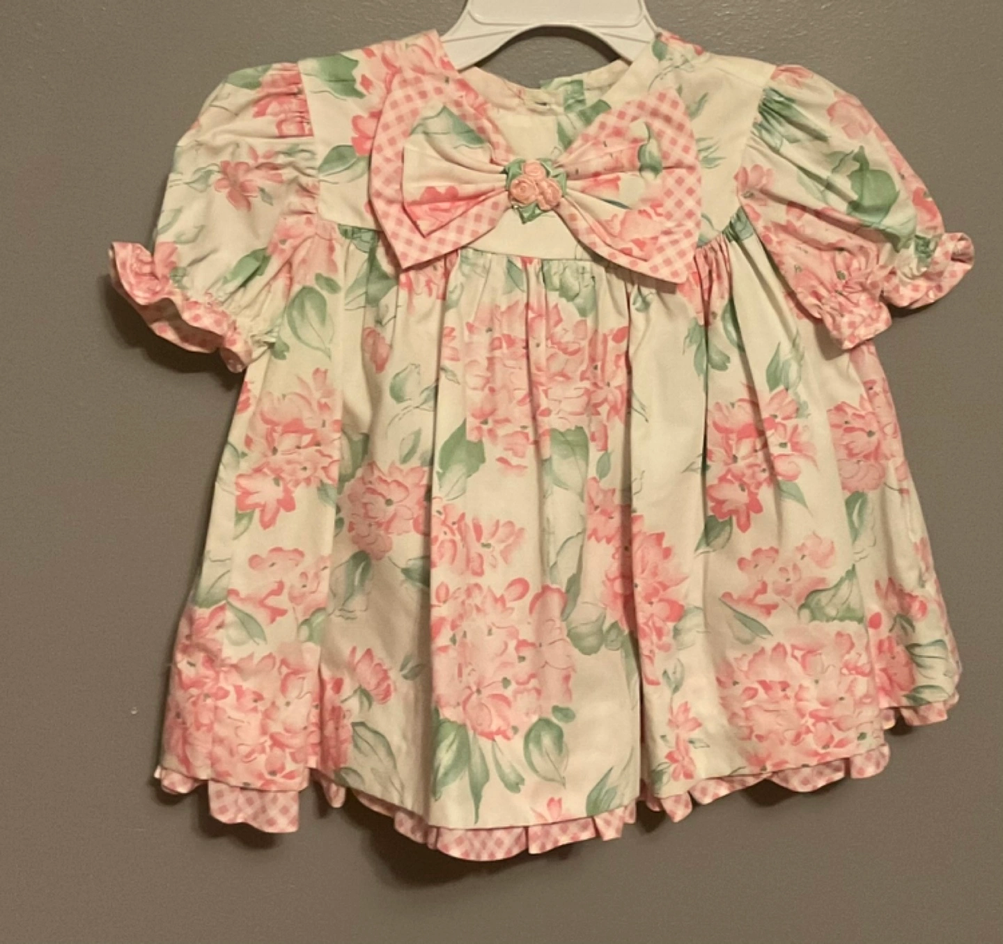 Adorable vintage baby girl's dress set. Includes a red velvet dress and a floral print dress. Both feature lace trim and embroidered details. Perfect for special occasions or photoshoots. Size 12 to 24 months $10 each or take em all $25π