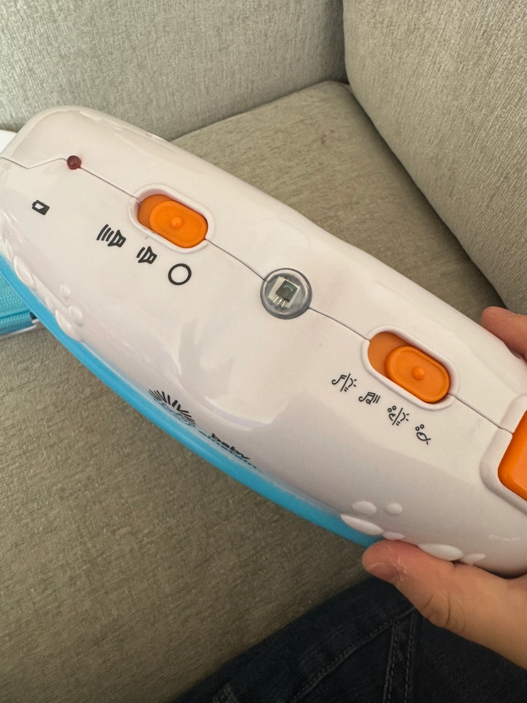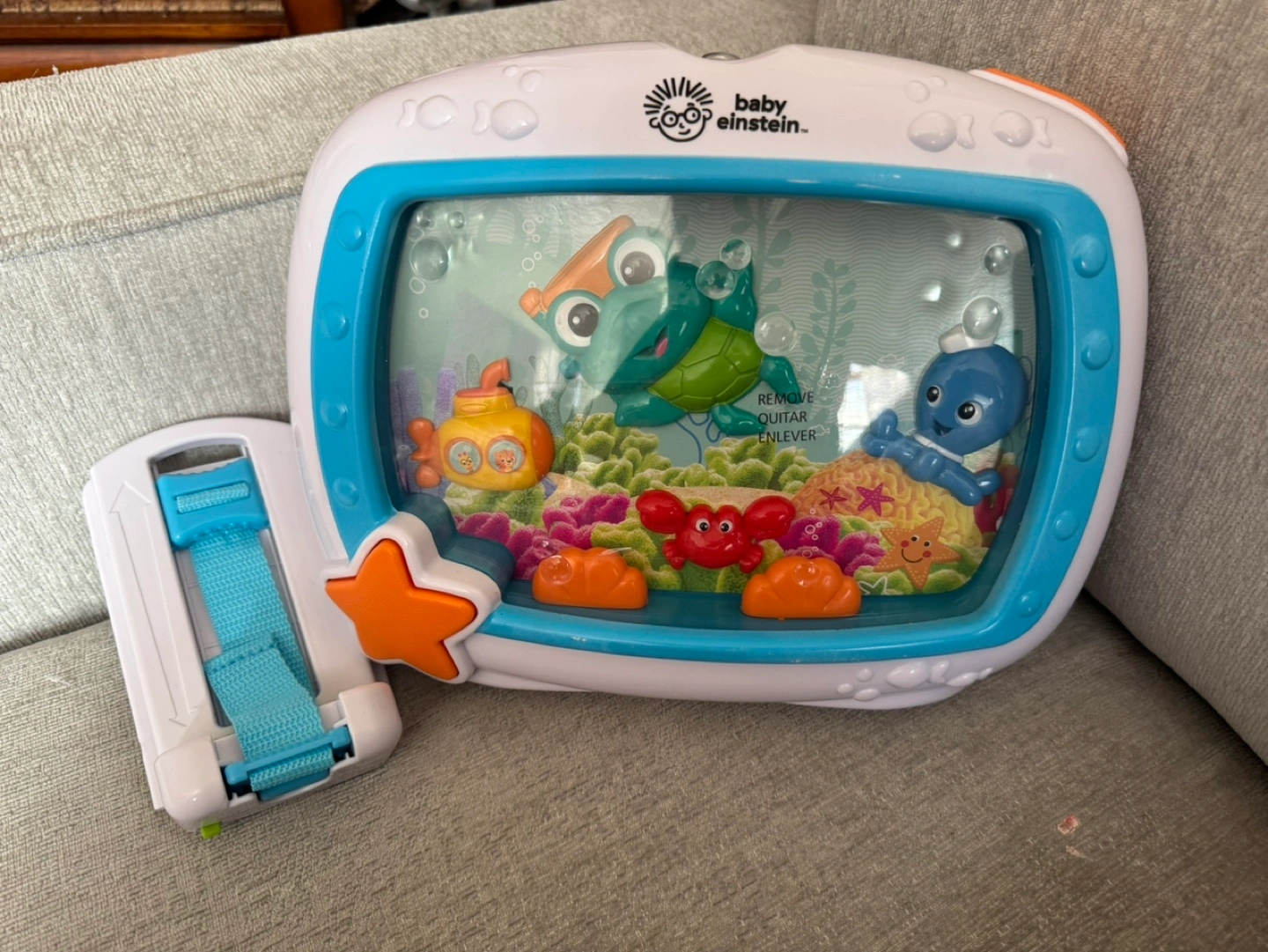 352Adorable ocean-themed soother. Features lights and sounds. Attachable strap for on-the-go and for cribs. Missing remote but works without it as well. Brand new out the box but was never used.