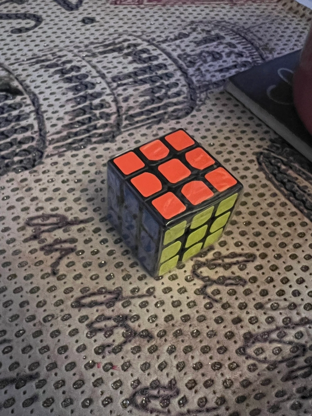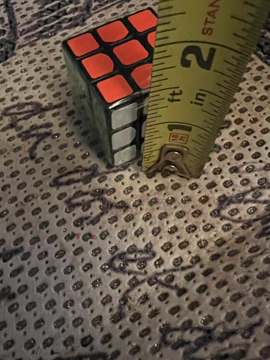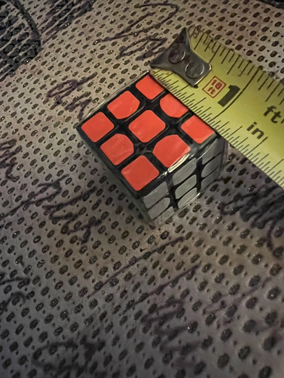 Small Rubik's cube. Measures approximately 1.25 inches. Blue, orange, white, green, red and yellow colors. Fun brain teaser.