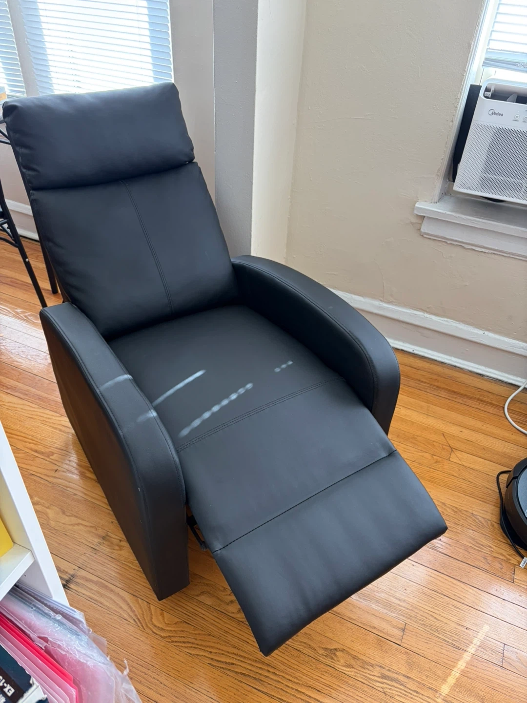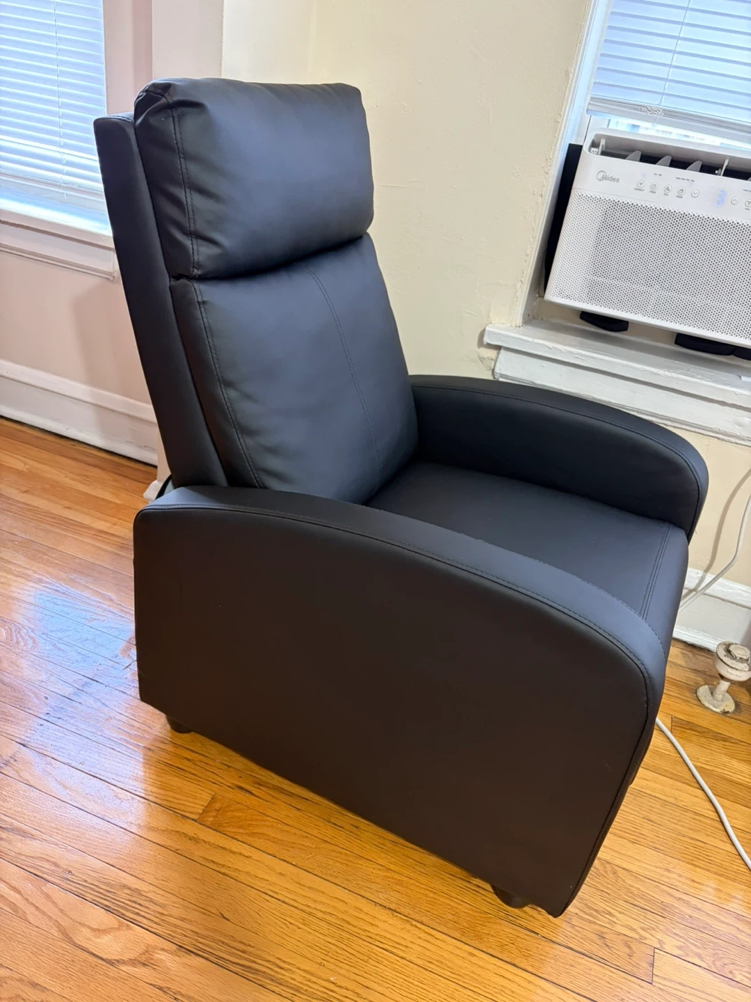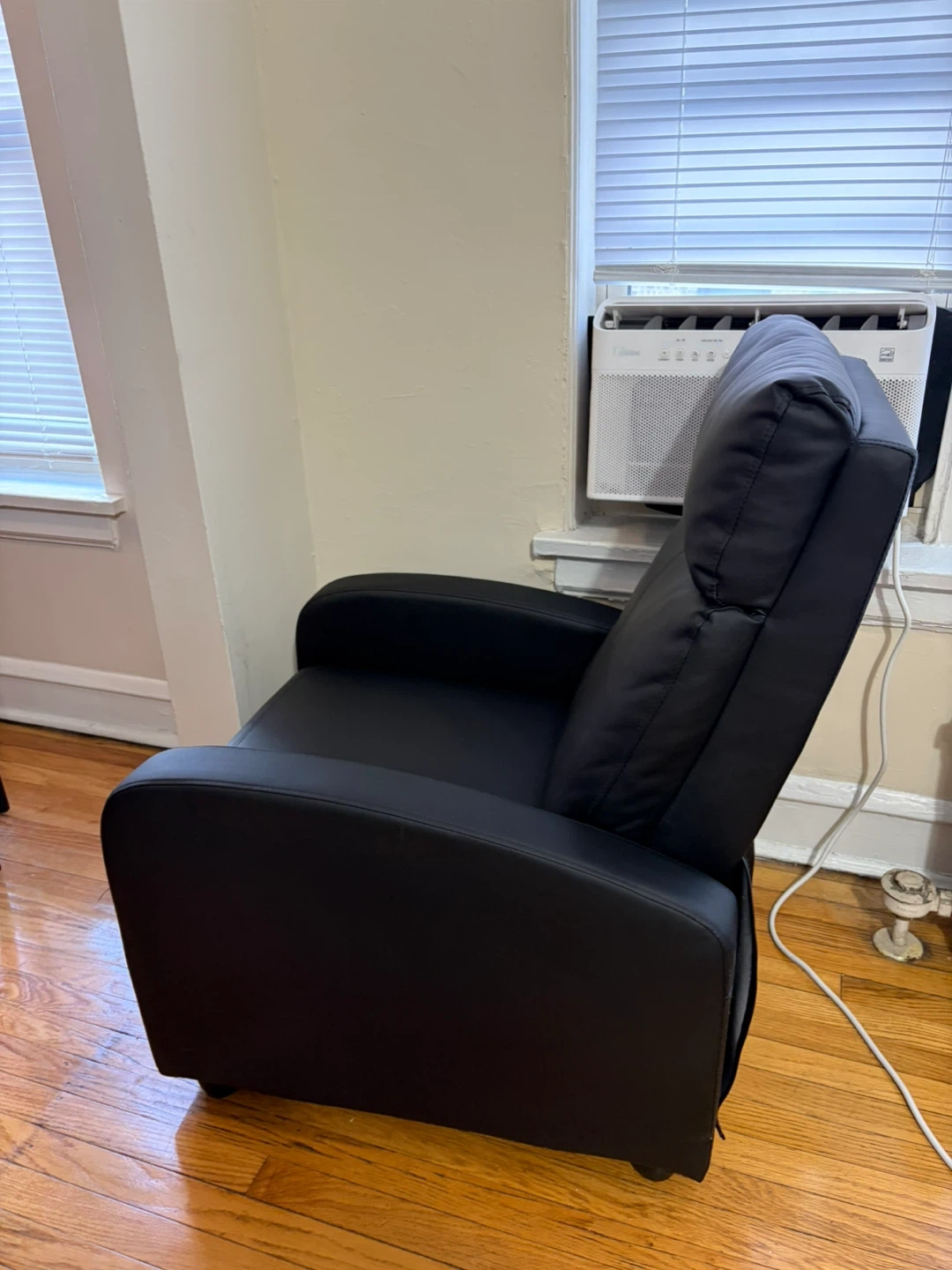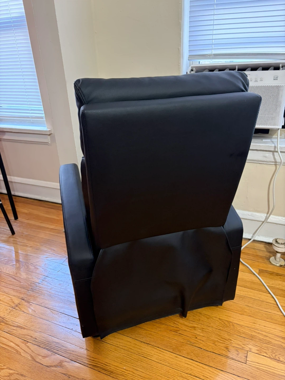 Selling a comfortable black leather recliner chair! It's perfect for relaxing after a long day. The chair is in good condition and ready for a new home.
