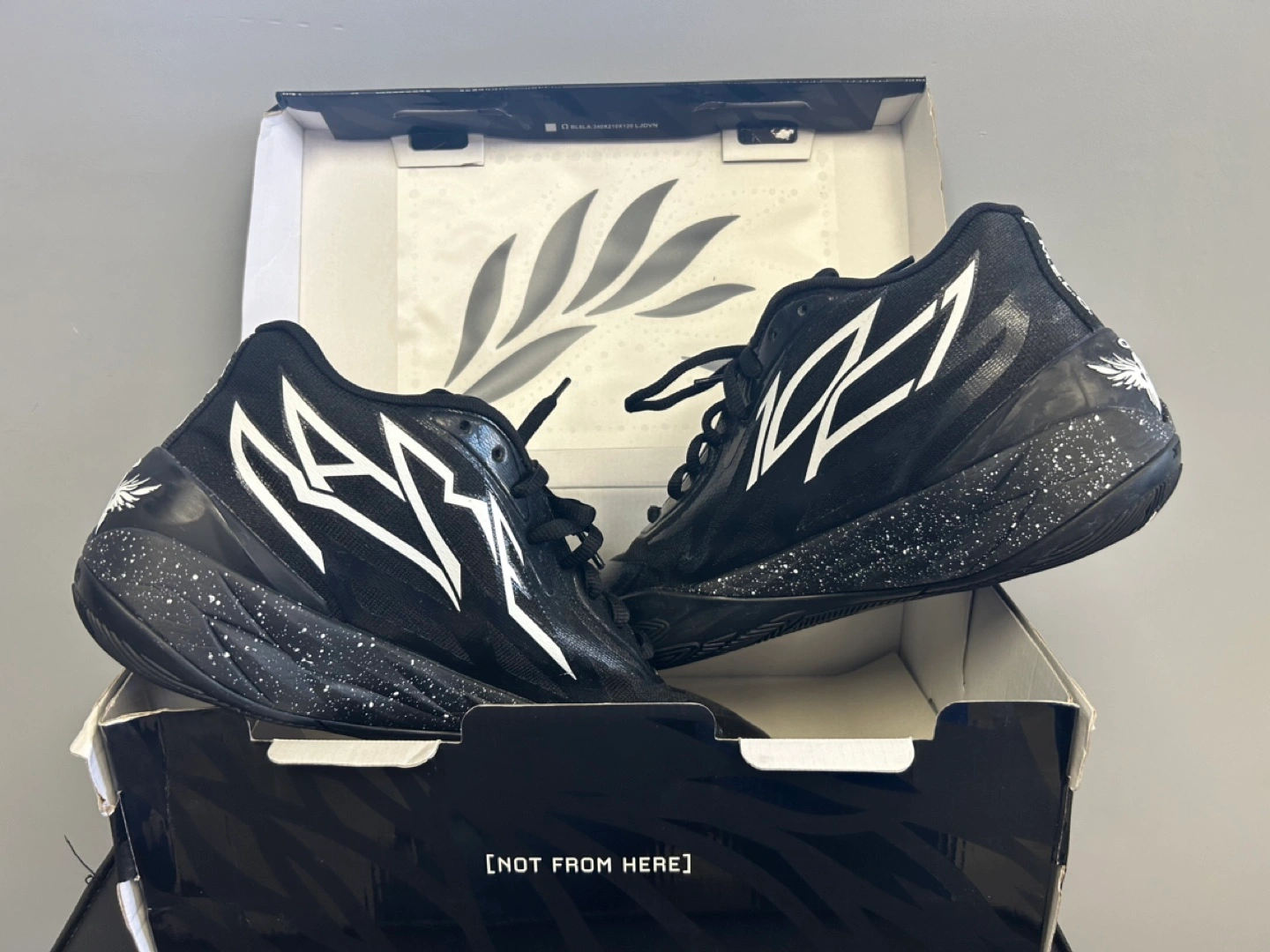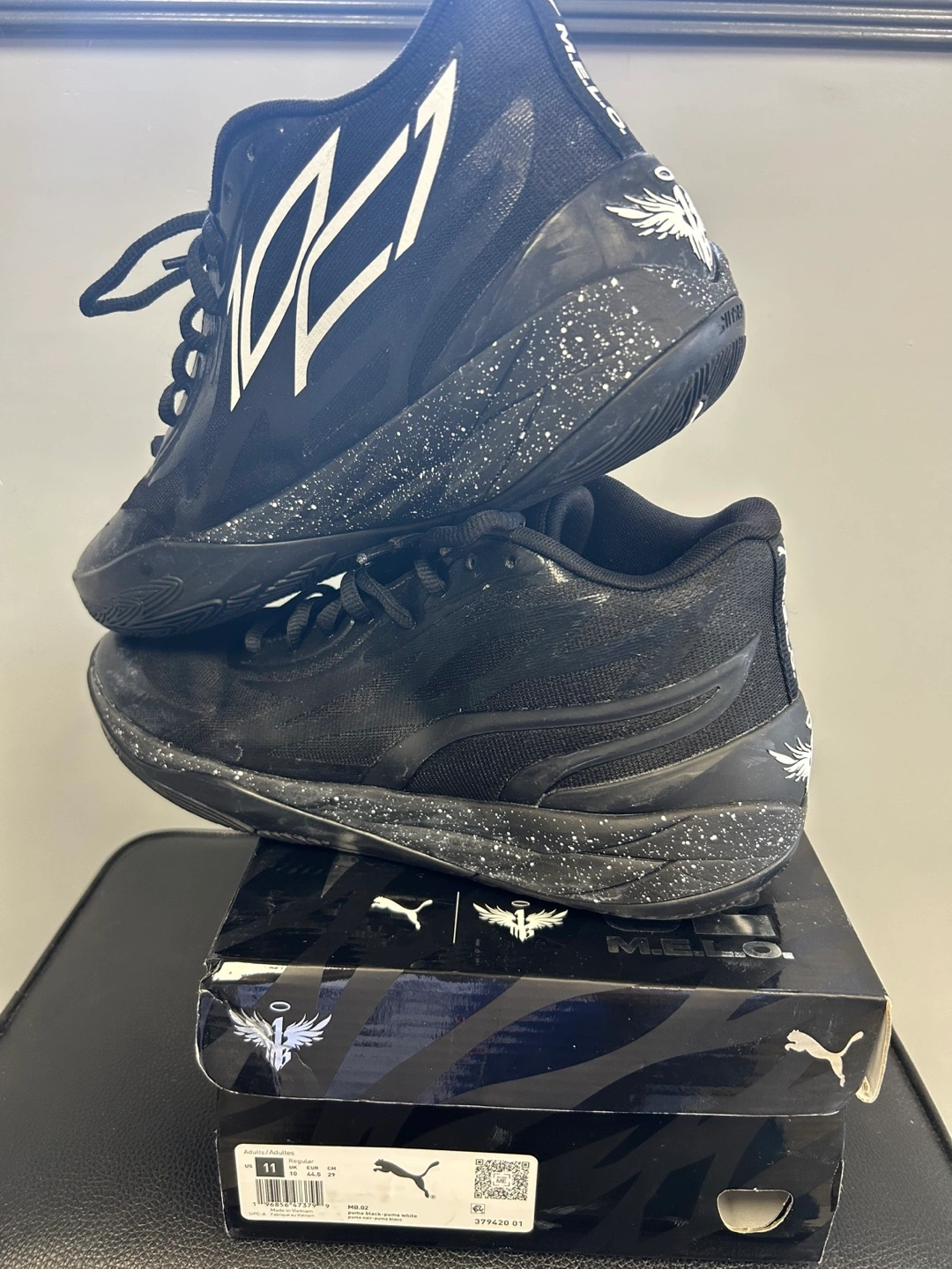 18Men's Puma MB.02 basketball shoes. Size 11 US. Black and white colorway. New in box. Made in Vietnam. Only wear one time!