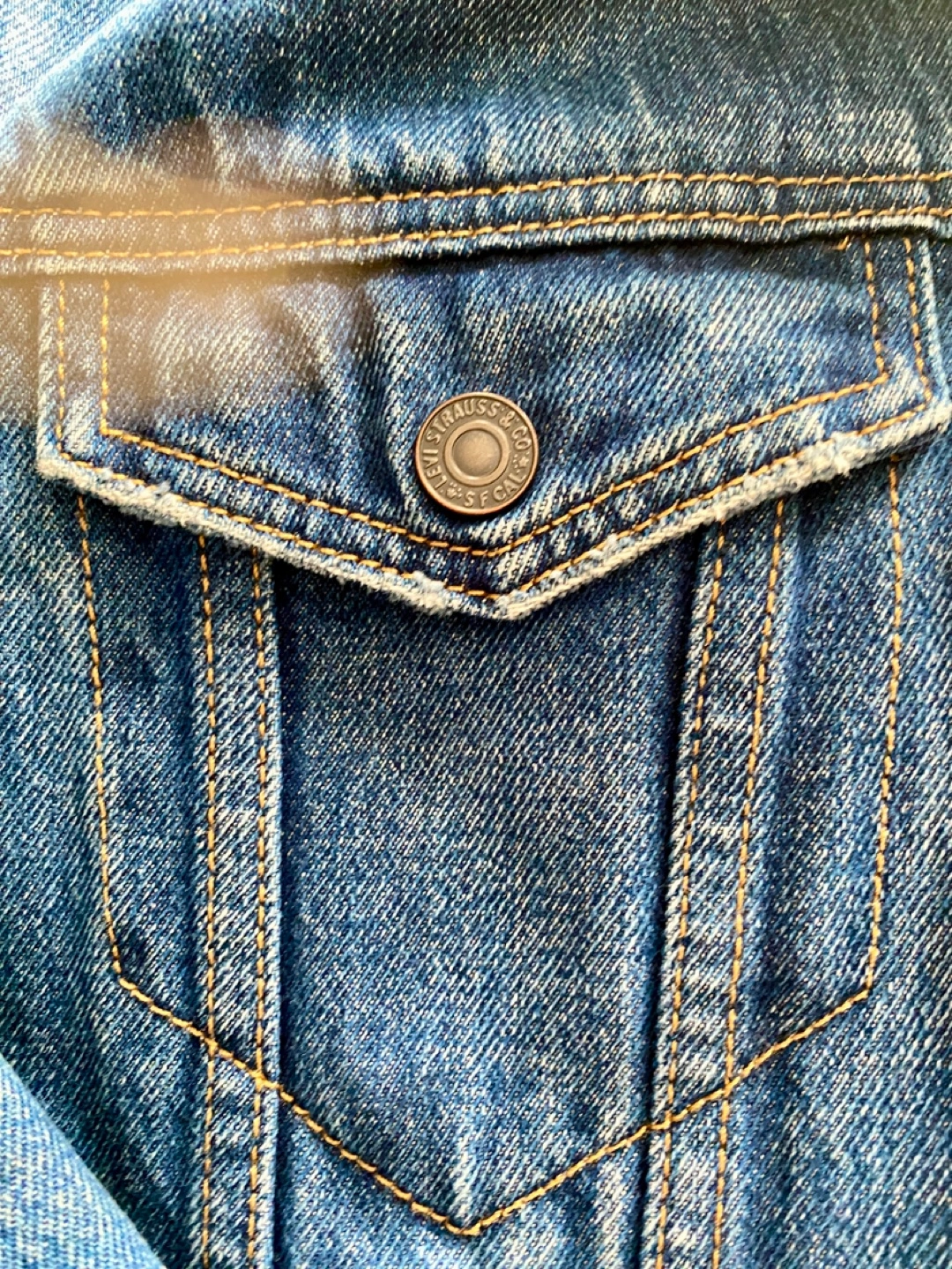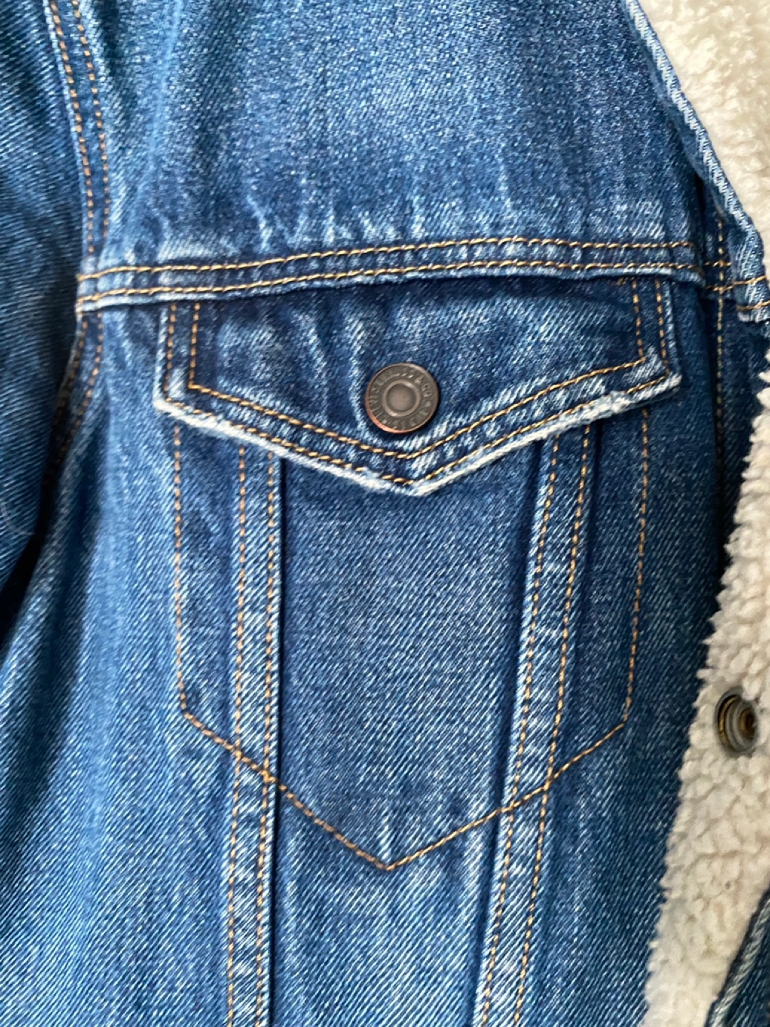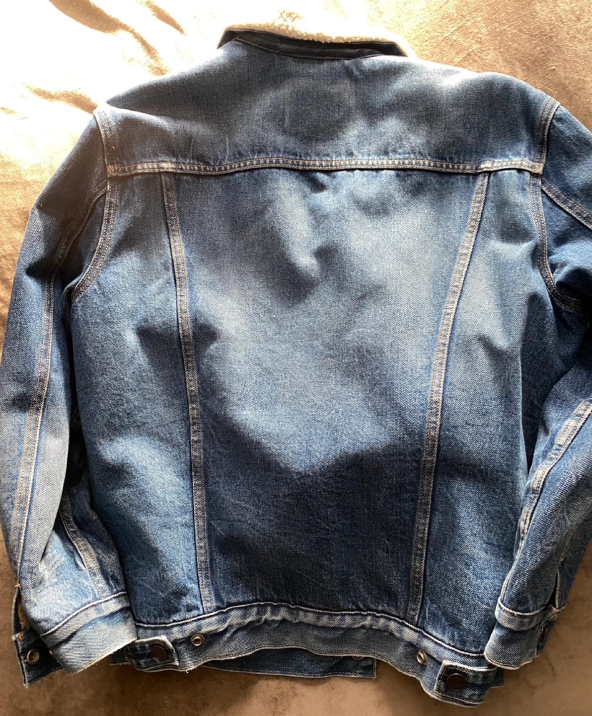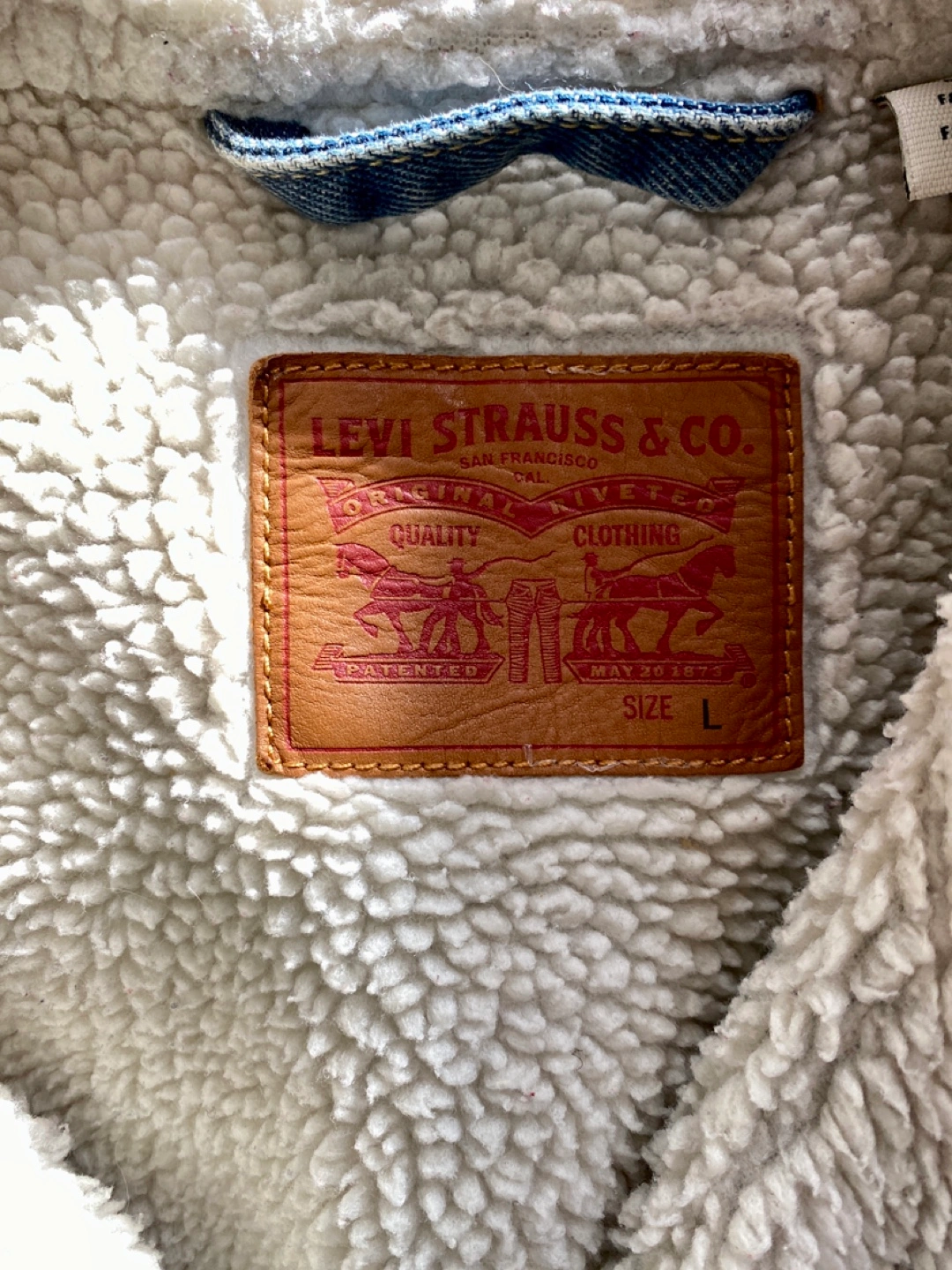 328Men's Levi's denim jacket. Features sherpa lining. Button closure. Classic style. Size Large. In great shape and clean condition. Pickup on Astoria Blvd South.