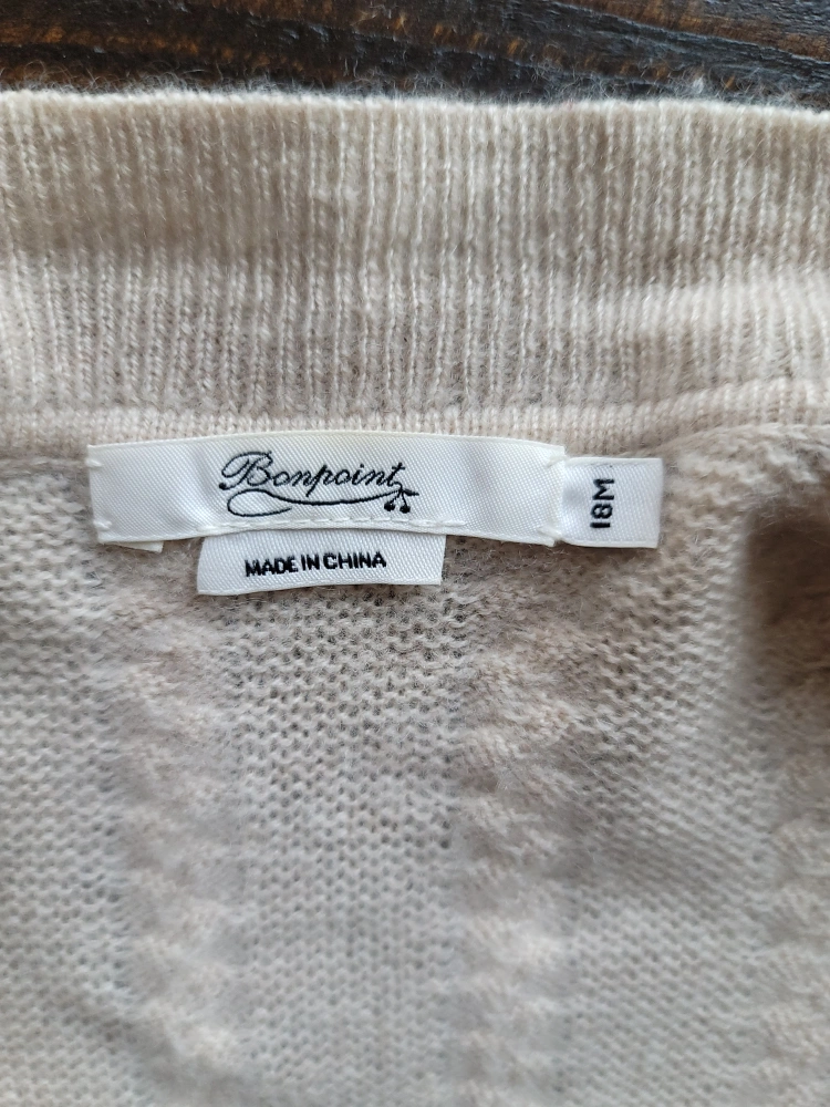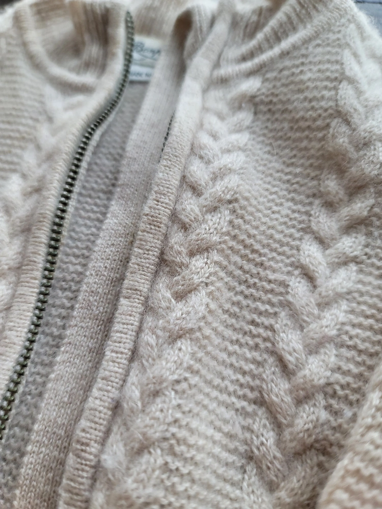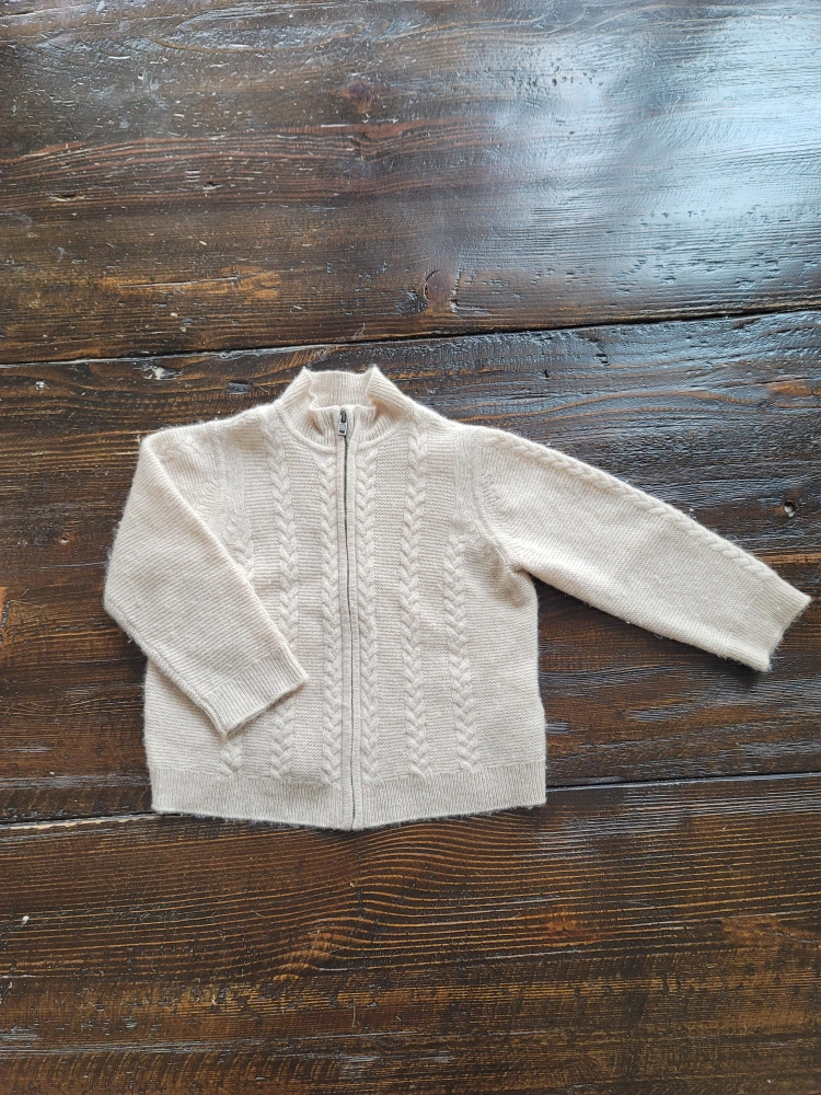 Adorable baby cardigan. Cream colored. Cable knit design. Full zip closure. Size 18 months.