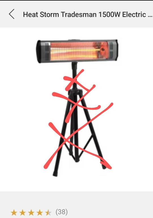 1500W electric infrared heater. Mounted on a tripod stand. Great for garages, workshops, or outdoor spaces. no tripod just the heater