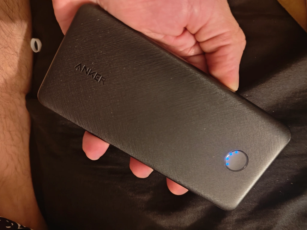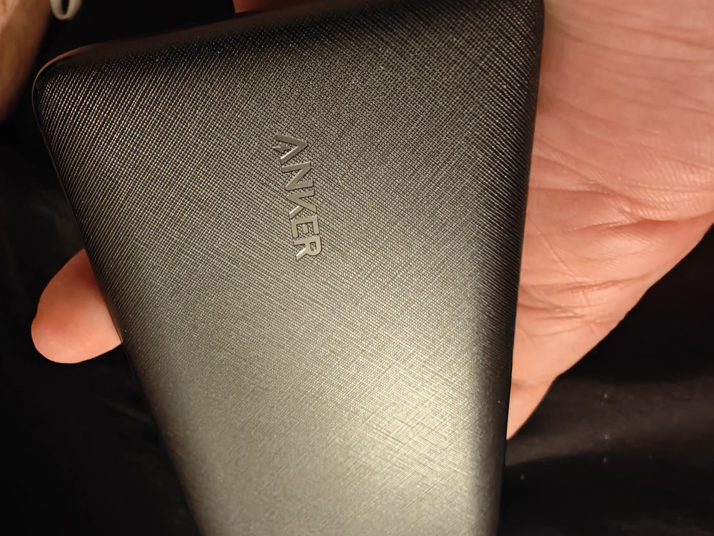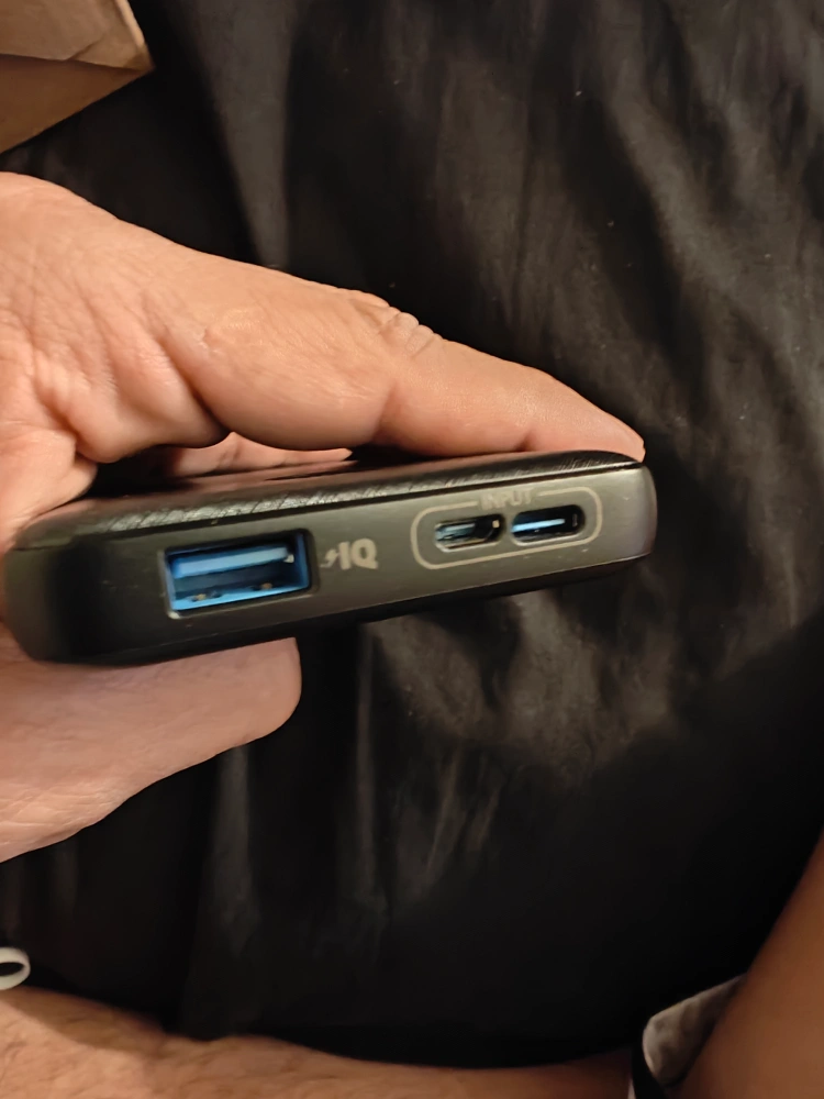 Slim portable charger. Black. Multiple ports. PowerCore branding. Good condition.