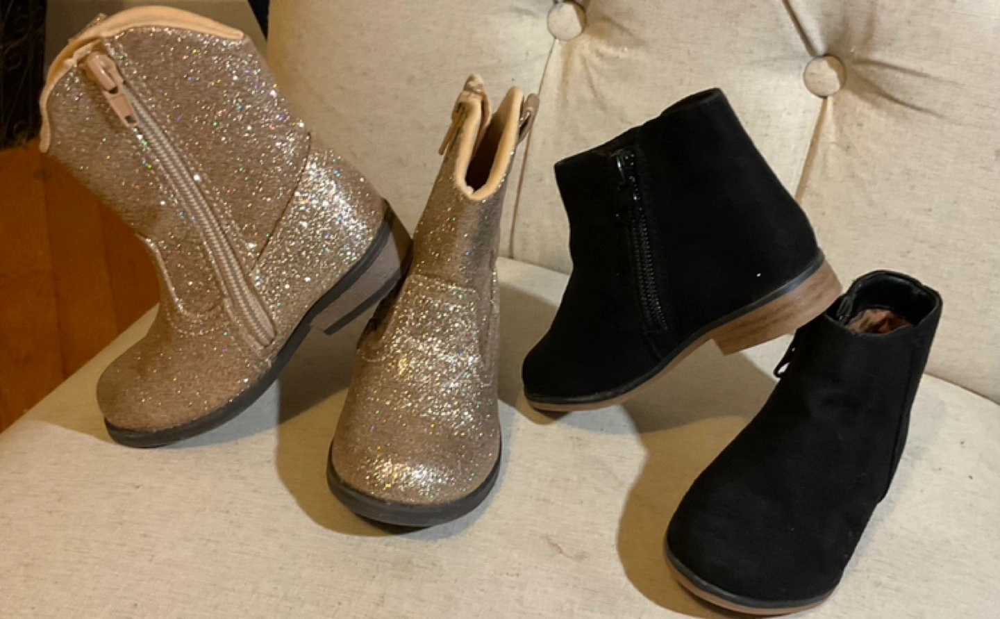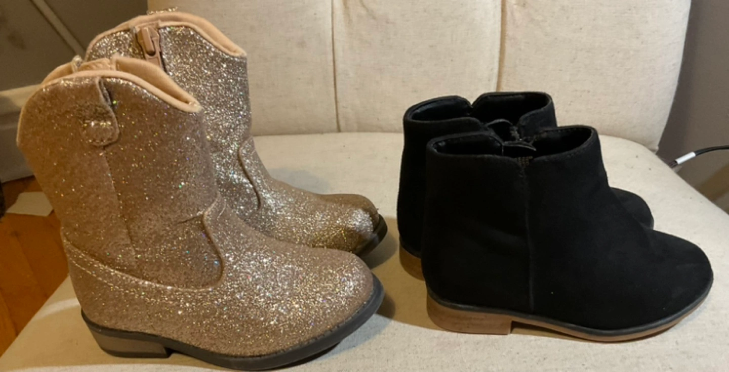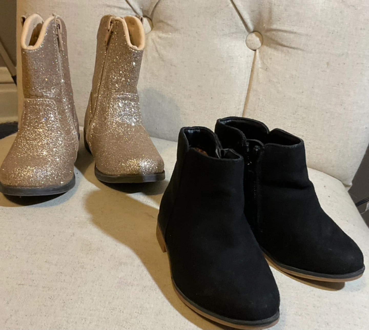 Bundle includes two pairs of girls' boots. Car & jack One pair is gold glitter cowboy boots, the other is Maggie & Jack black ankle boots. Size 6. Gently used. Both pairs for $15