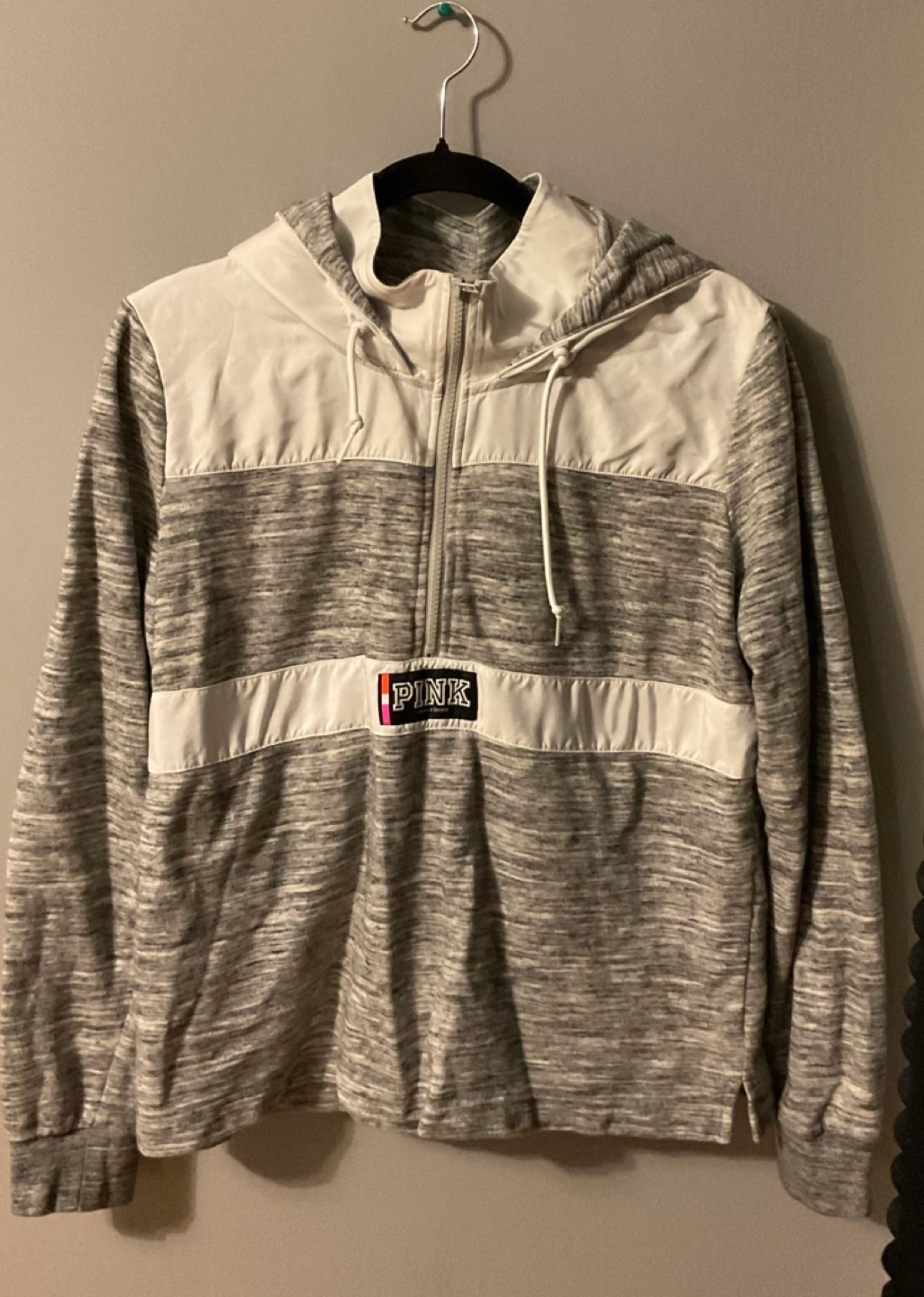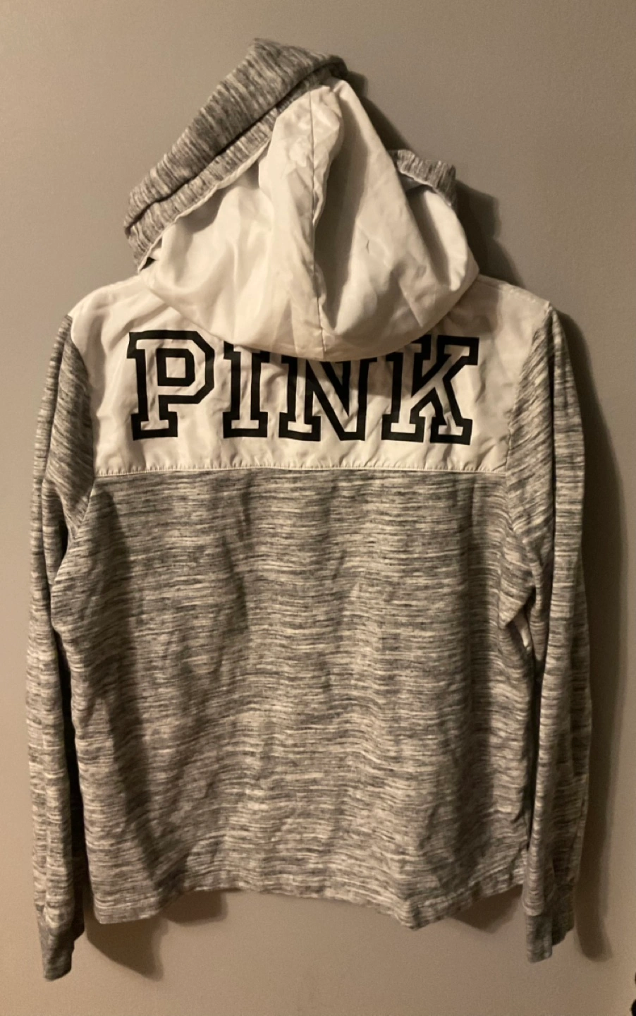 PINK Victoria's Secret Track Jacket Hoodie Pullover Quarter Zip Gray Logo Size L Brand New just no tags