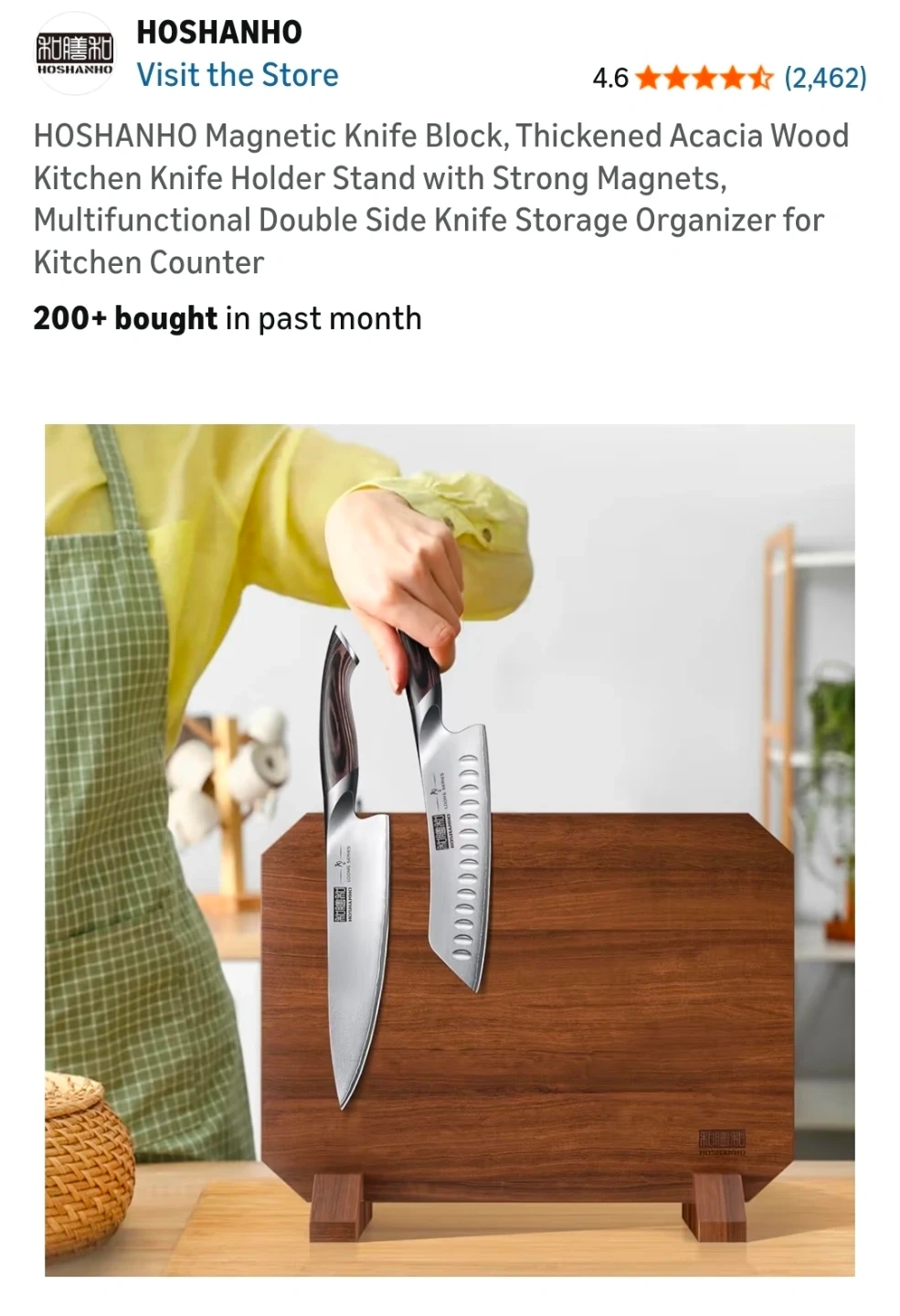 HOSHANHO Magnetic Knife Block, Acacia Wood