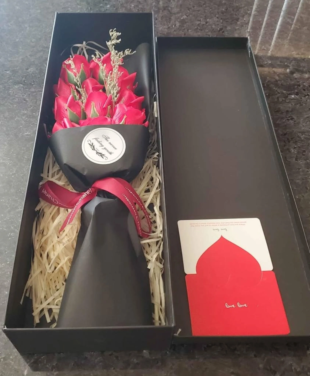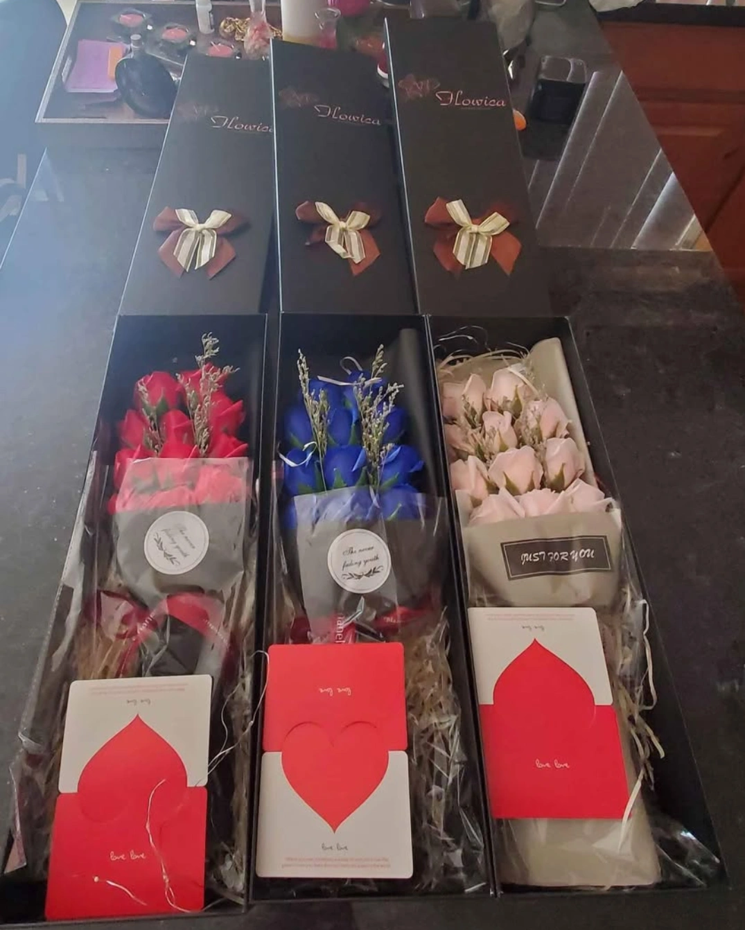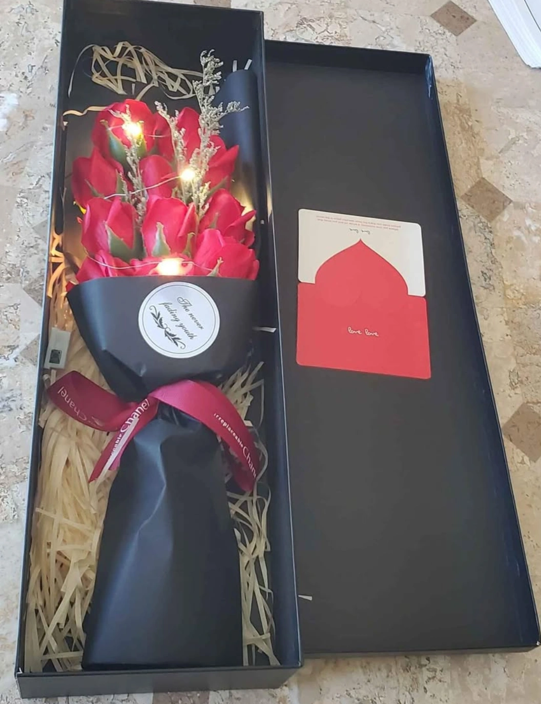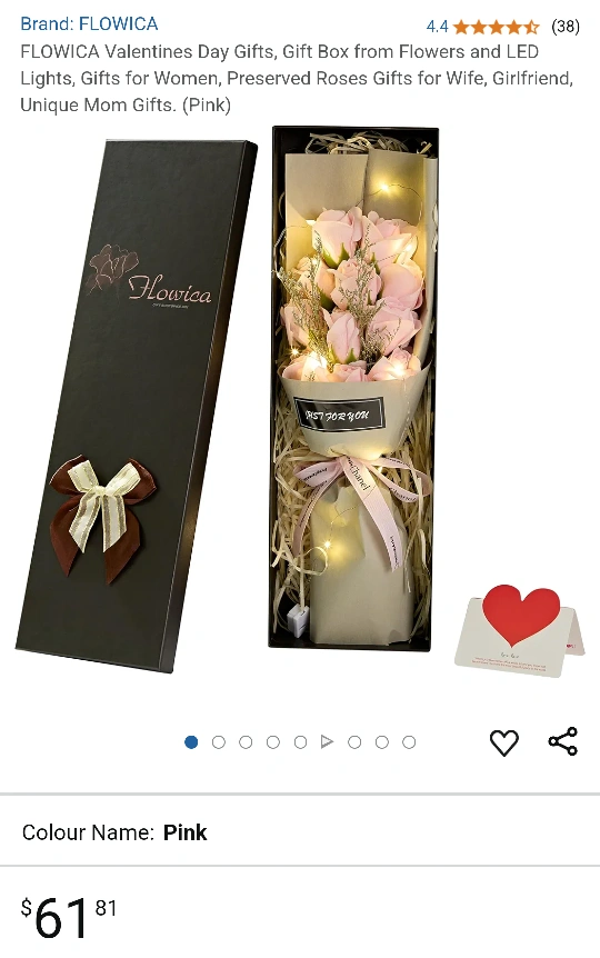 Flowica Gift Box of Roses with LED Lights, Artificial Flowers Bouquet Makes a great gift to have on hand when you're in a pinch. Perfect gift for any occasion. Red, Blue and Pink available $15 each. Cash only. Pick up only.