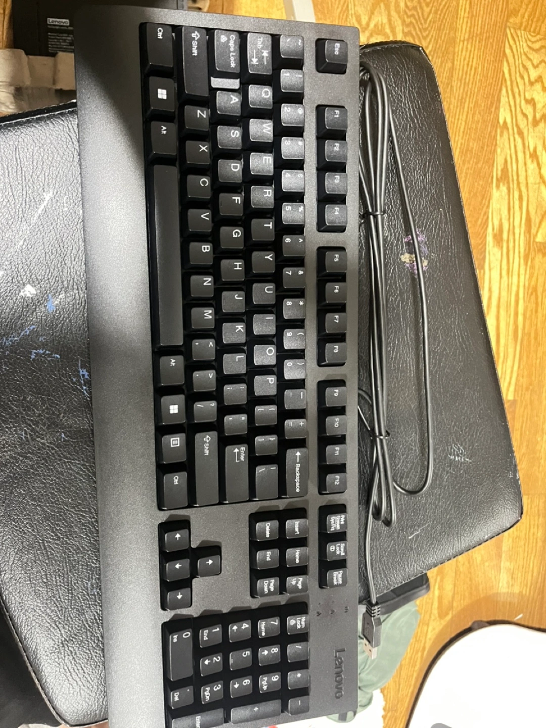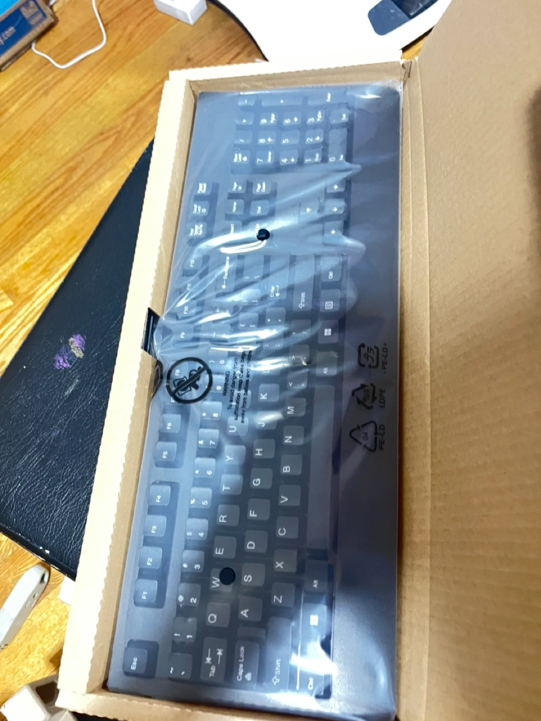 Wired USB keyboard. Full-size layout. Number pad included. New, still in original packaging. Great for office or home use.