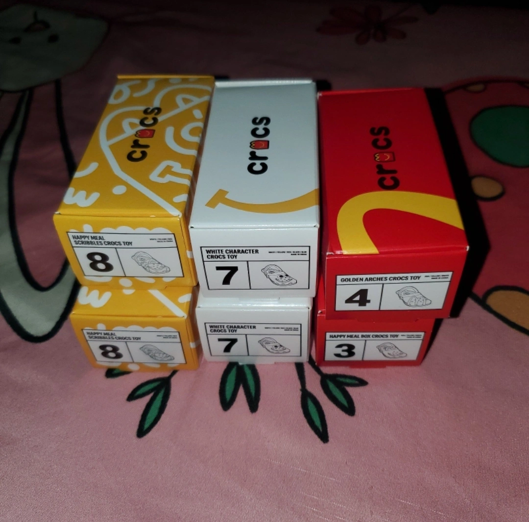 Brand New, never open 6 - mcdonald's crocs keychain toys #3, #4, #7 (x2), #8 (x2) NEED GONE ASAP bundles are welcome open to reasonable offers. prefer meet up on weekdays evening and weekend morning/afternoon if possible
