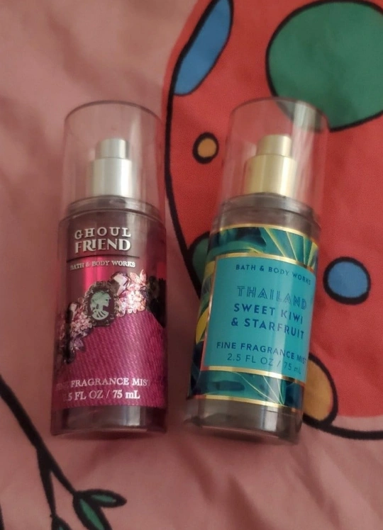 2 - bath & body works fragrance mist - ghoul friend - Thailand sweet kiwi & starfruit Both mists are lightly used. The black marker line indicates how much was used. I'm not really a fragrance person. NEED GONE ASAP bundles are welcome open to reasonable offers. prefer meet up on weekdays evening and weekend morning/afternoon if possible
