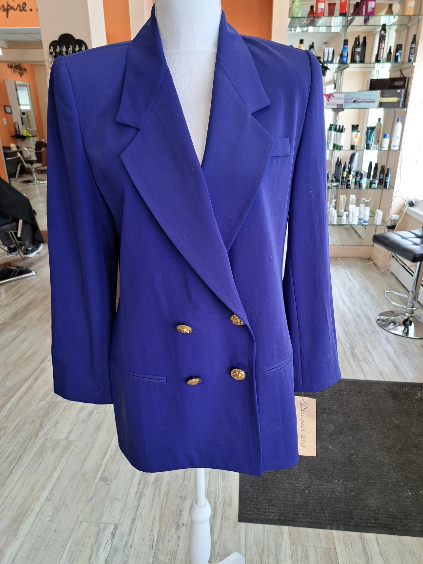 Gorgeous purple double-breasted blazer. Gold buttons. Size 6. Lined. Excellent condition.