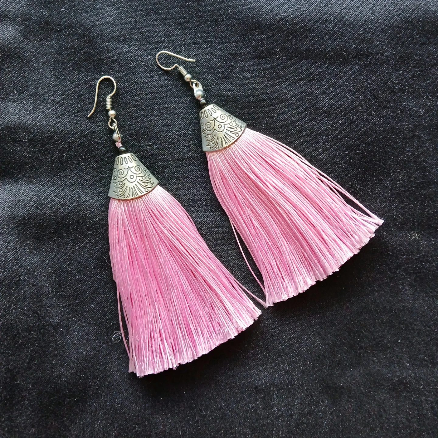 1000+Pretty pink tassel earrings. Silver-tone metal accents. Lightweight and fun.