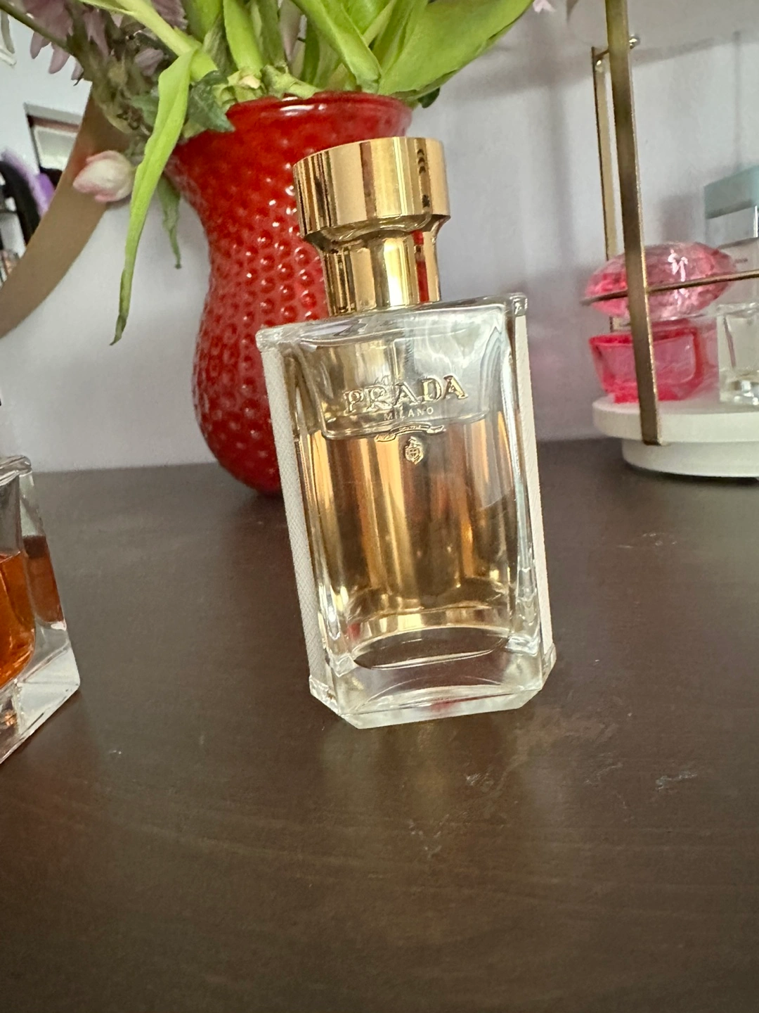 31Prada perfume. Gold cap and clear glass bottle. Excellent condition. Used, no box. 1.7 fl oz