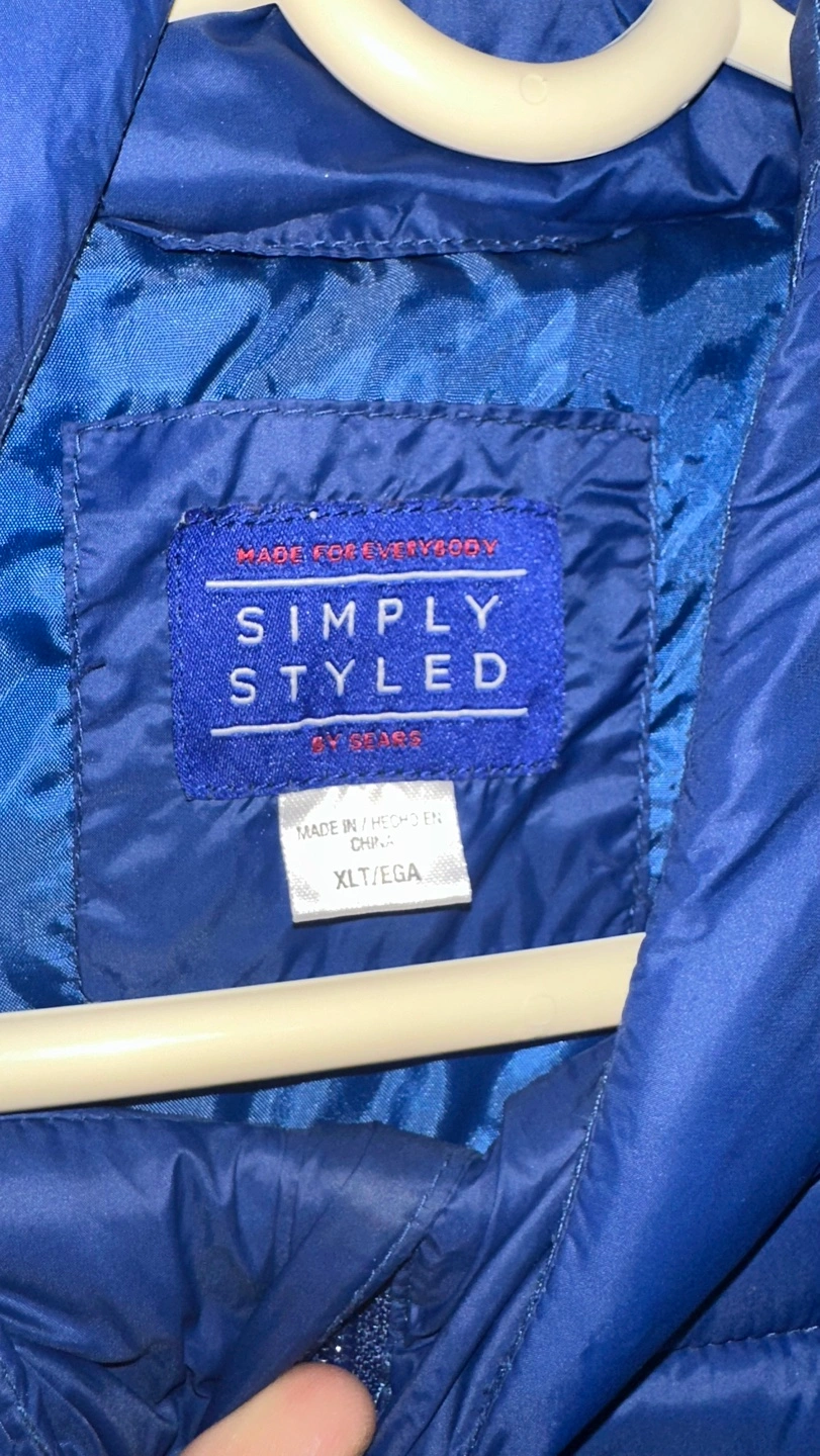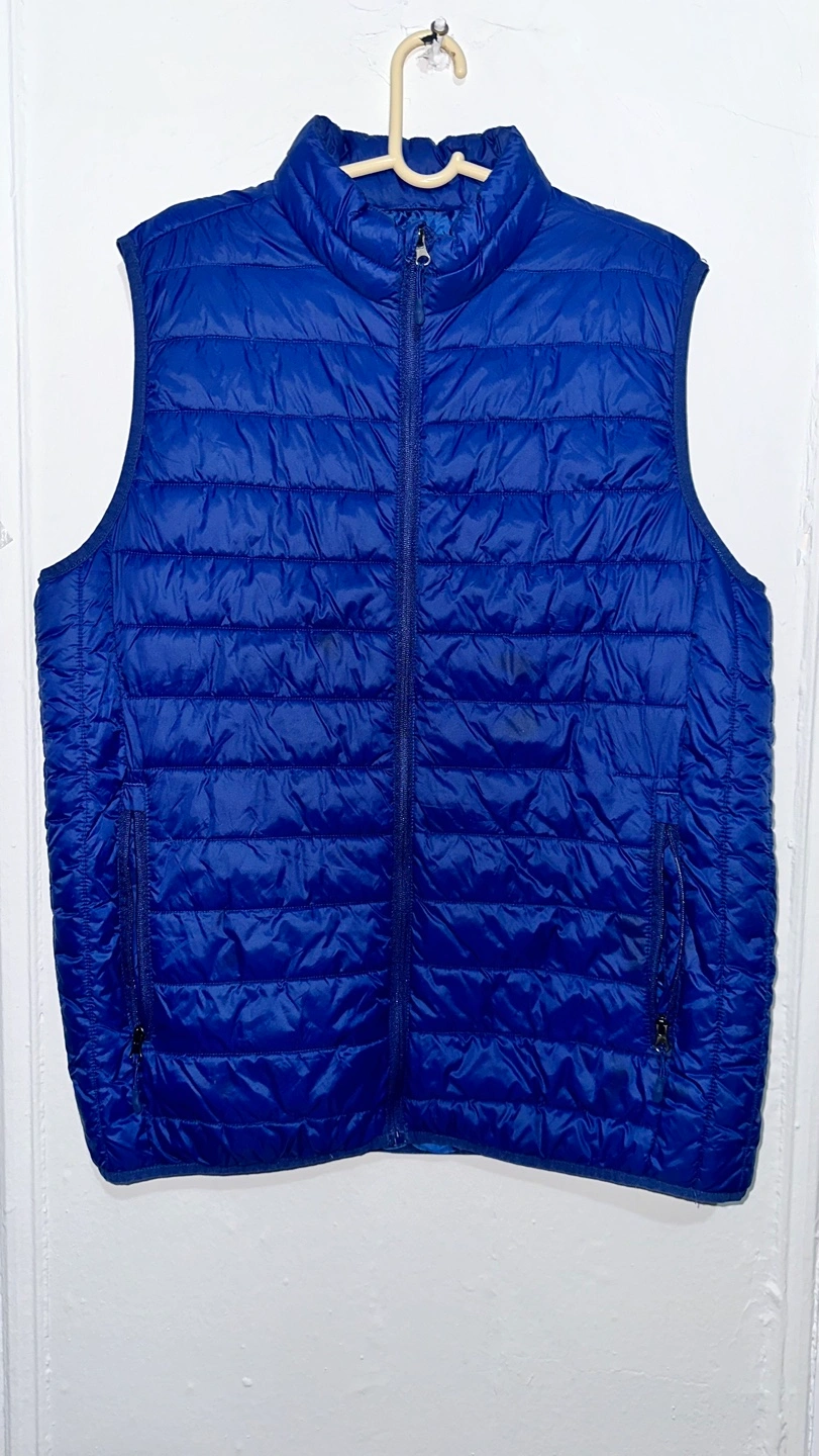 1000+Men's sleeveless puffer vest. Royal blue. Full zip closure. Side pockets. XL.