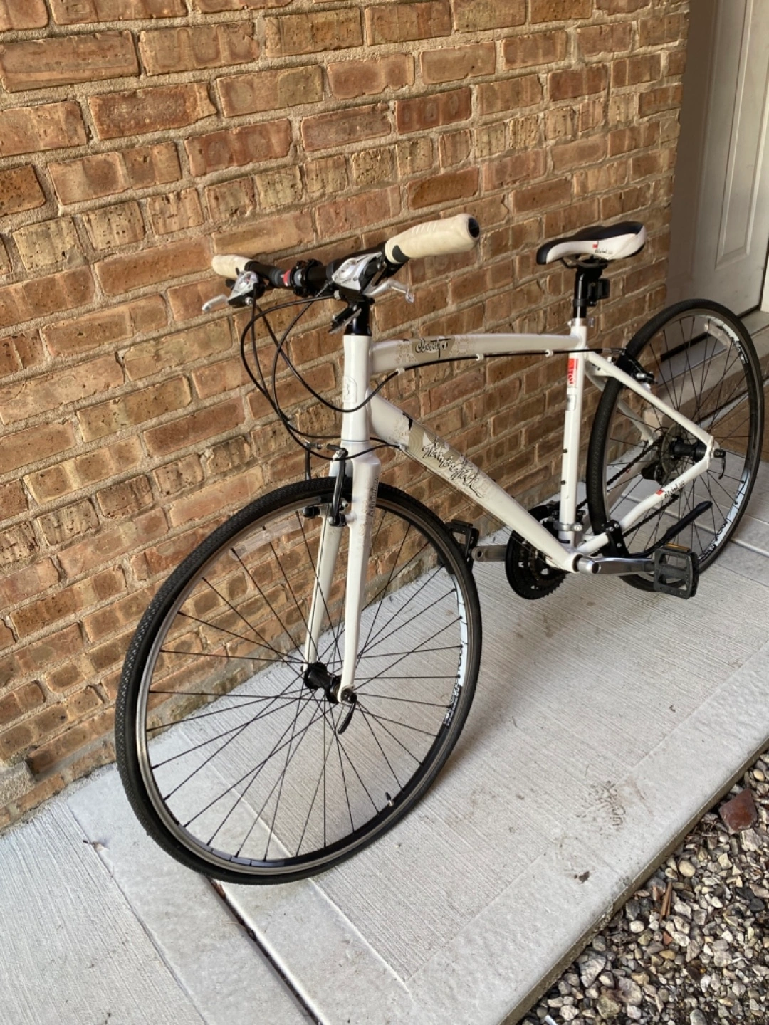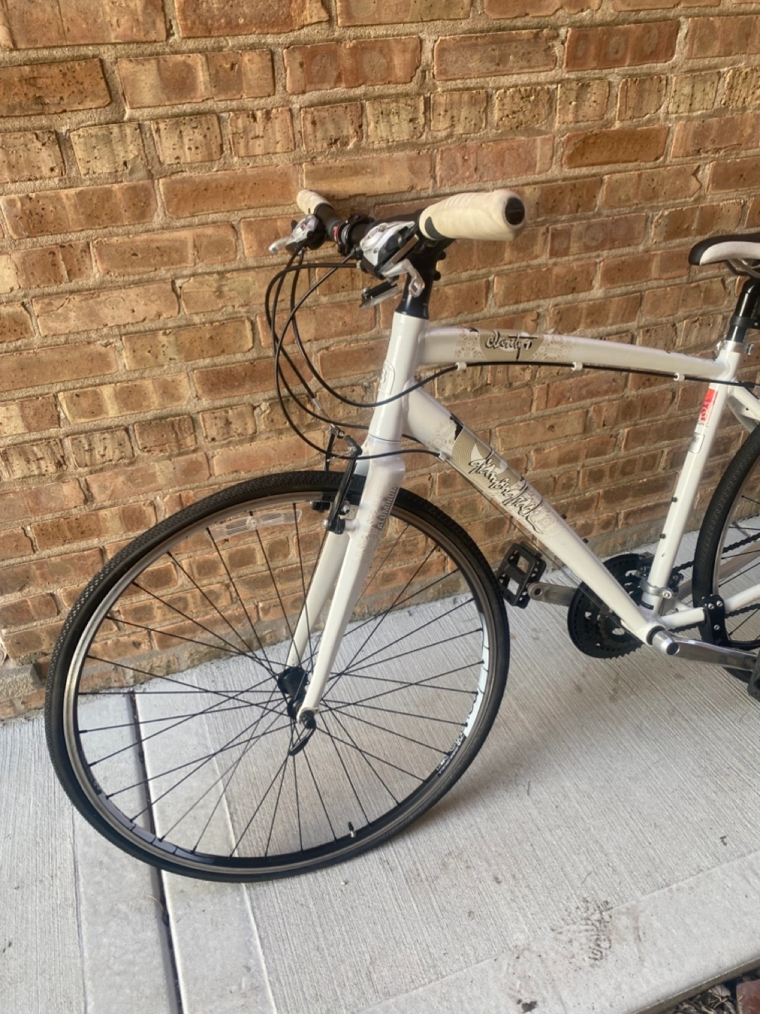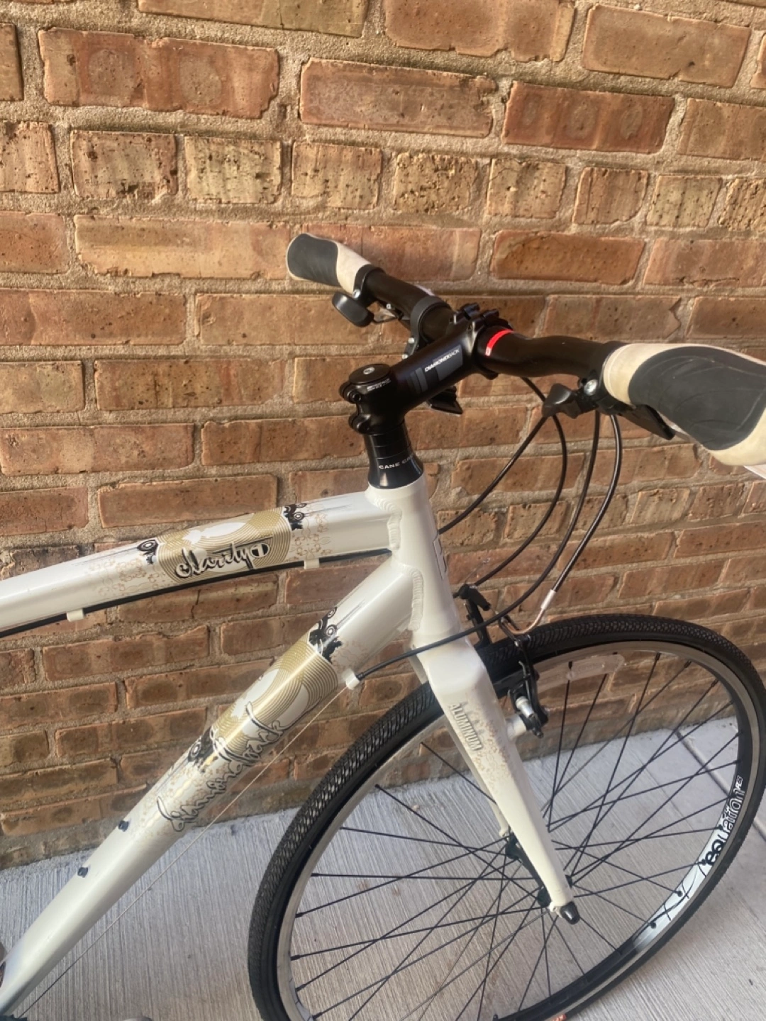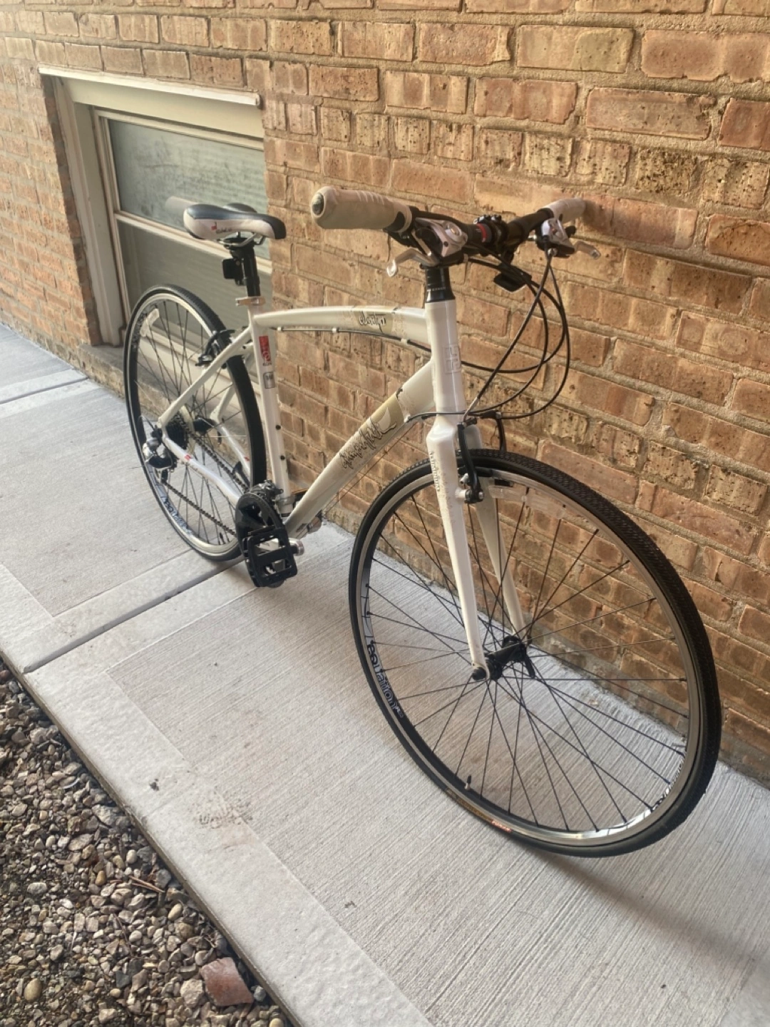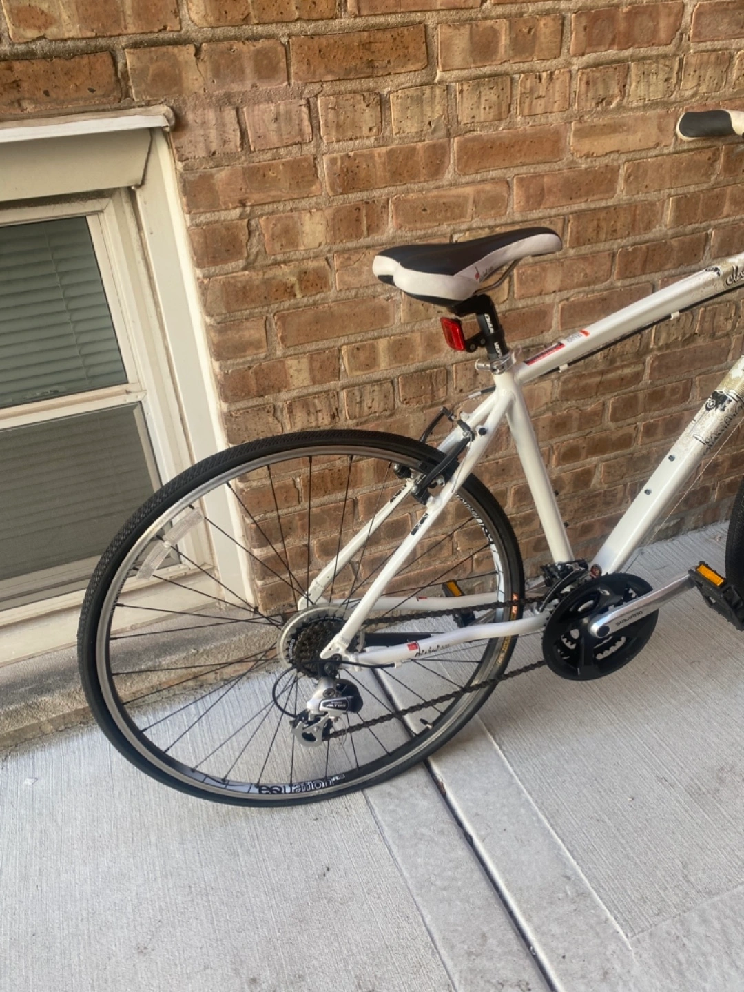 White Diamondback Devine hybrid bicycle. Size large, 19 inch frame. Good for women. Ready to ride.