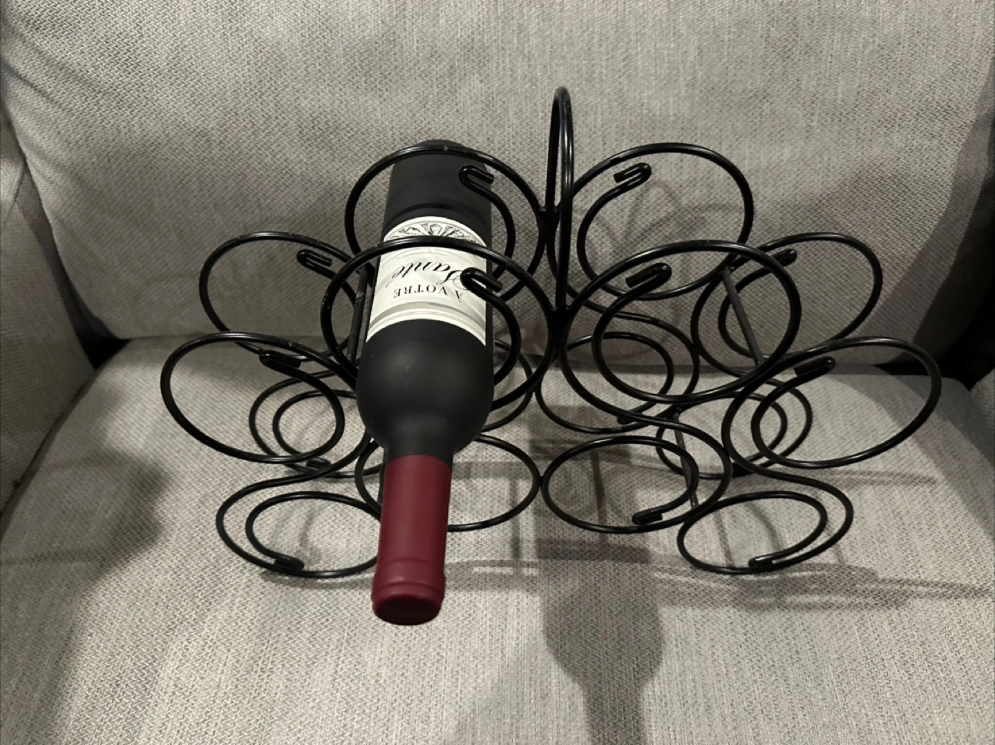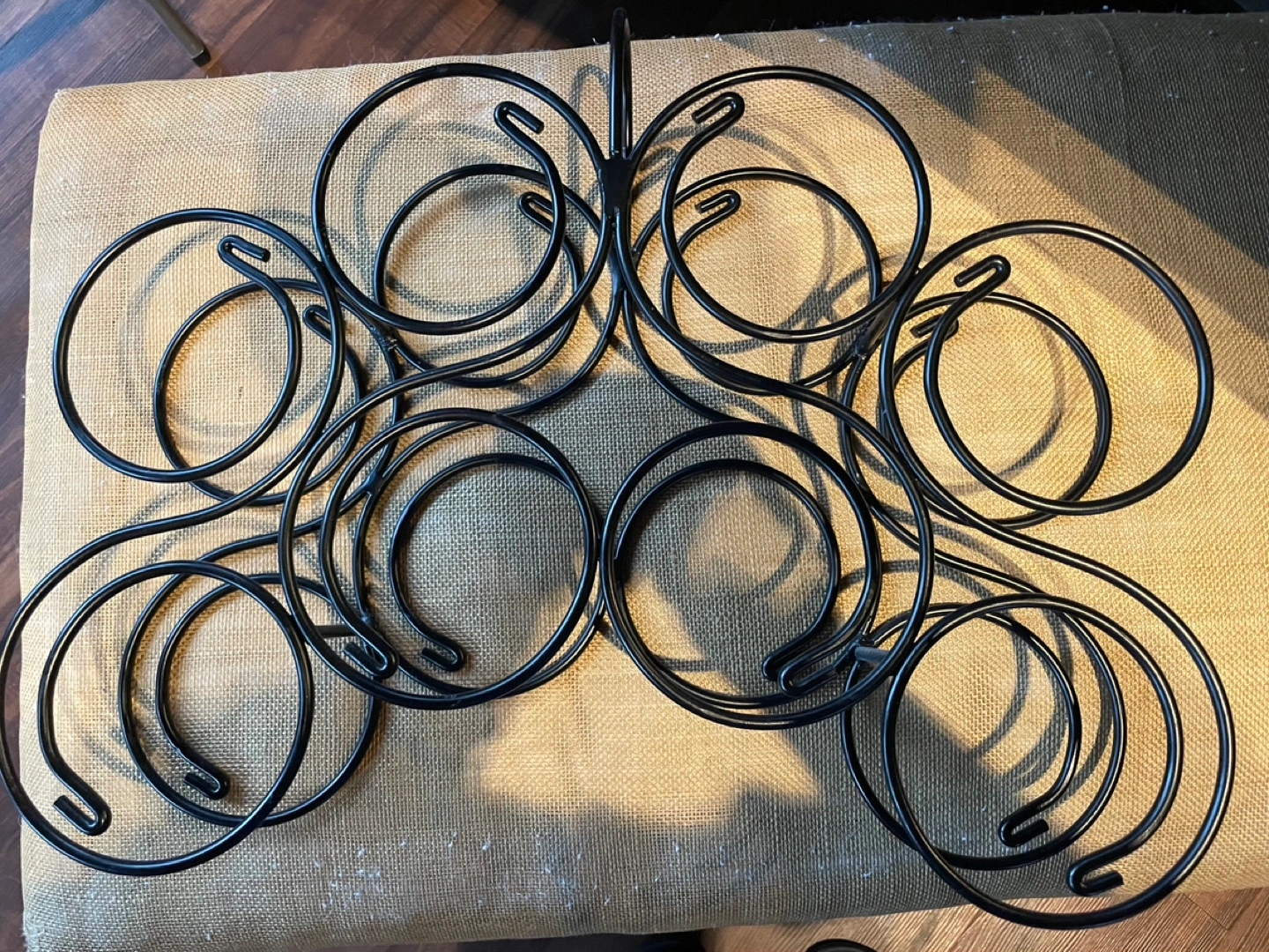 29Hanging wine glass holder. Holds multiple glasses. Metal construction. Black finish.