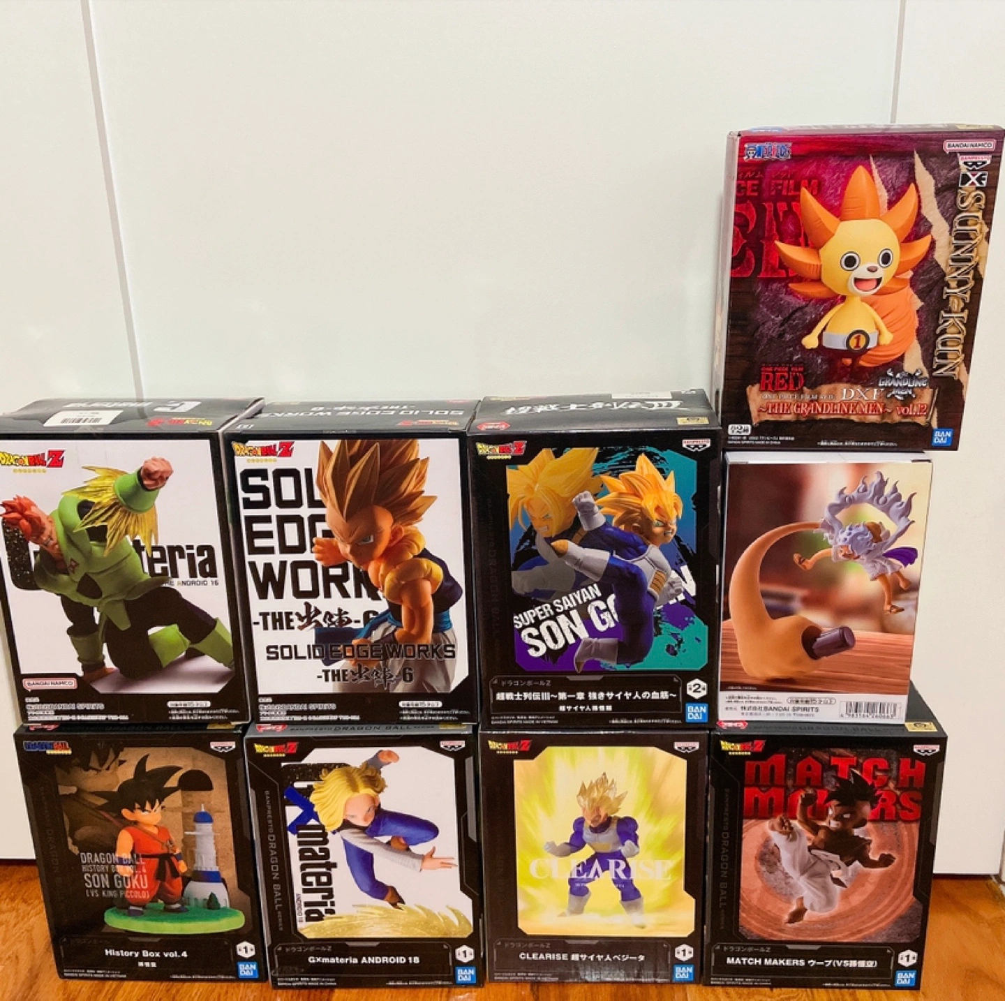 Lot of Dragon Ball Z and One Piece figures. Includes various characters and styles. Figures in boxes. Check images for details.