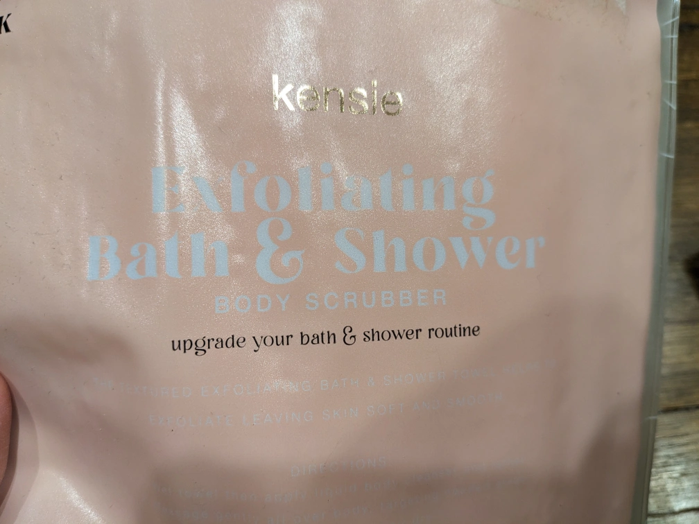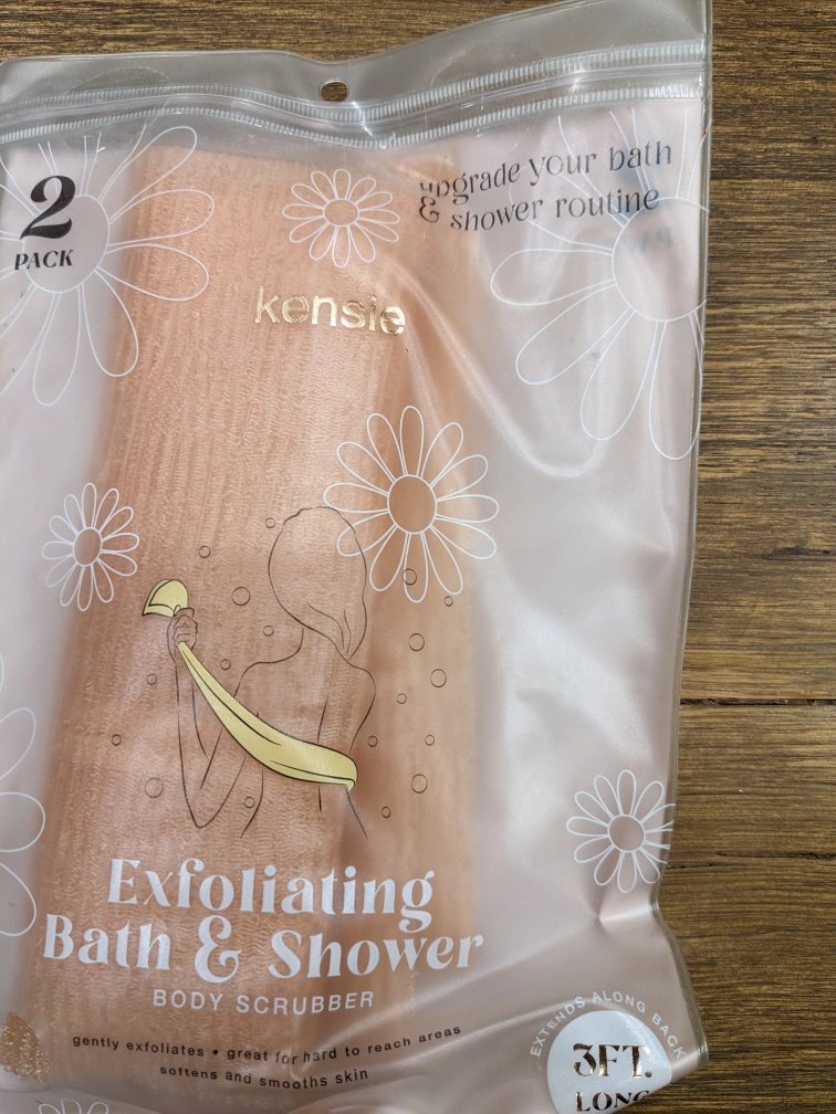 893New never used exfoliating bath and shower scrubber. Gently exfoliates. Great for hard-to-reach areas. Softens and smooths skin. 3ft long. Pick up only.
