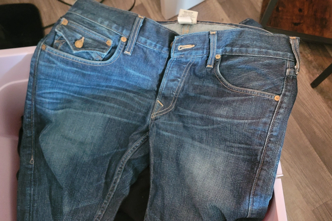 Dark wash denim jeans. Classic style. Men's size 34. Pickup in River Grove