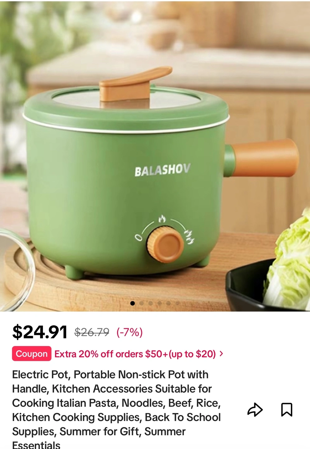 Electric pot, portable, non-stick. Features a handle. Kitchen accessory. Suitable for cooking pasta, noodles, beef, rice. Great for back to school.