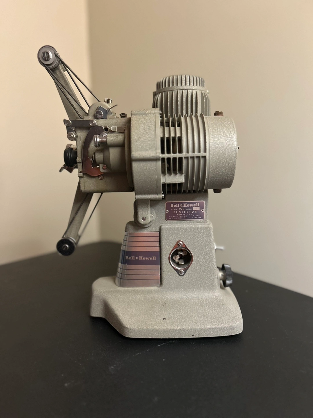 172Vintage Bell & Howell 16 mm silent film projector. Model 273. Made in the USA. 115 Volts AC. Visually great condition, functional condition unknown. Complete except reels and power cord.