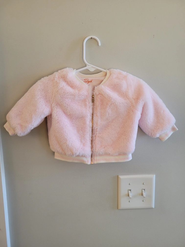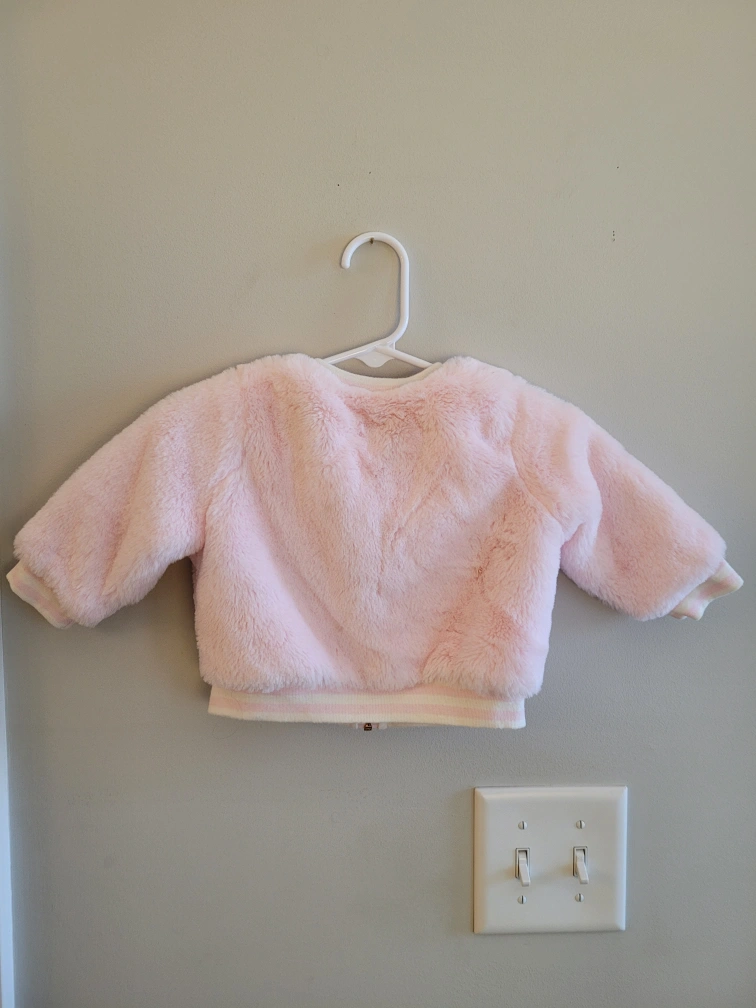 85Adorable baby girl jacket. Pink faux fur. Gold zipper. Size 3-6 months. Soft and cozy. Feel free to check out my other unique items listed.