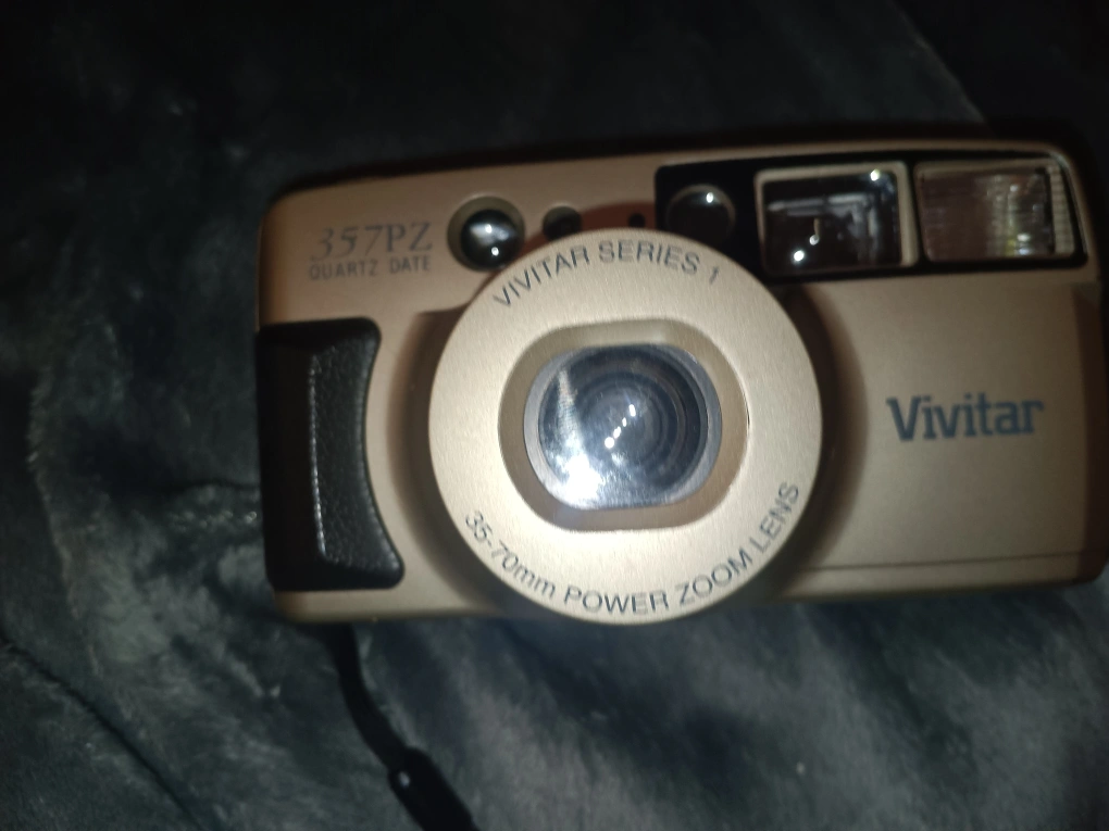 756Vintage Vivitar 357PZ point and shoot film camera. Quartz date function. 35-70mm power zoom lens. Includes wrist strap.