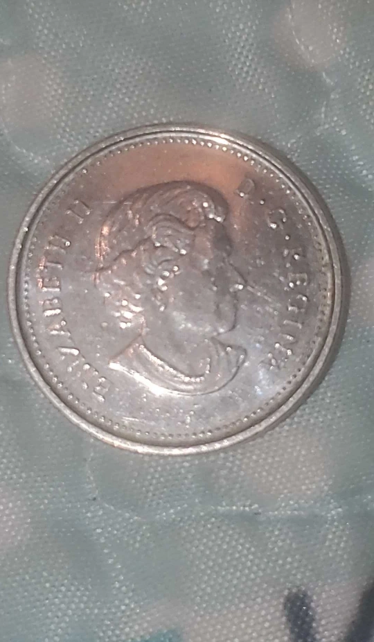 28Canadian 5 cent coin. Features a beaver on one side and Queen Elizabeth II on the other. Dated 2004.
