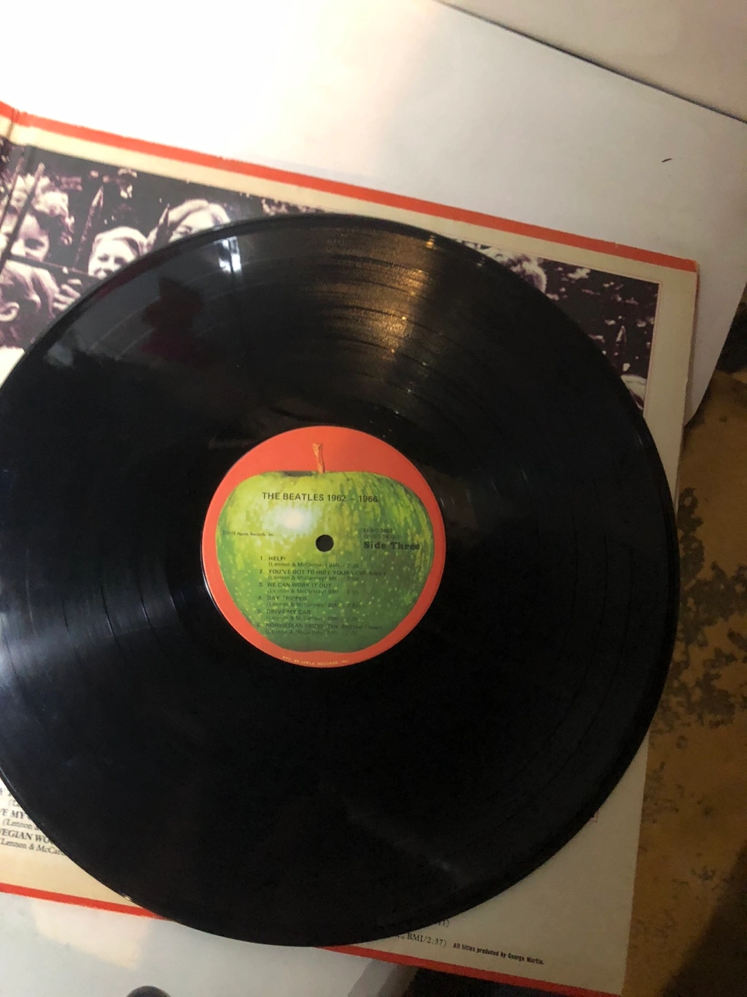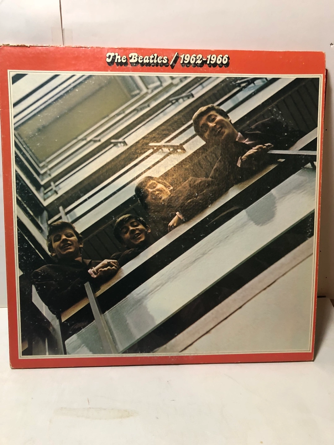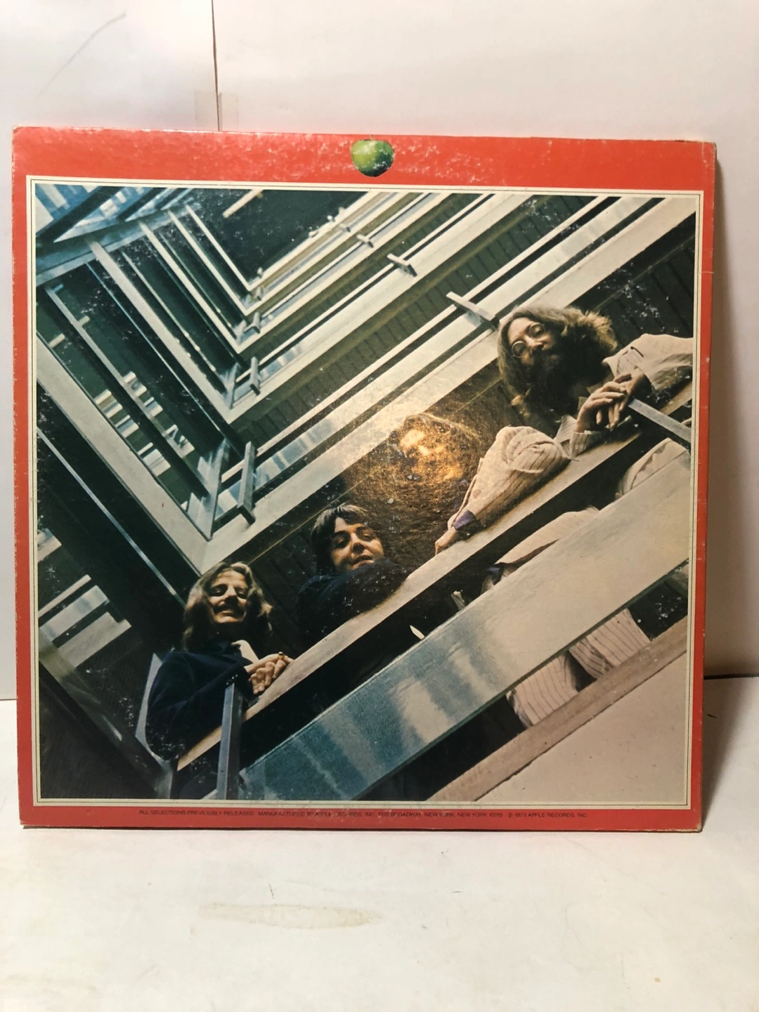 Vintage double LP. Features iconic Beatles album cover art. Includes two records and album cover. Songs listed on labels., These albums were in storage for years and appear to have never been used