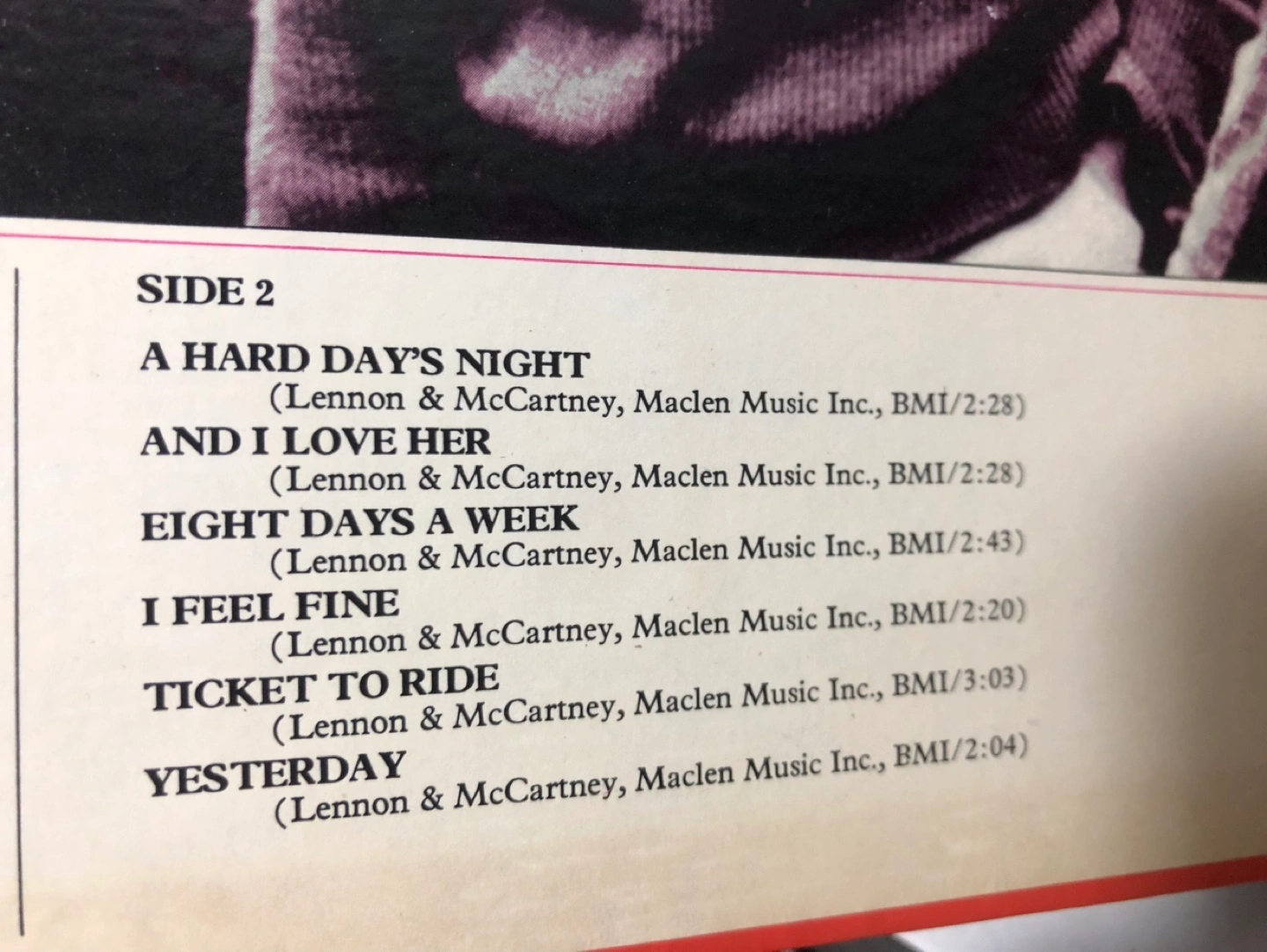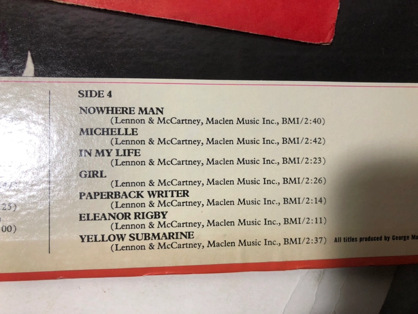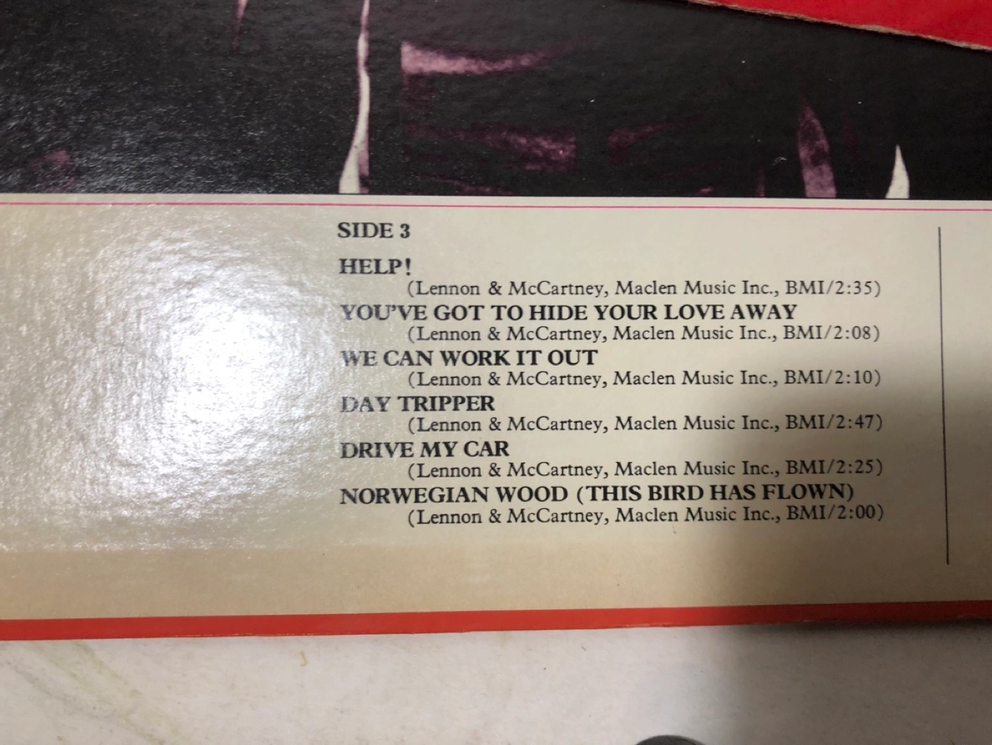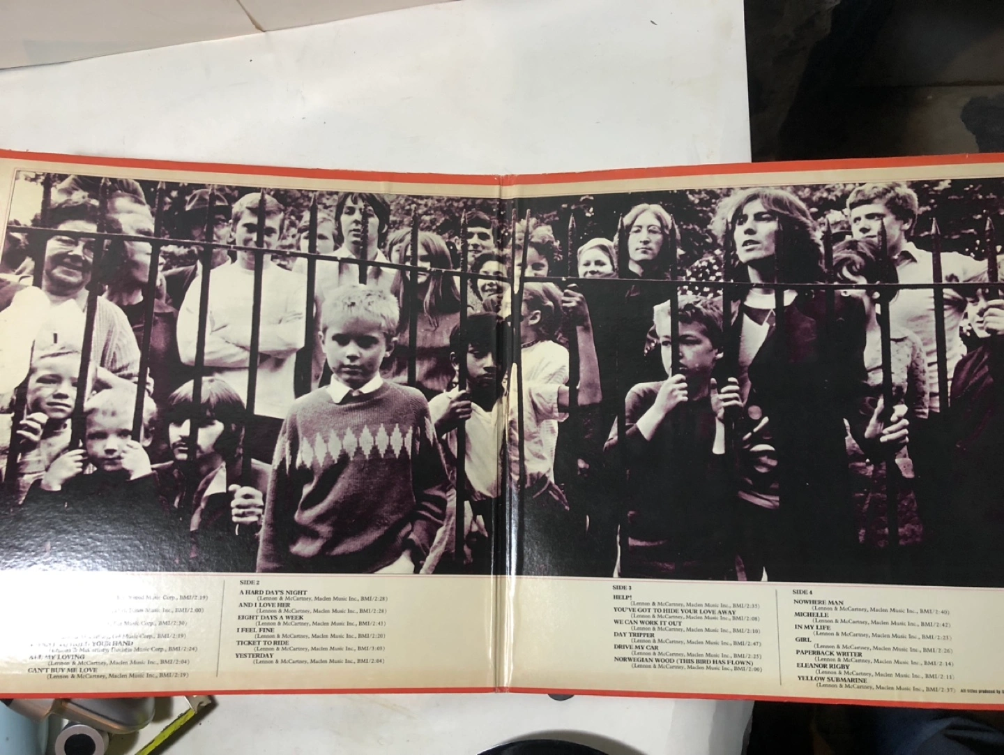 Vintage double LP. Features iconic Beatles album cover art. Includes two records and album cover. Songs listed on labels., These albums were in storage for years and appear to have never been used