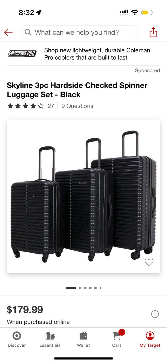 92Selling the medium and carry on size to this 3 piece set. Originally bought for $179 at target. Both are in perfect condition! Just used once after purchasing to bring them back to the city! *$110 for both *$75 for medium *$50 for carry on Hardside Spinner Set • Smallest size is carry on compatible • Durable ABS Material • Multi-directional spinner wheels for easy maneuverability • Internal telescoping handle with push button handle. Piece 2: Suitcase: 18.38 Inches (W) x 27 Inches (H) x 11.5 Inches (D) Piece 2 Weight: 7.27 Pounds Piece 2 Linear inches: 56 Linear Inches Piece 2 Interior Dimensions: 23.88 Inches (H) x 16.88 Inches (W) x 10.38 Inches (D) Piece 3: Suitcase: 14.25 Inches (W) x 23 Inches (H) x 9.5 Inches (D) Piece 3 Weight: 5.3 Pounds Piece 3 Linear Inches: 47 Linear Inches Piece 3 Interior Dimensions: 19.88 Inches (H) x 14.13 Inches (W) x 9.38 Inches (D) Placement: Carry On Bag Structure: Hardside, Spinner Wheels Interior Features: Cross Straps, Fully Lined, Zippered Compartments Exterior Features: No Compartments or Pockets Main Compartment Closure: Zip Closure Handle Type: Side Carrying Handle, Telescoping Handle