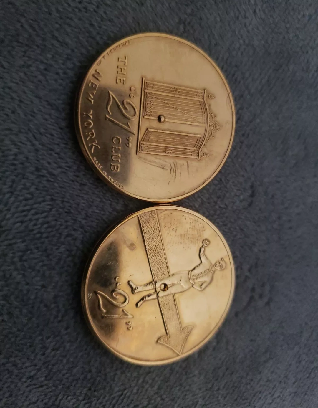 232One collectible bronze-toned coins. One side features The 21 Club entrance, the other a club employee directing patrons. Great for collectors! **I have 2 gold coins and one silver coin. price is for each unless you take them all, we can come to an agreement on price**